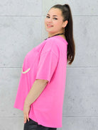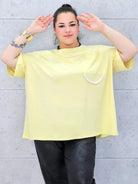 Bluzka oversize plus size to idealna propozycja dla kobiet, które cenią sobie komfort i lekkość, a jednocześnie chcą wyglądać modnie i nowocześnie. Model wyróżnia się efektowną, dużą kieszenią z ozdobnym elementem, luźnym fasonem i świetną długością, która sprzyja każdej sylwetce XXL.