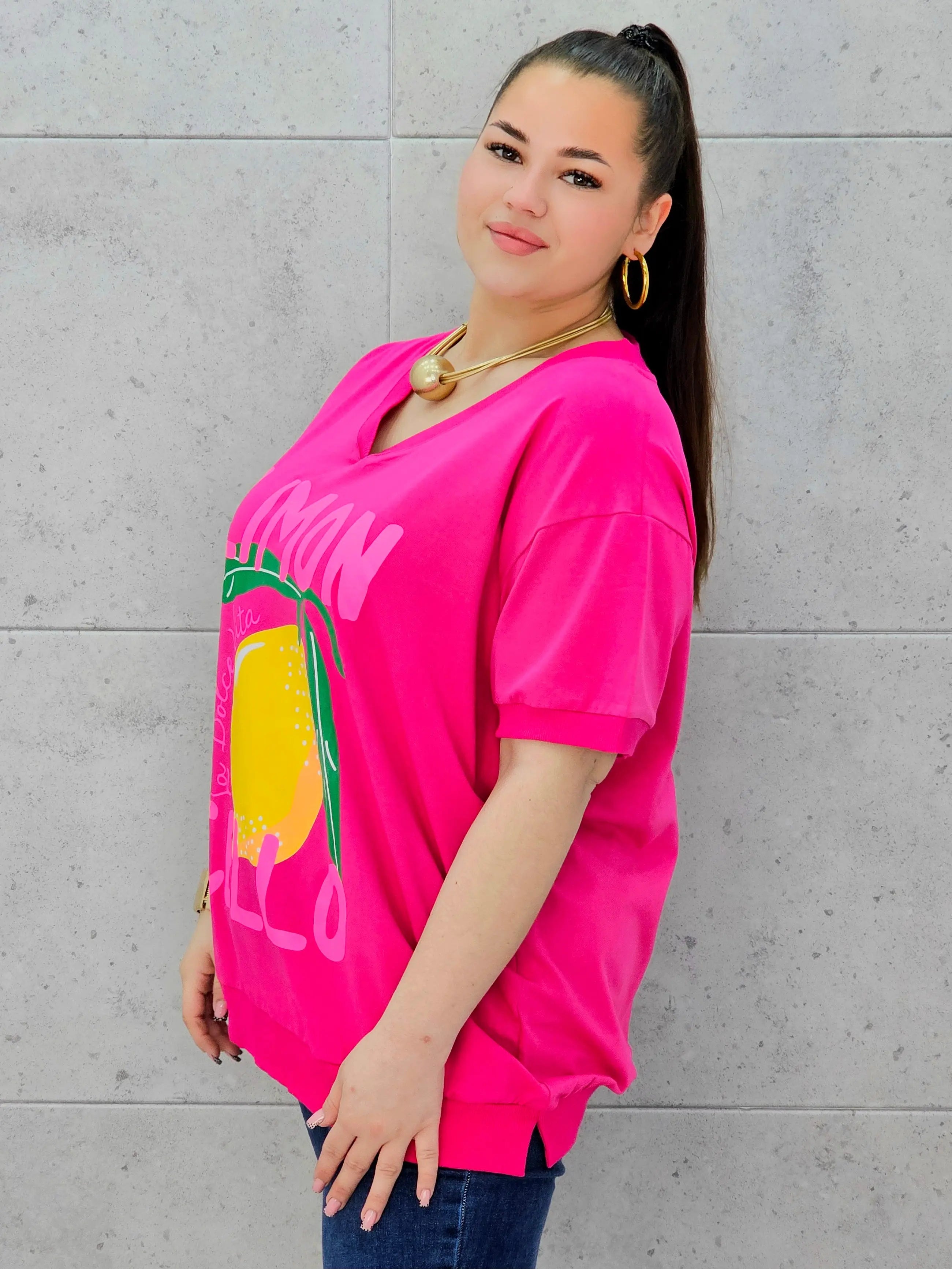 Bluzka plus size – letnia tunika z cytrynowym printem Limoncello