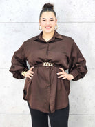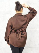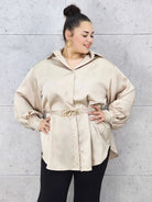 Bluzka plus size satynowa koszula z paskiem i eleganckim połyskiem – Stylowa XL