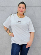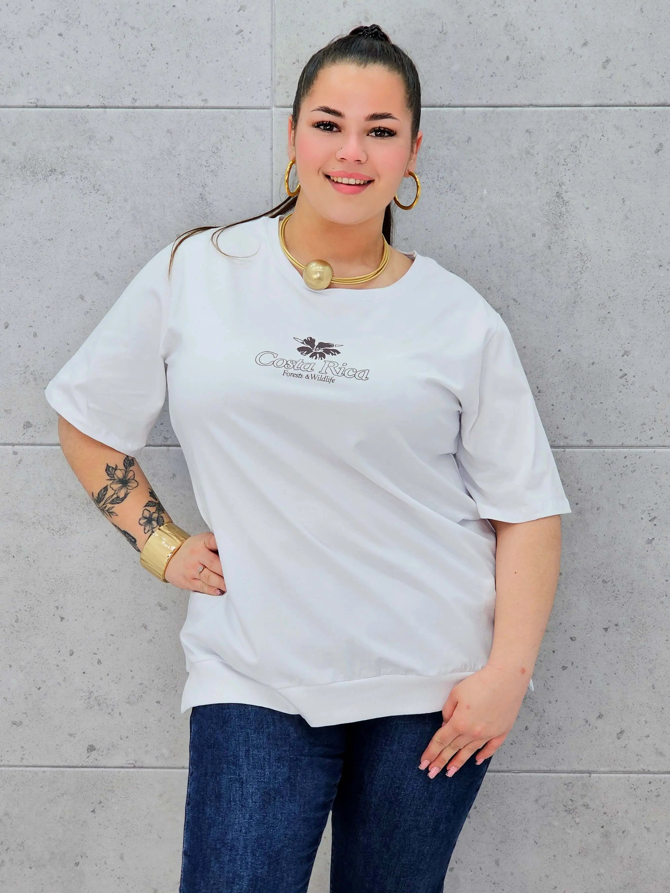 Bluzka plus size z nadrukiem „Costa Rica” – modny, letni look dla kobiet XXL