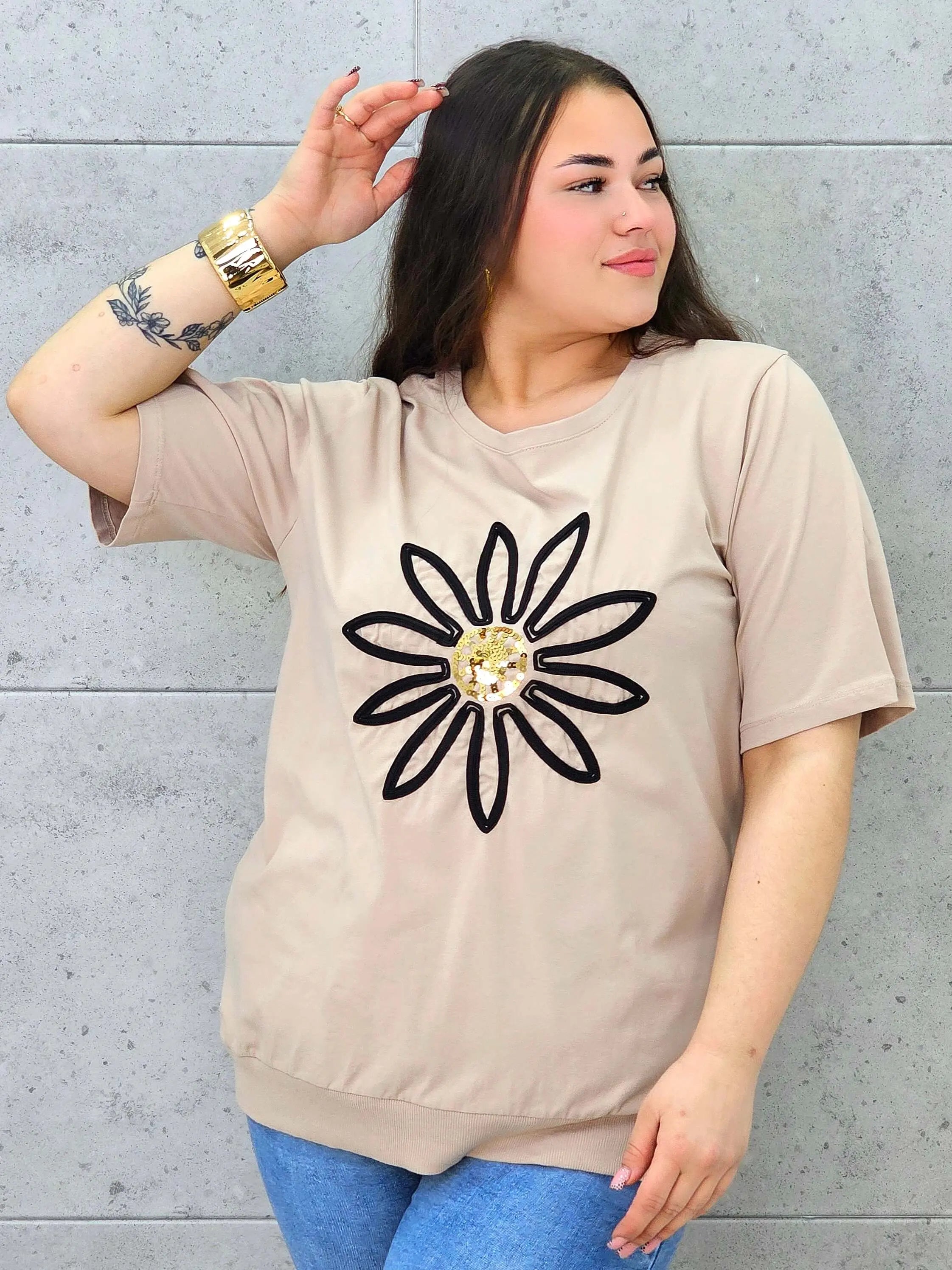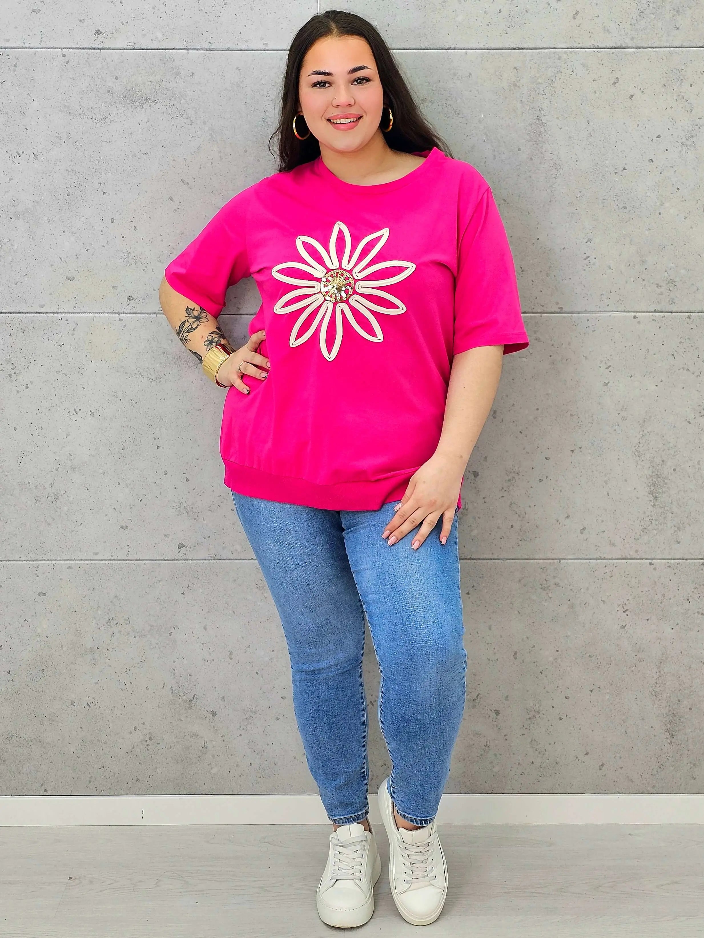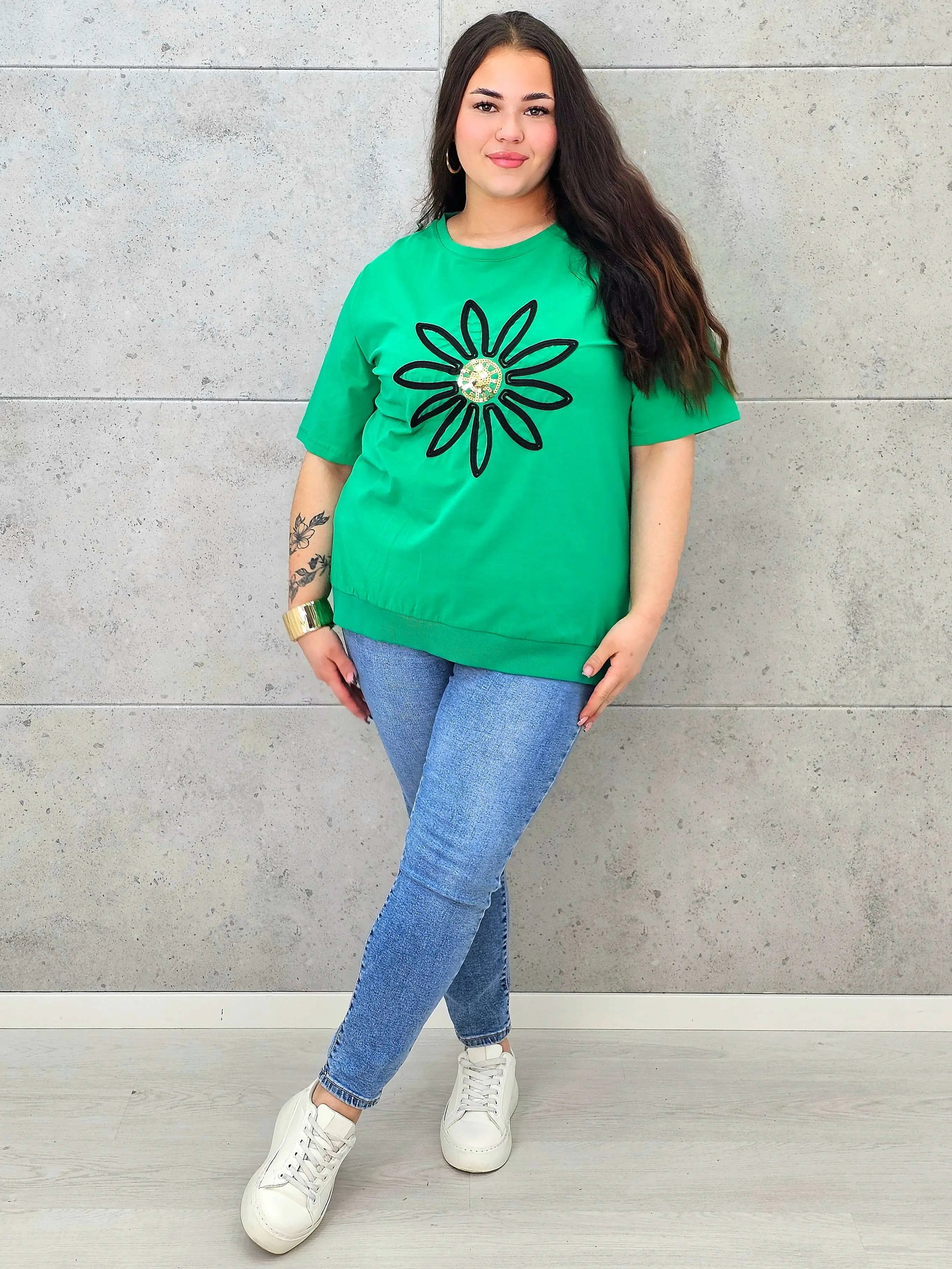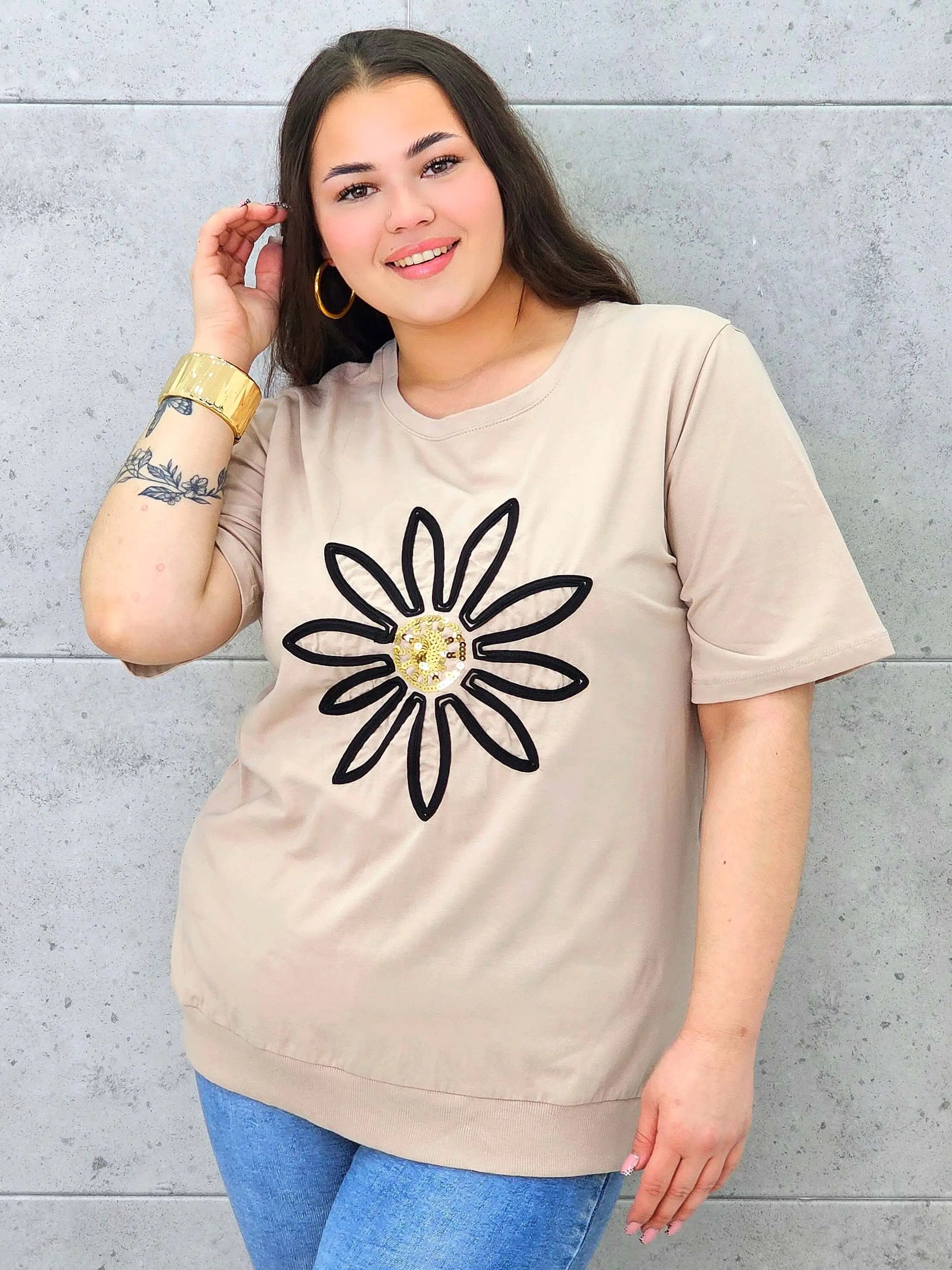 Bluzka plus size z modną aplikacją kwiatową – styl i wygoda dla kobiet XXL