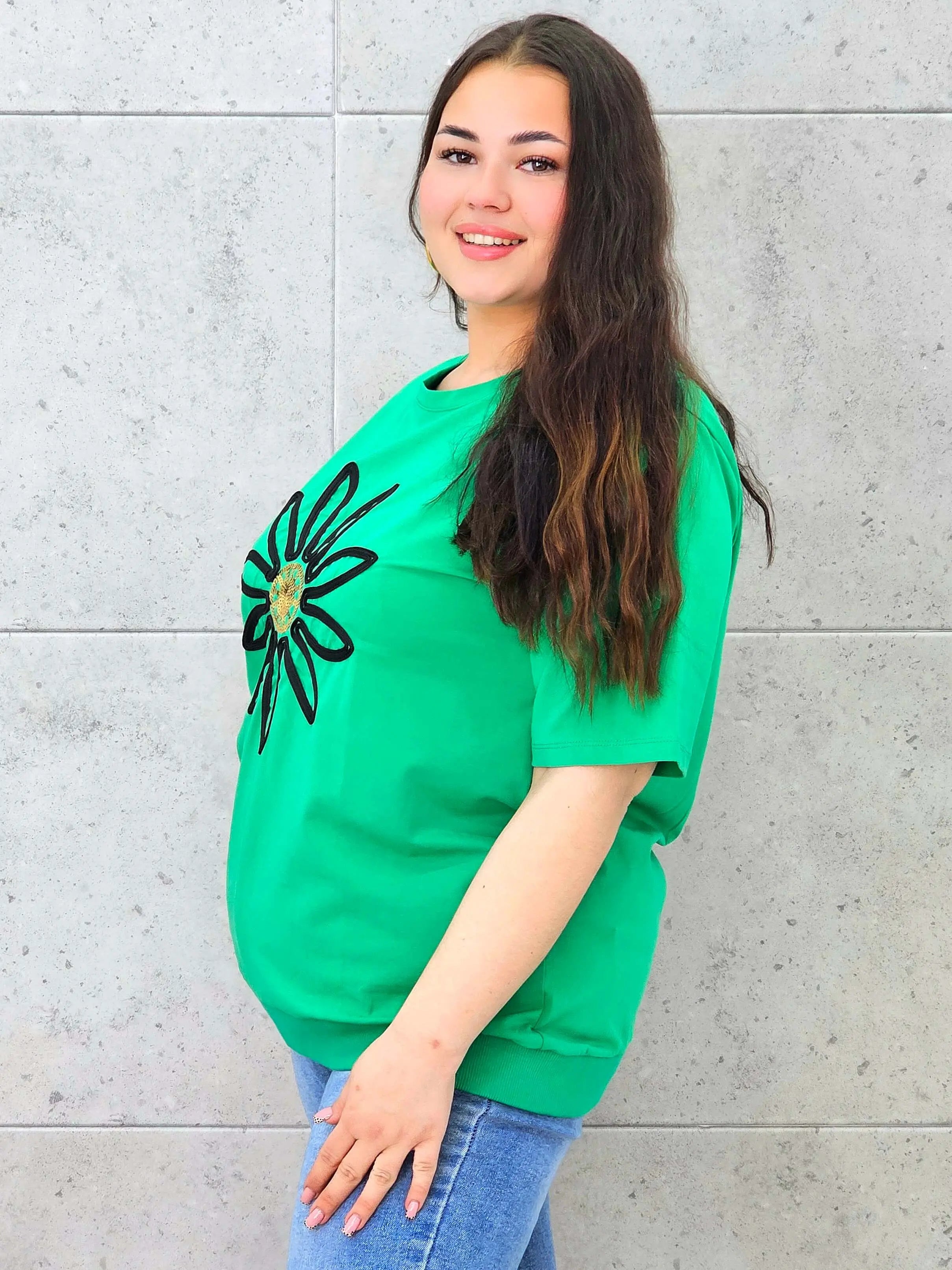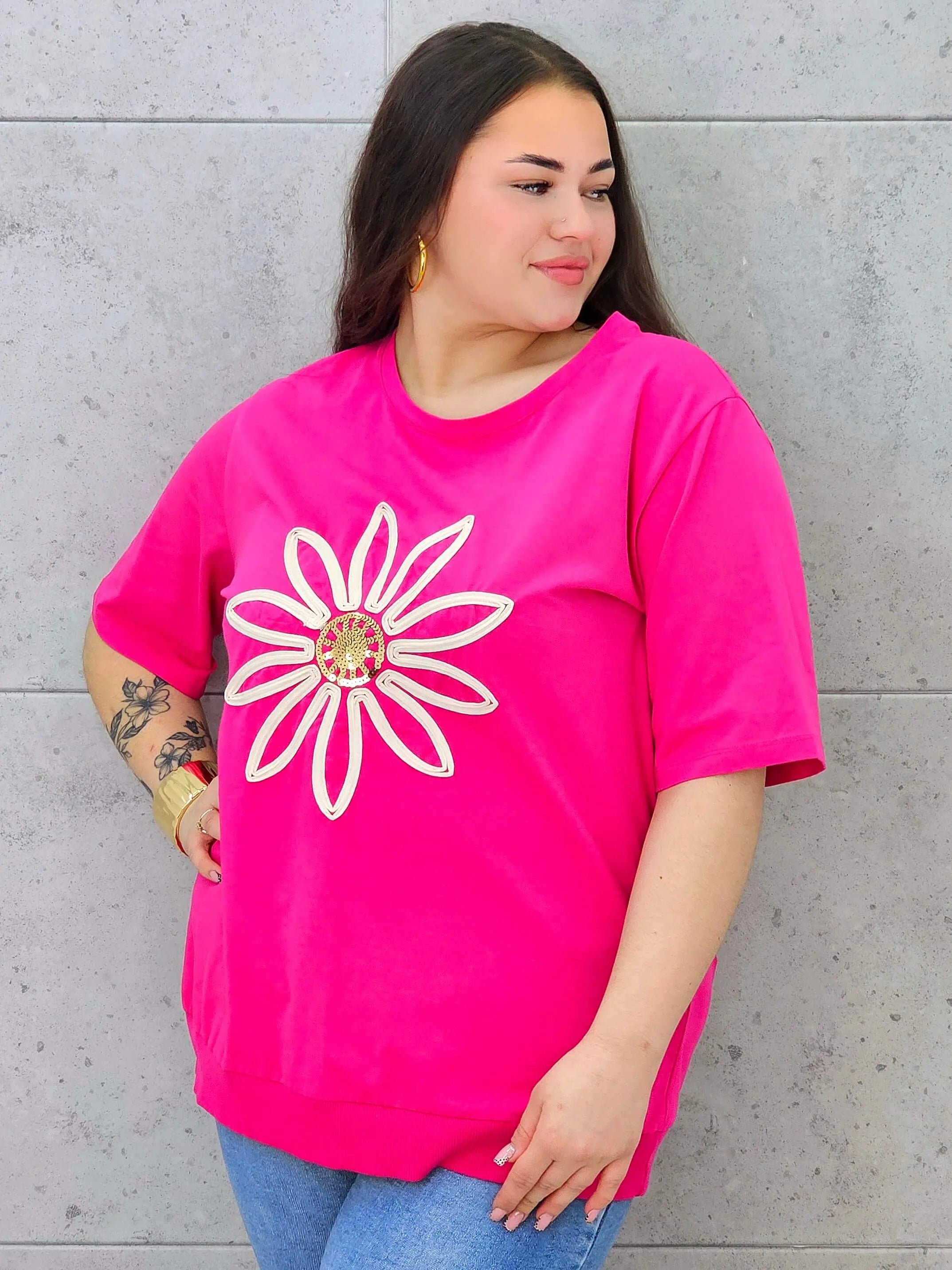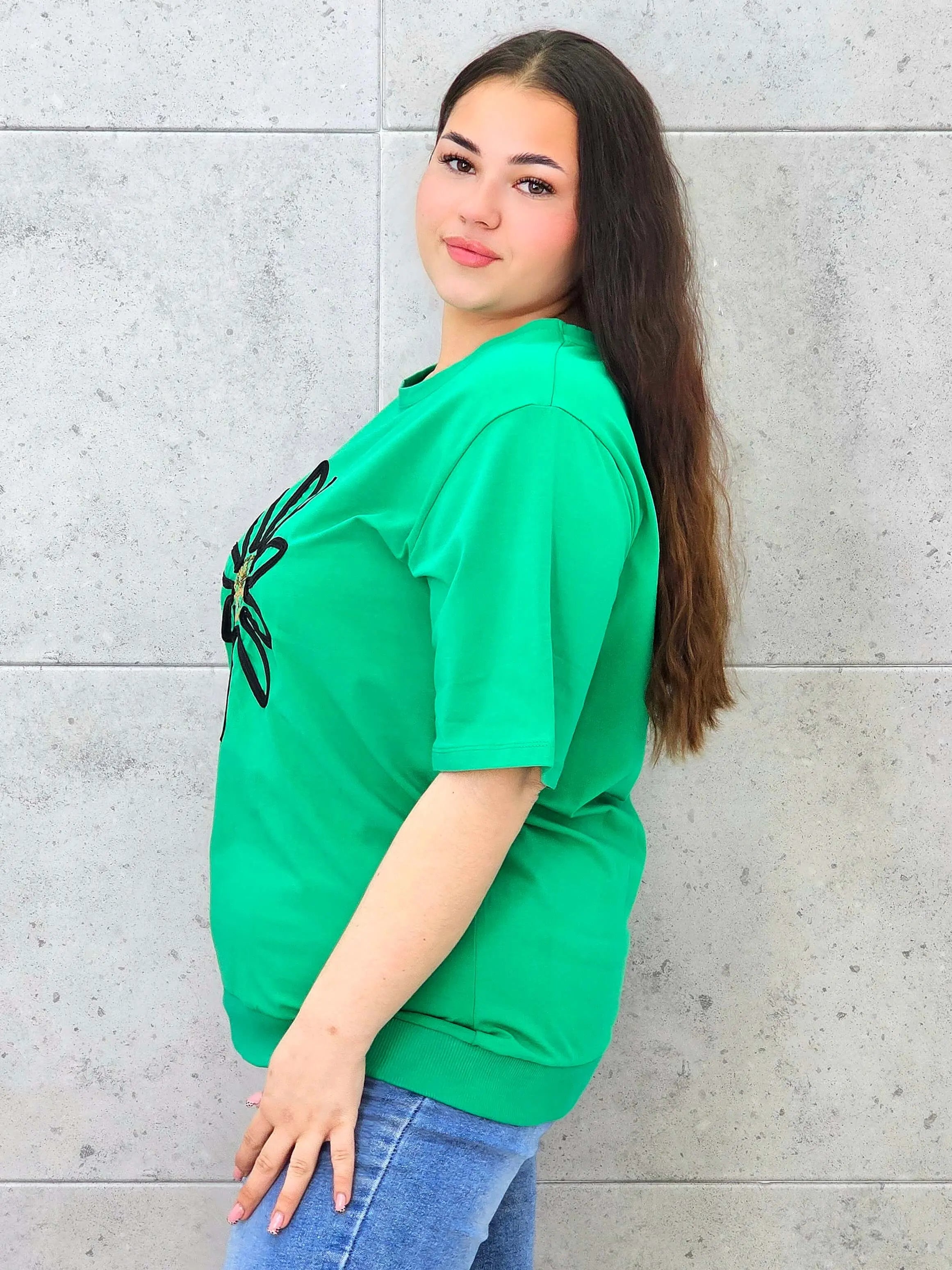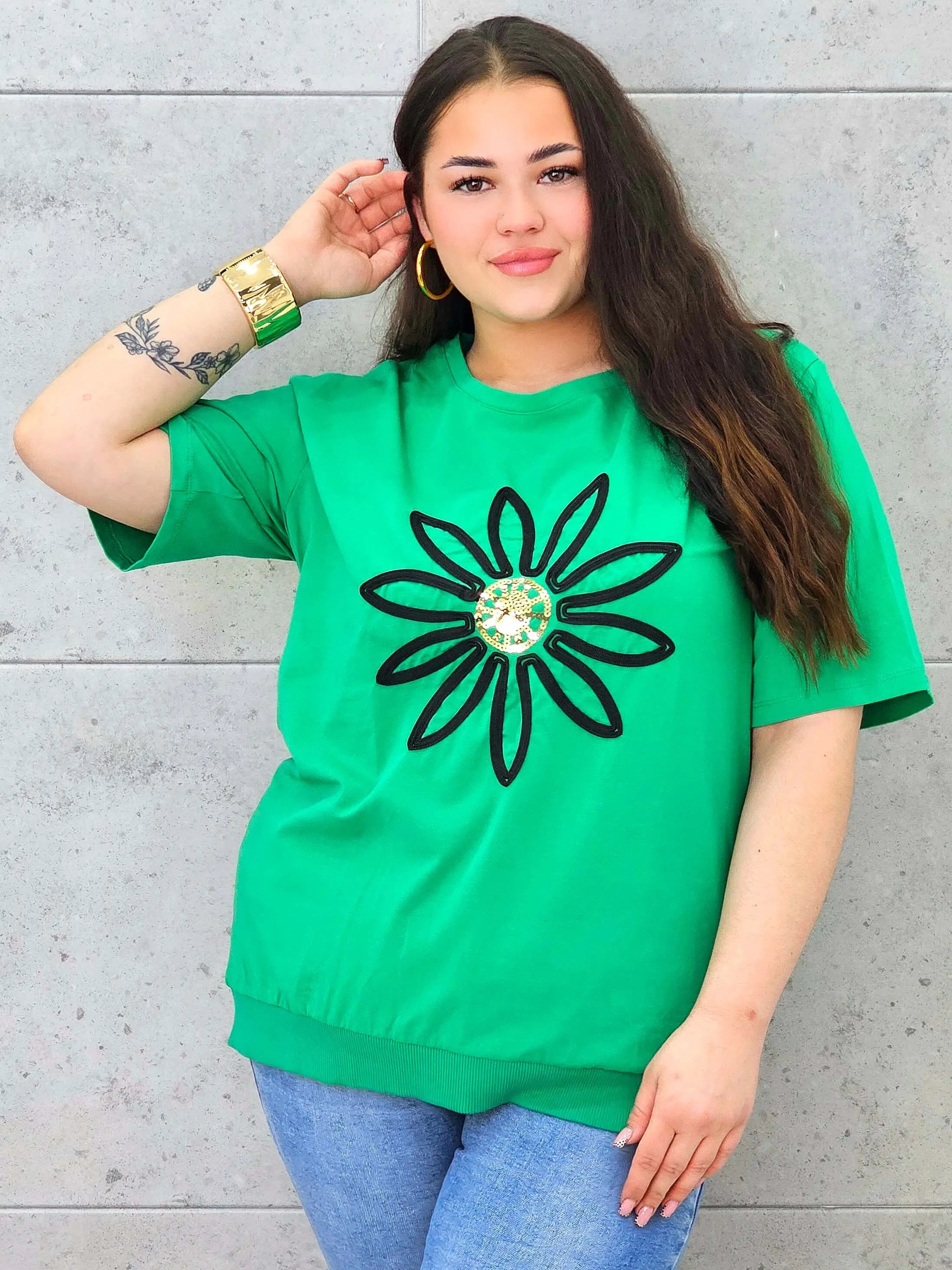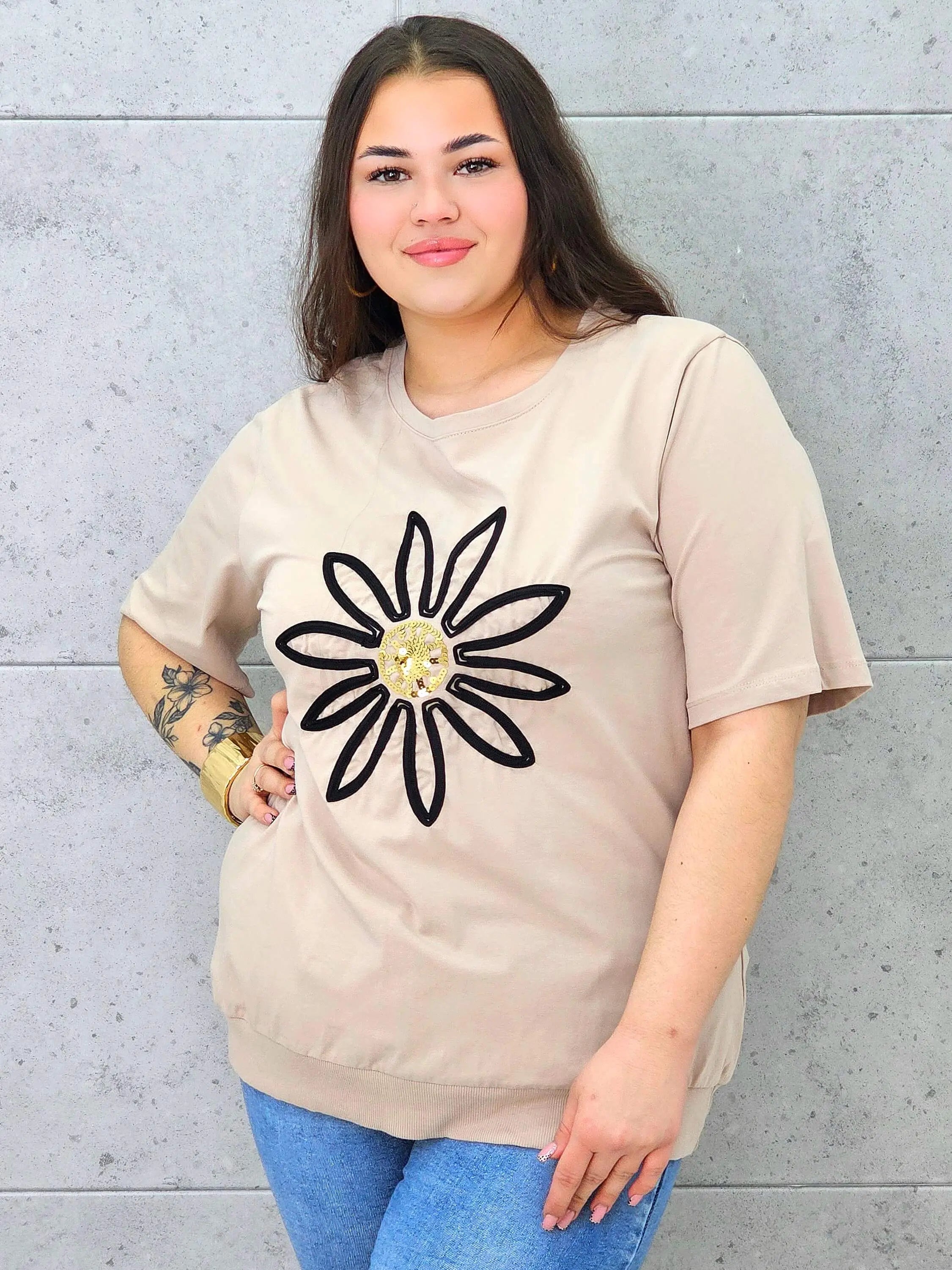Bluzka plus size z modną aplikacją kwiatową – styl i wygoda dla kobiet XXL