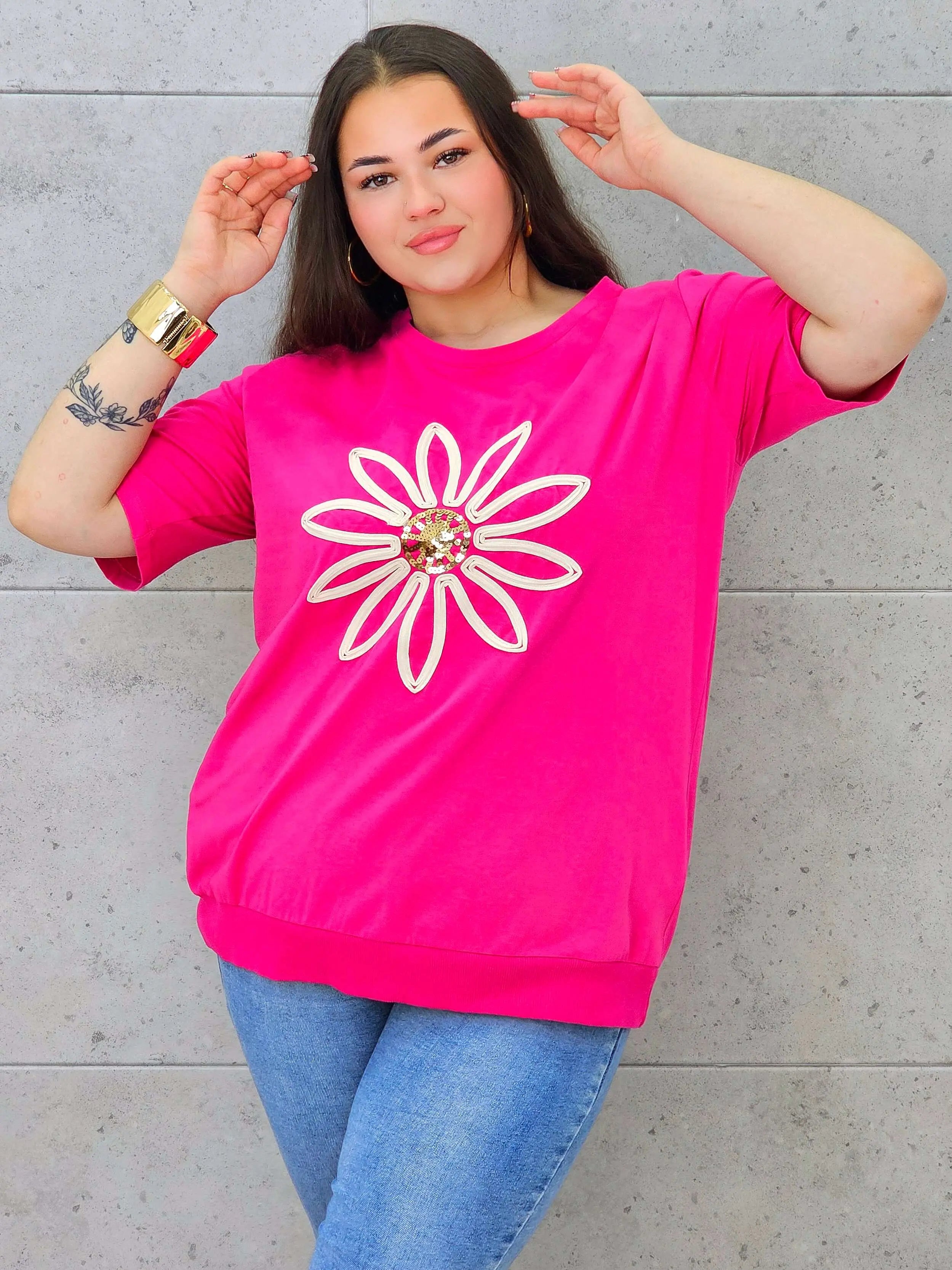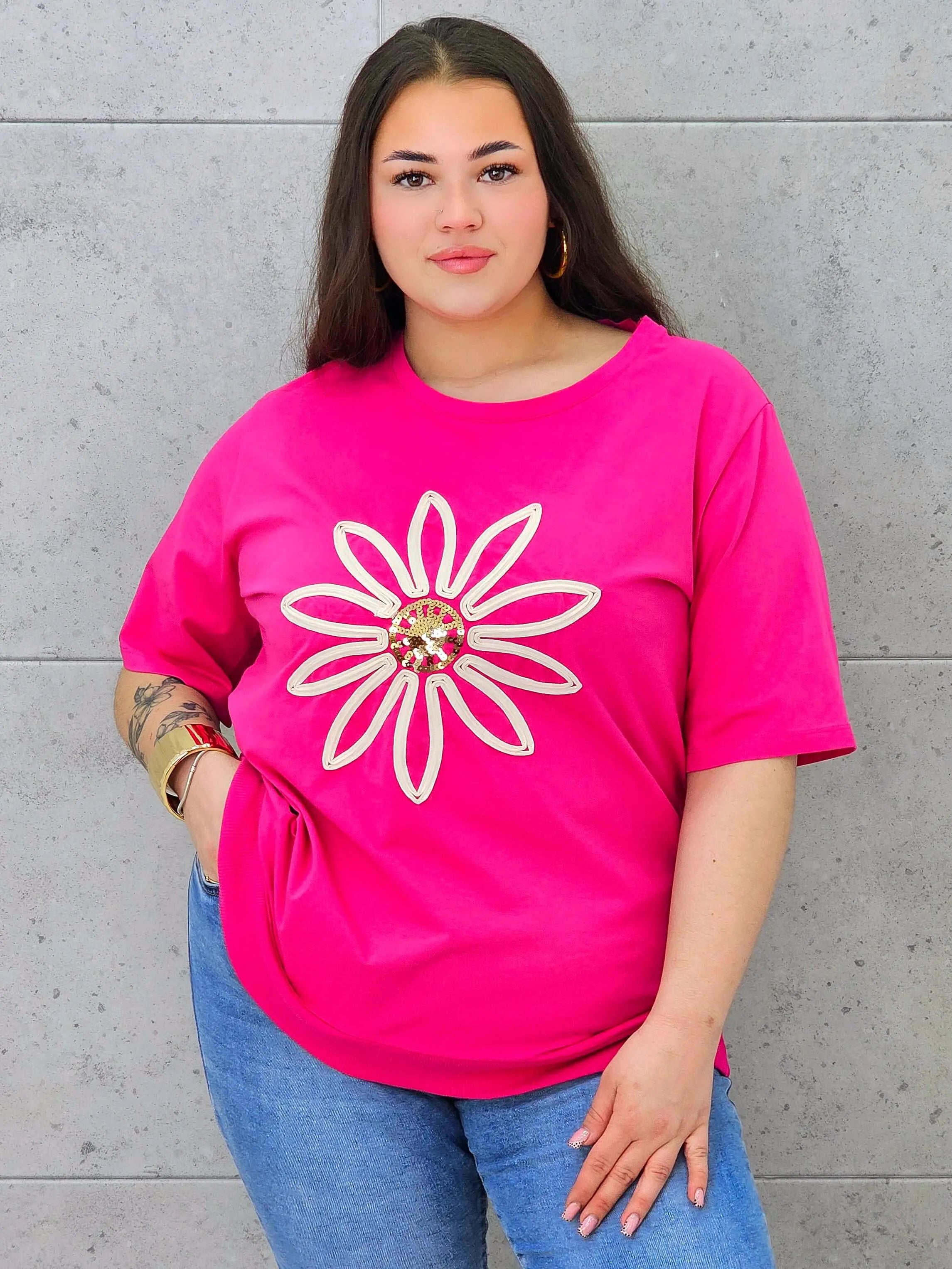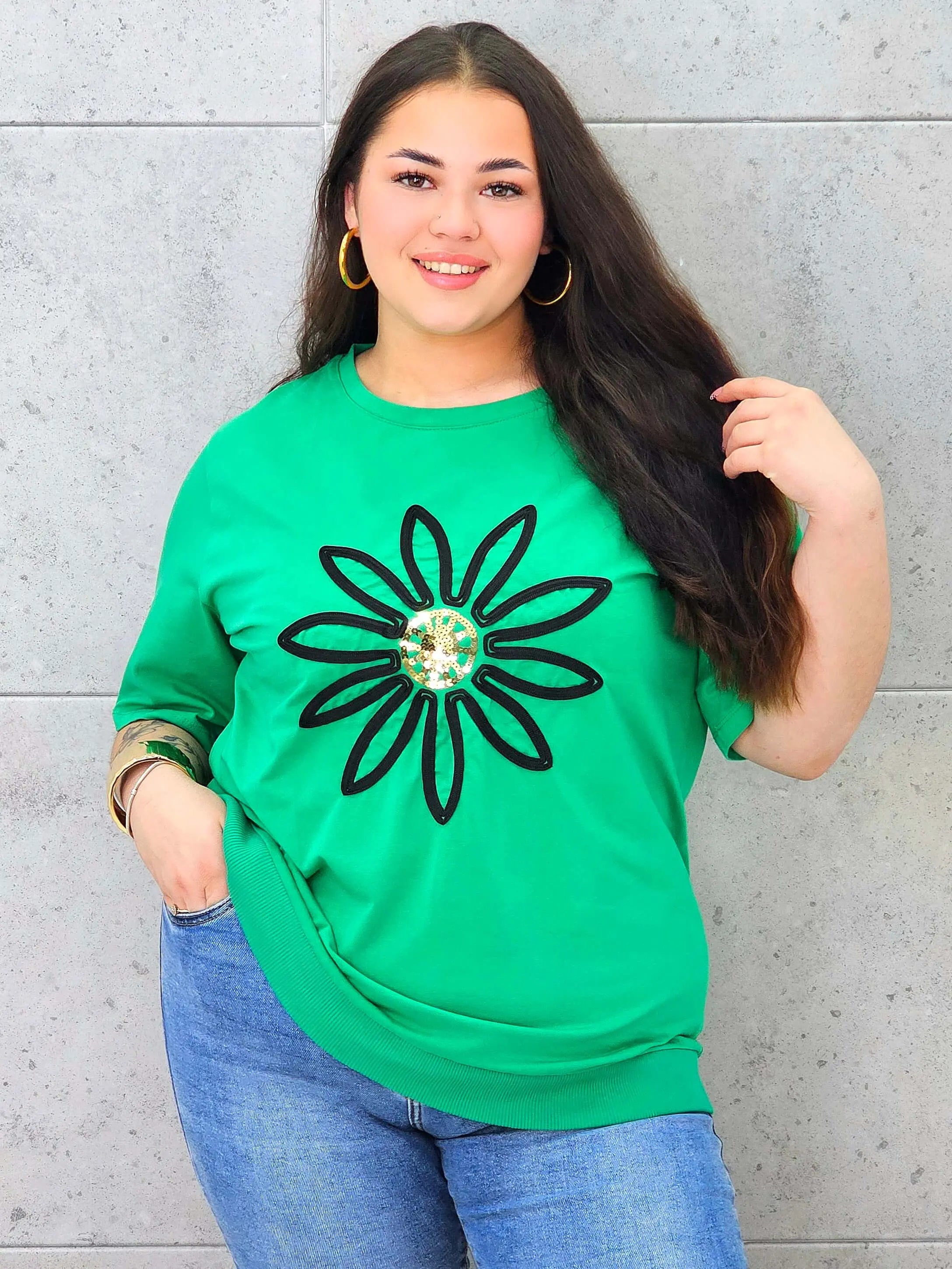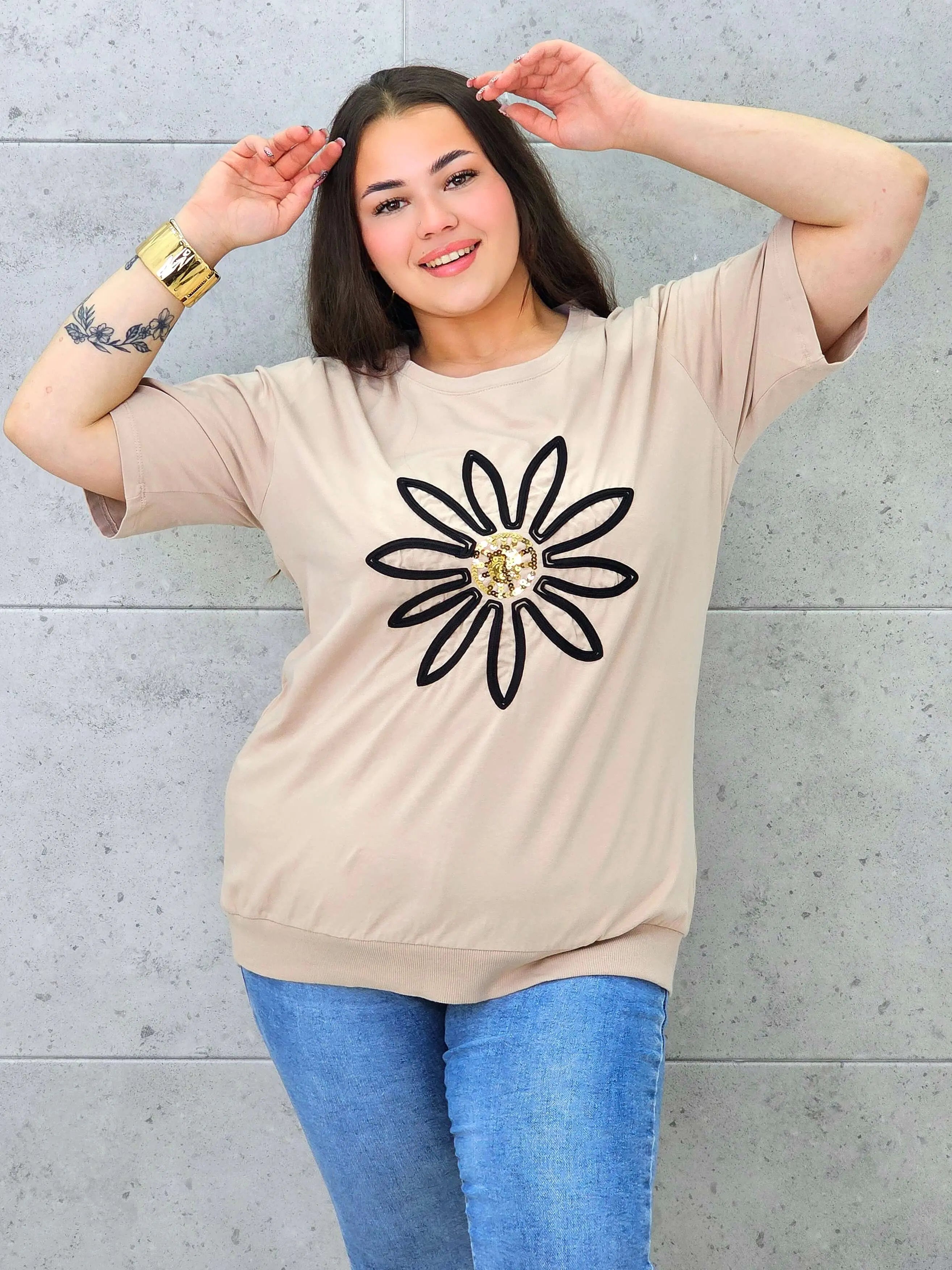 Bluzka plus size z modną aplikacją kwiatową – styl i wygoda dla kobiet XXL