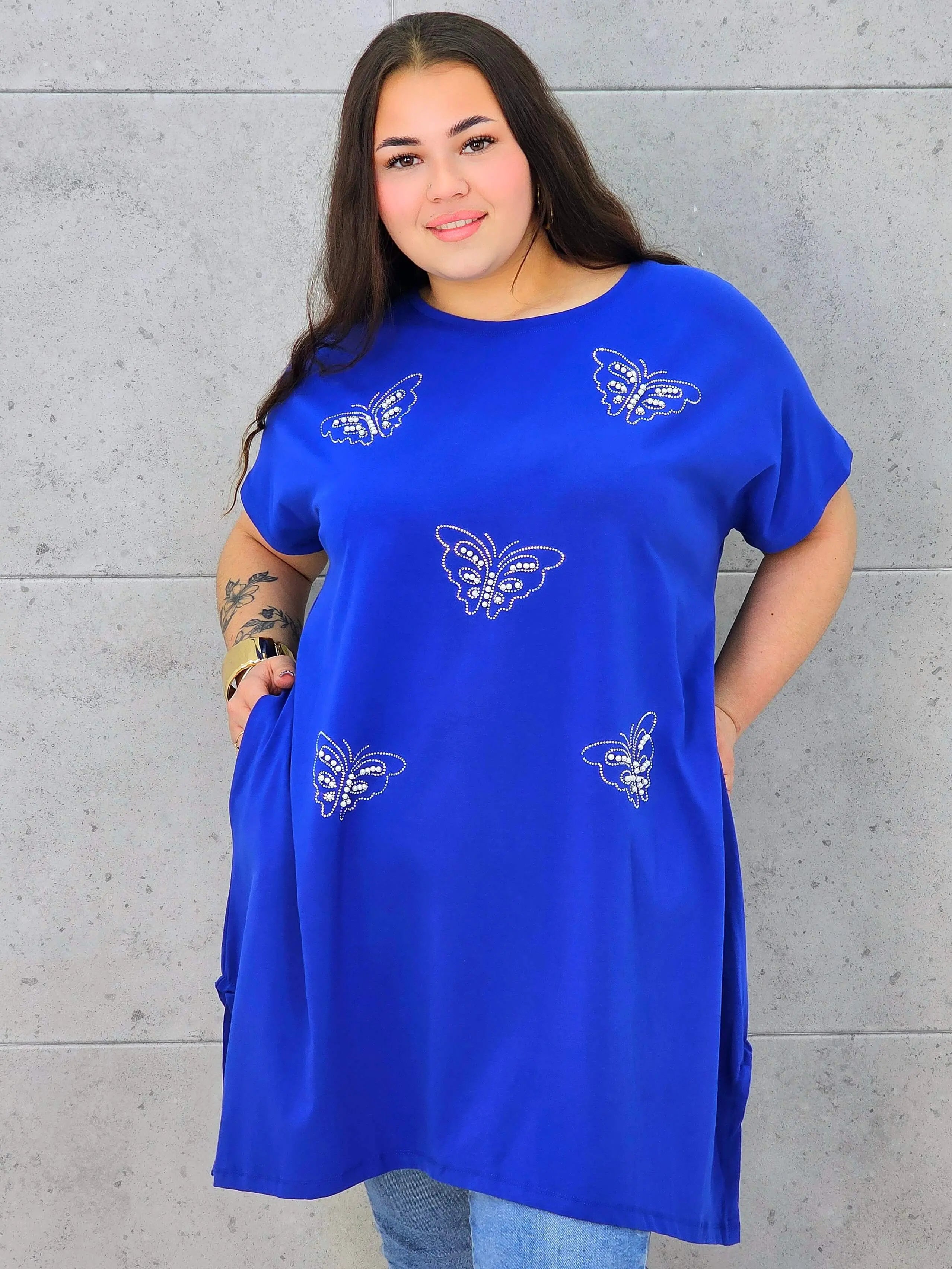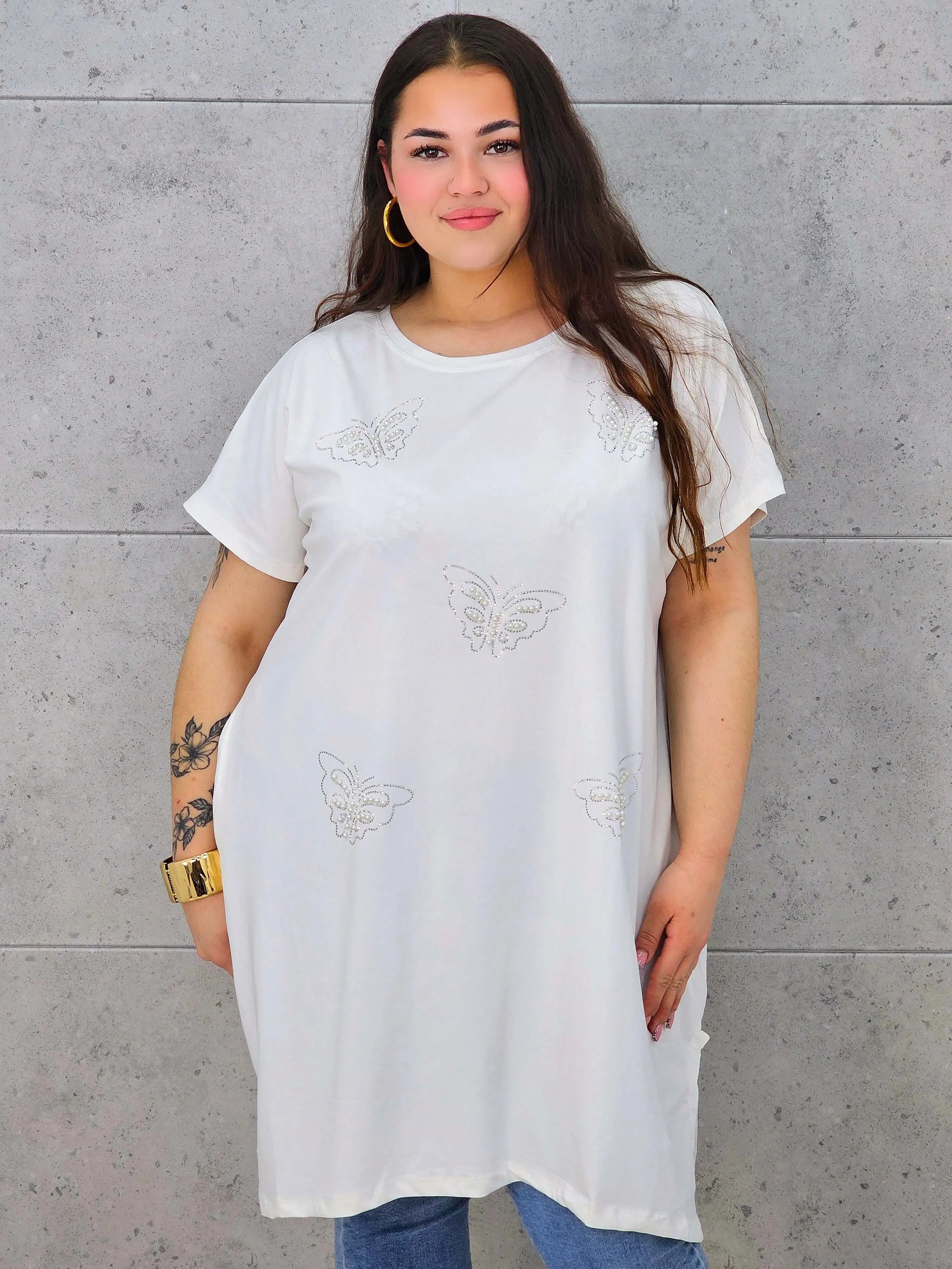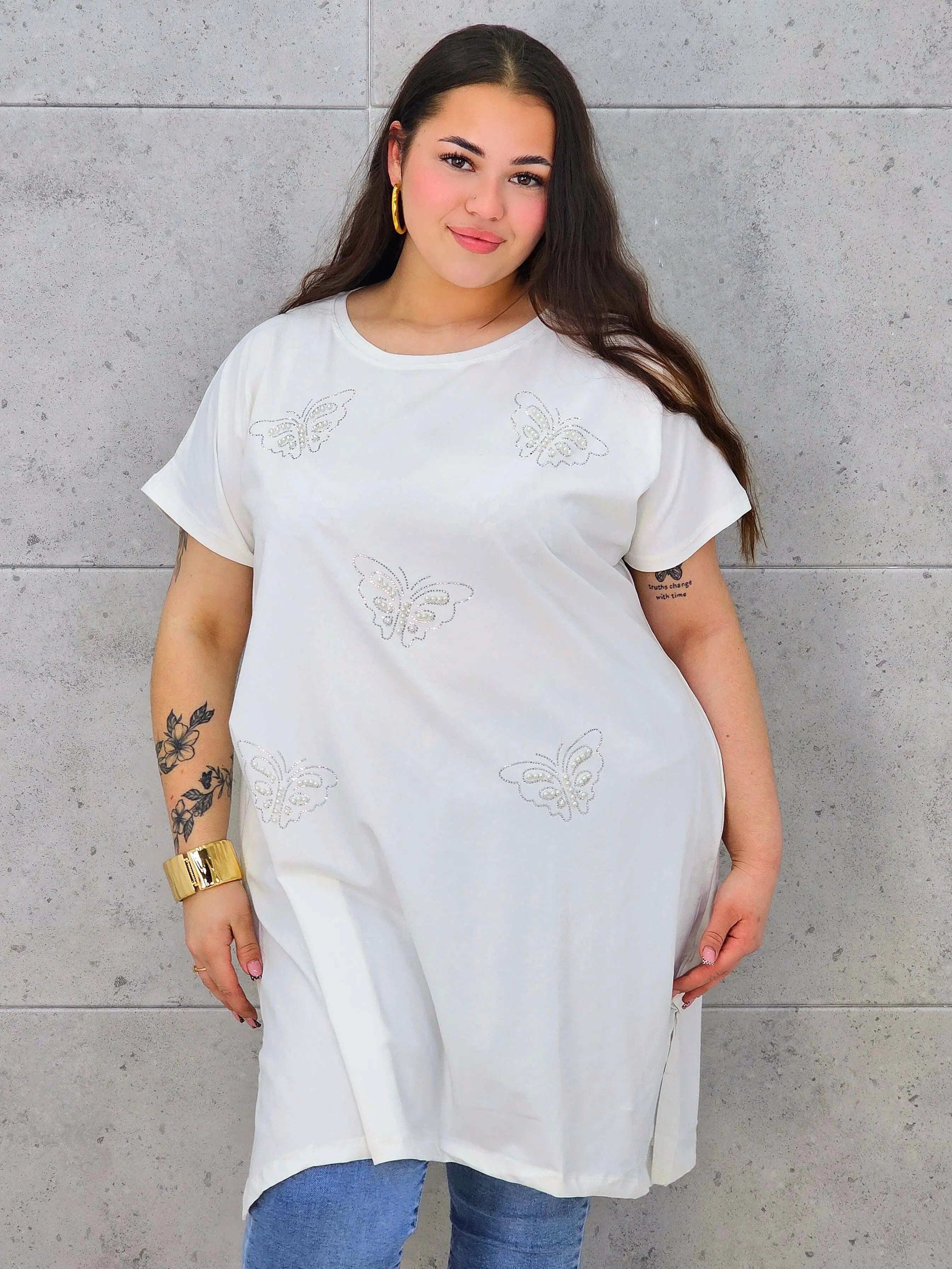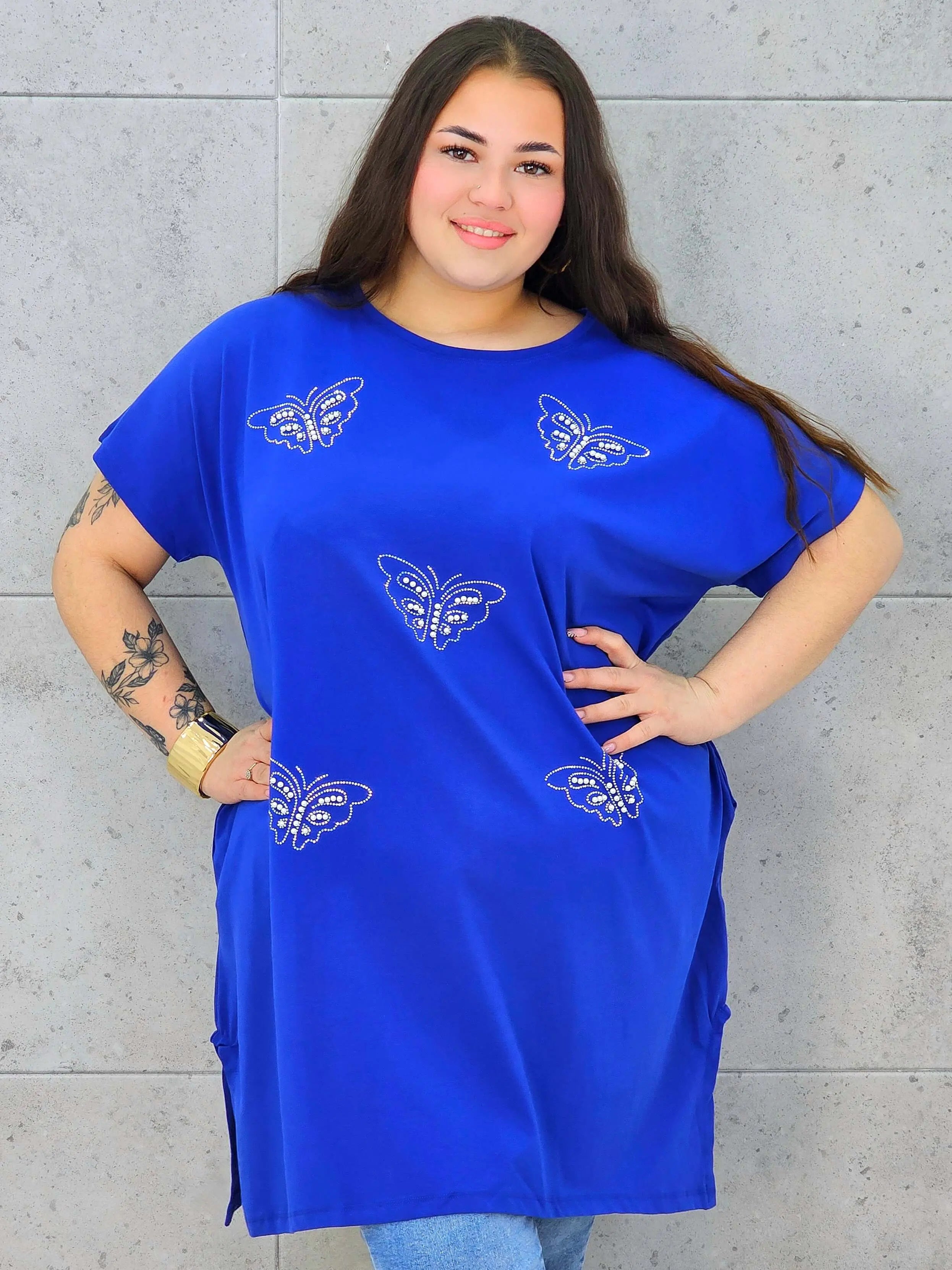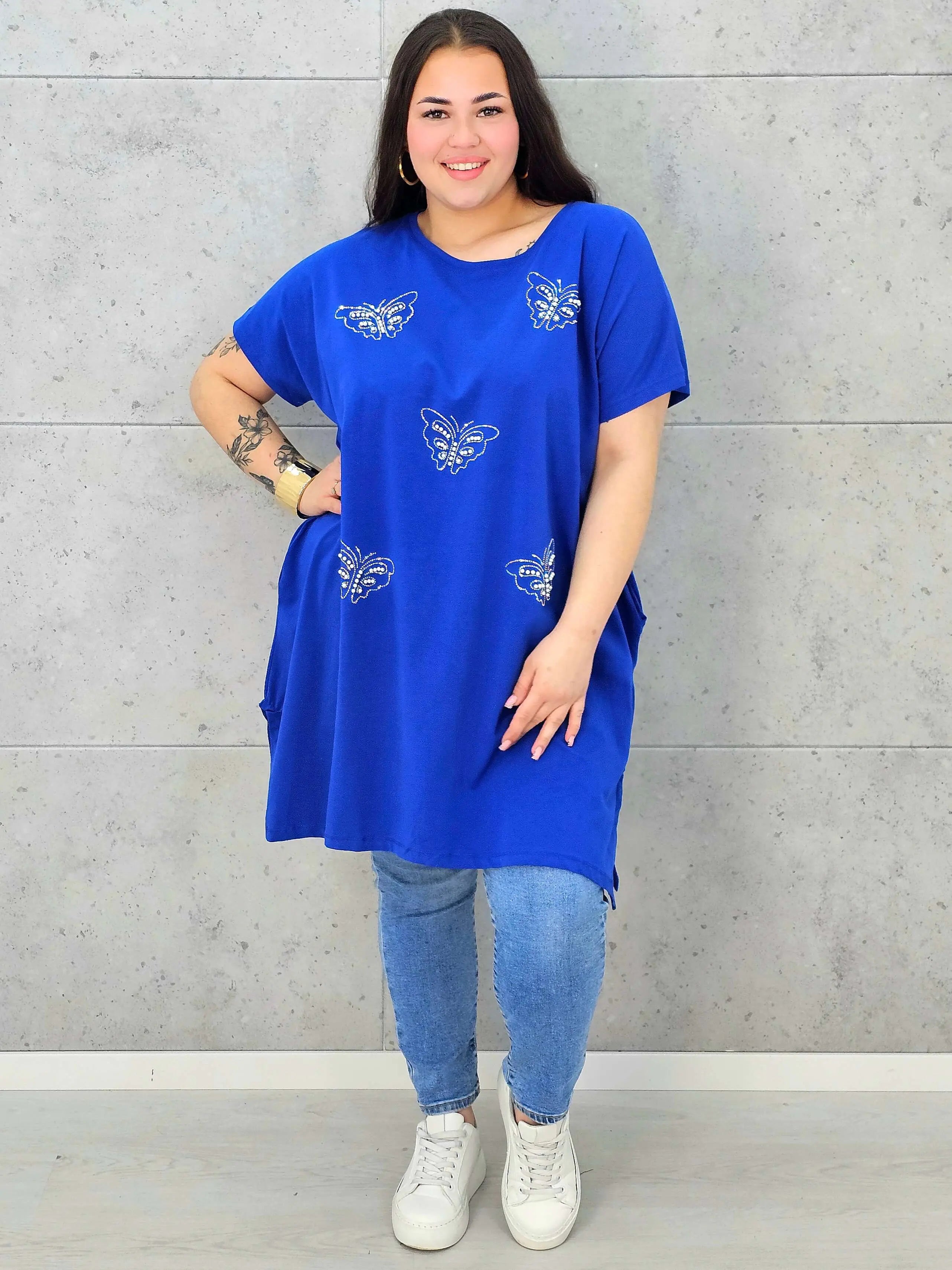 Bluzka plus size – z połyskującymi motylami na przodzie