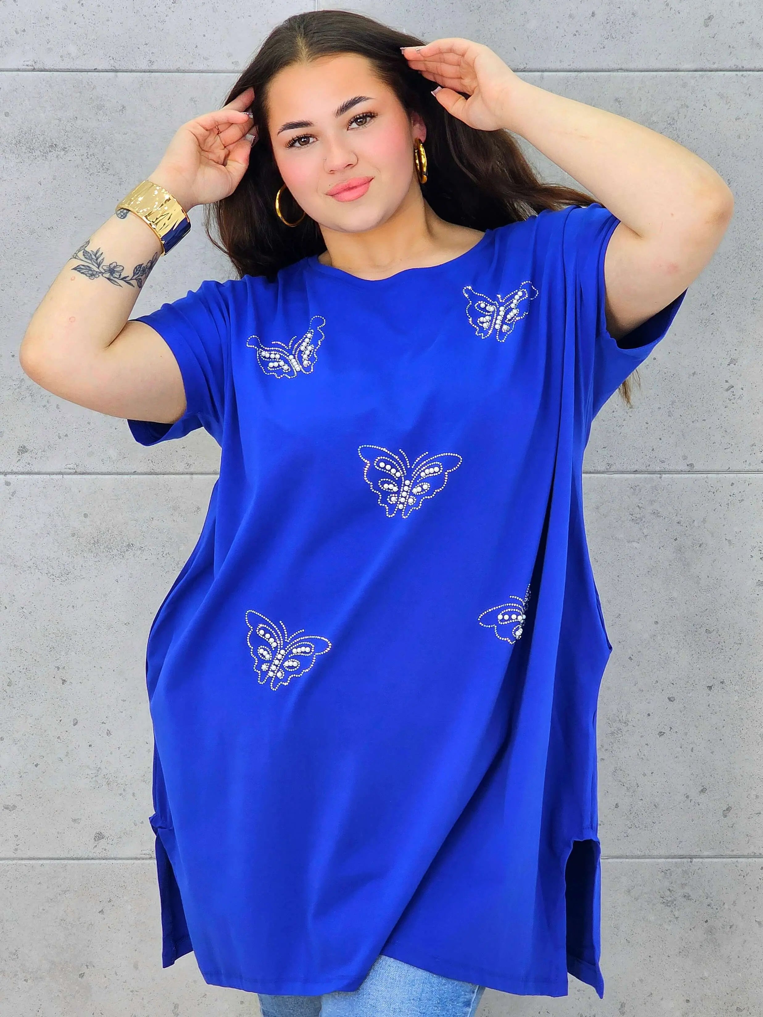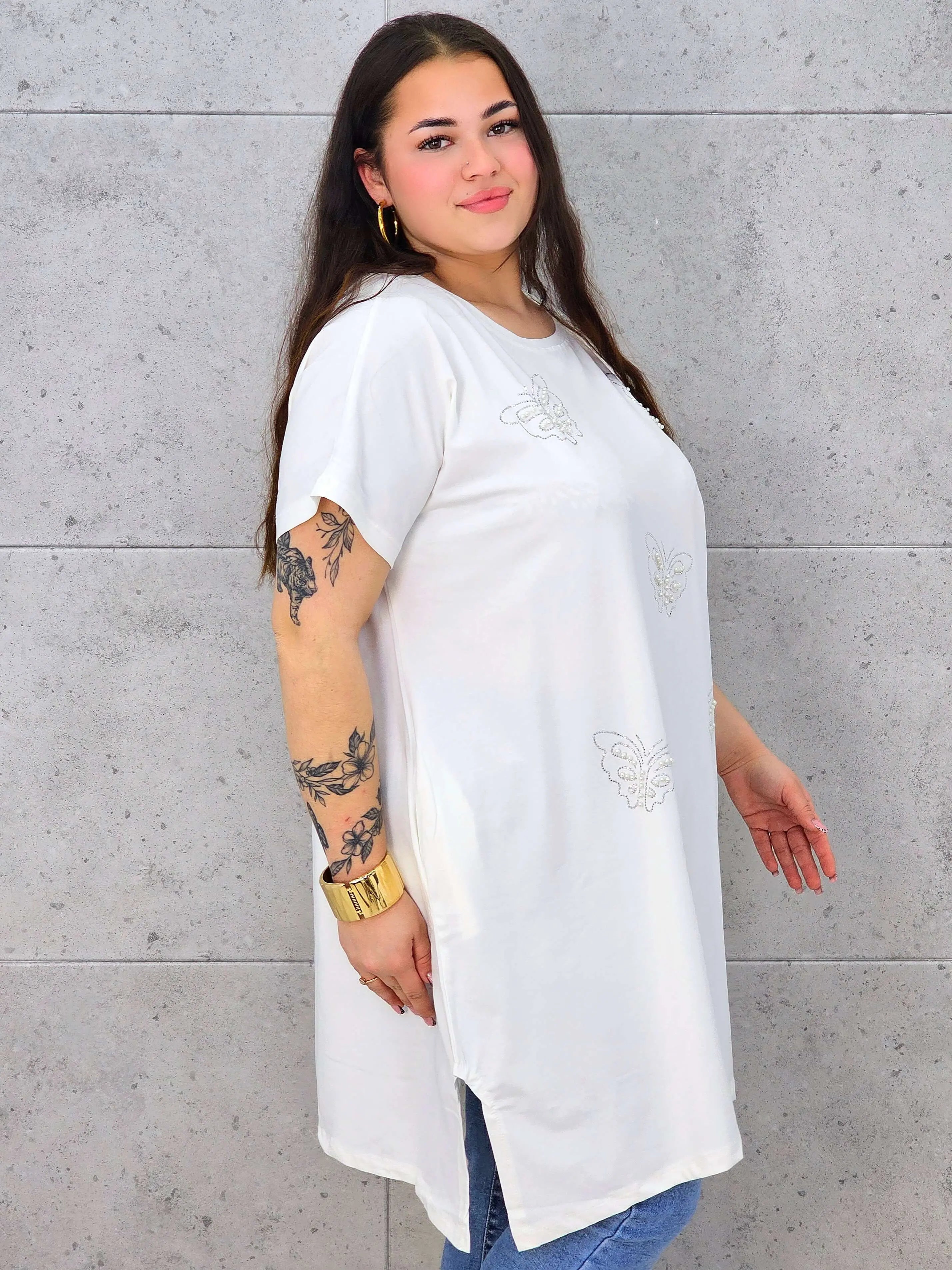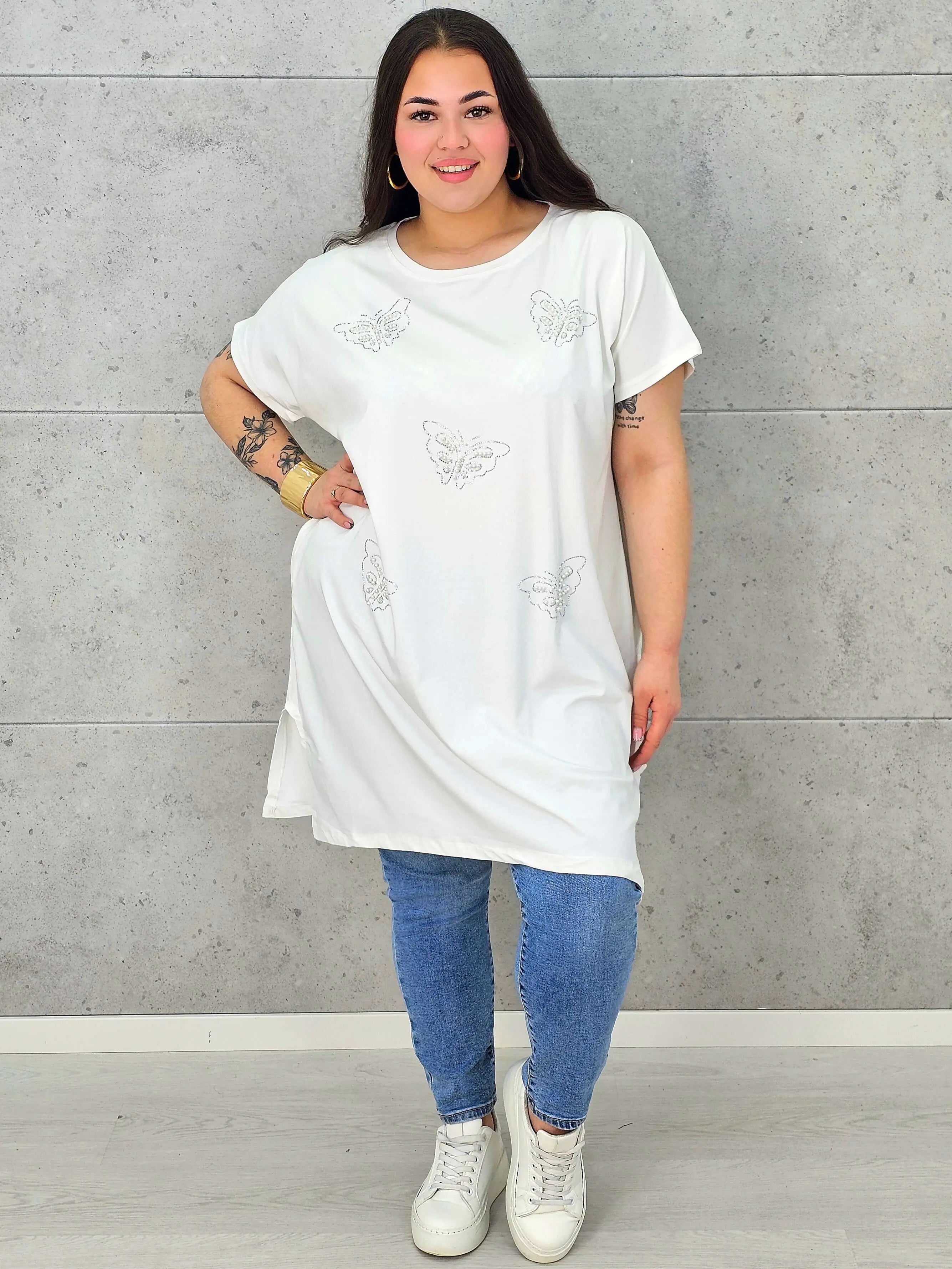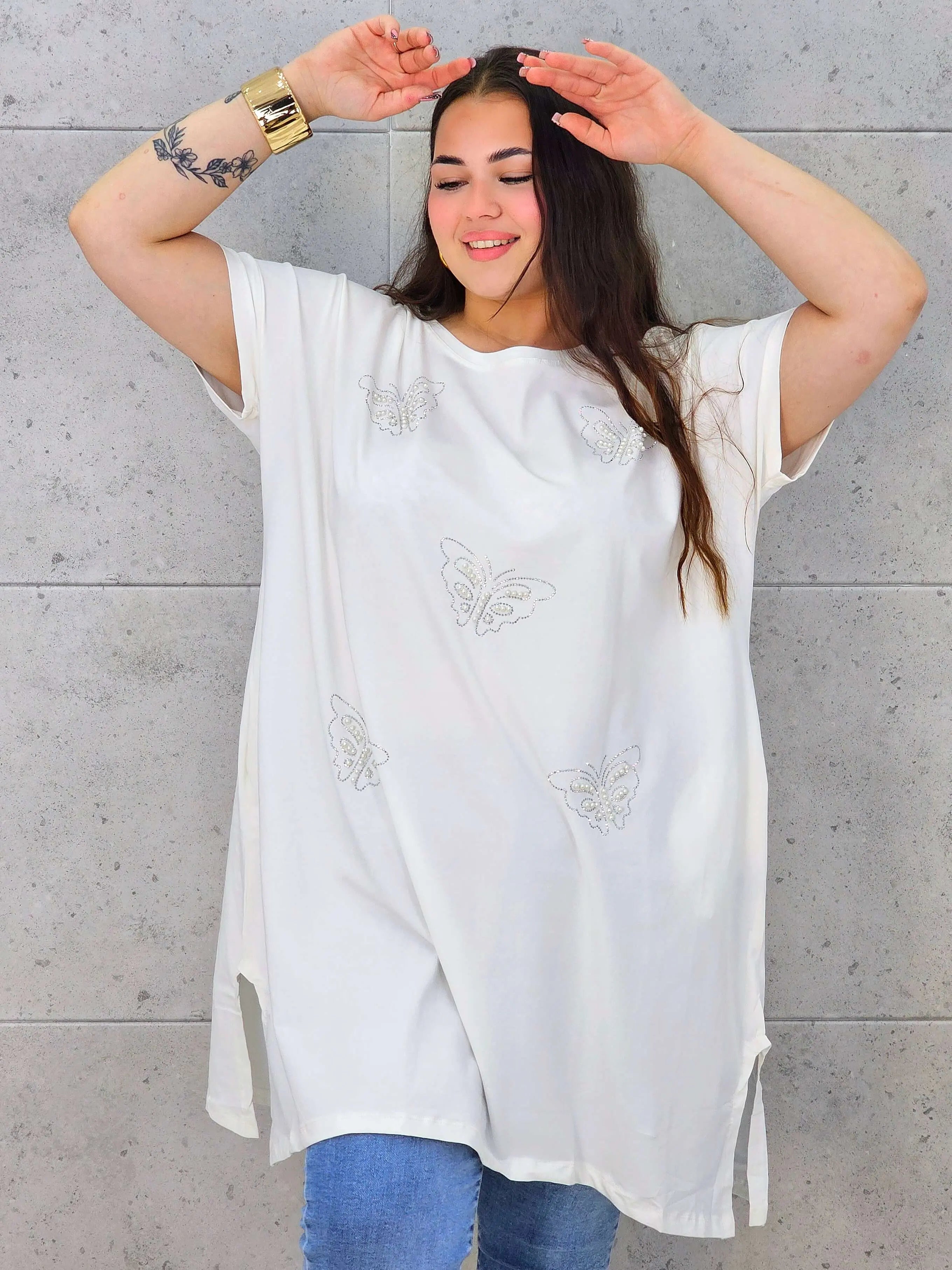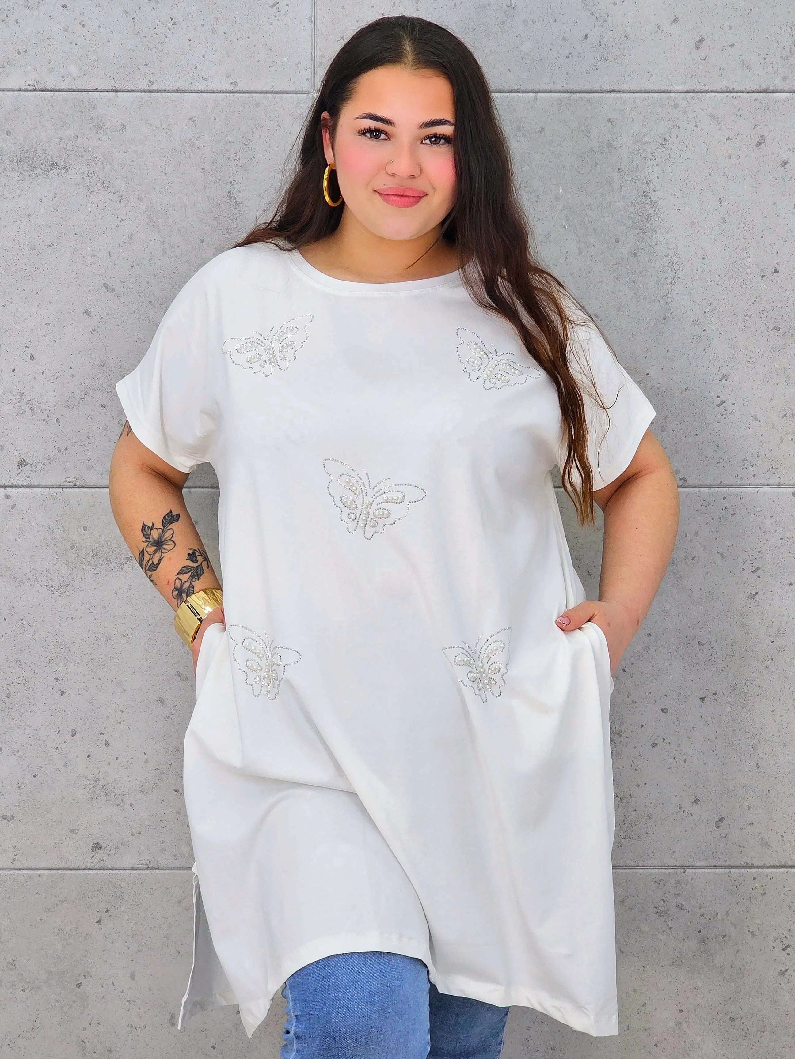 Bluzka plus size – z połyskującymi motylami na przodzie