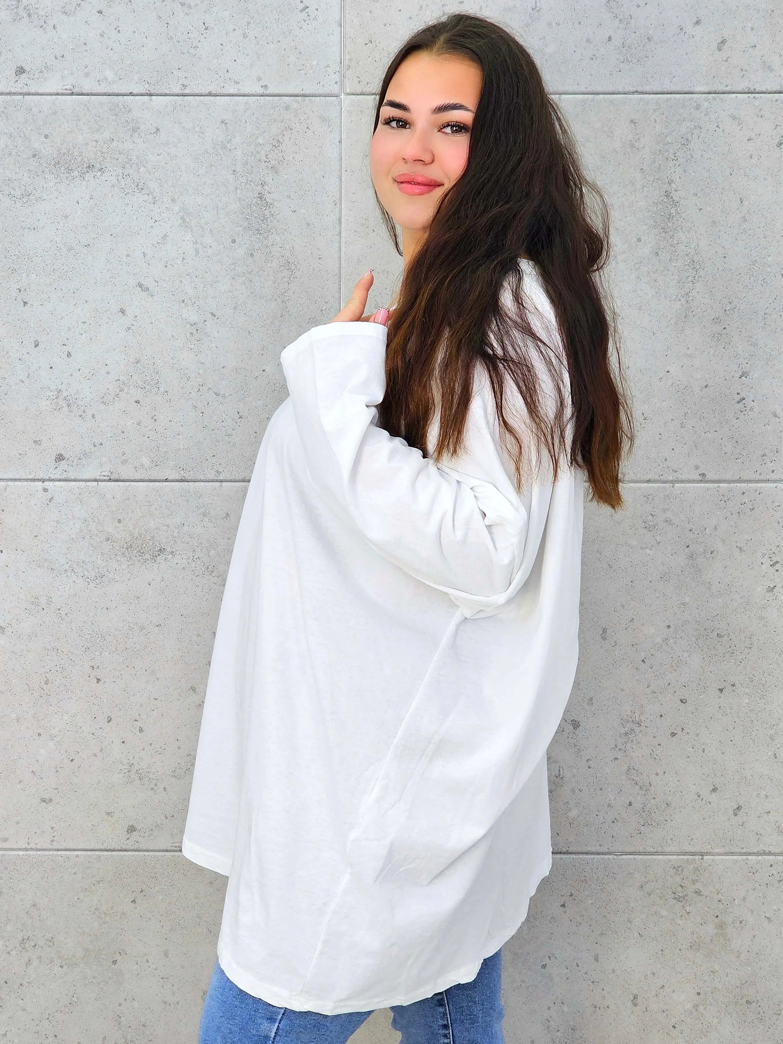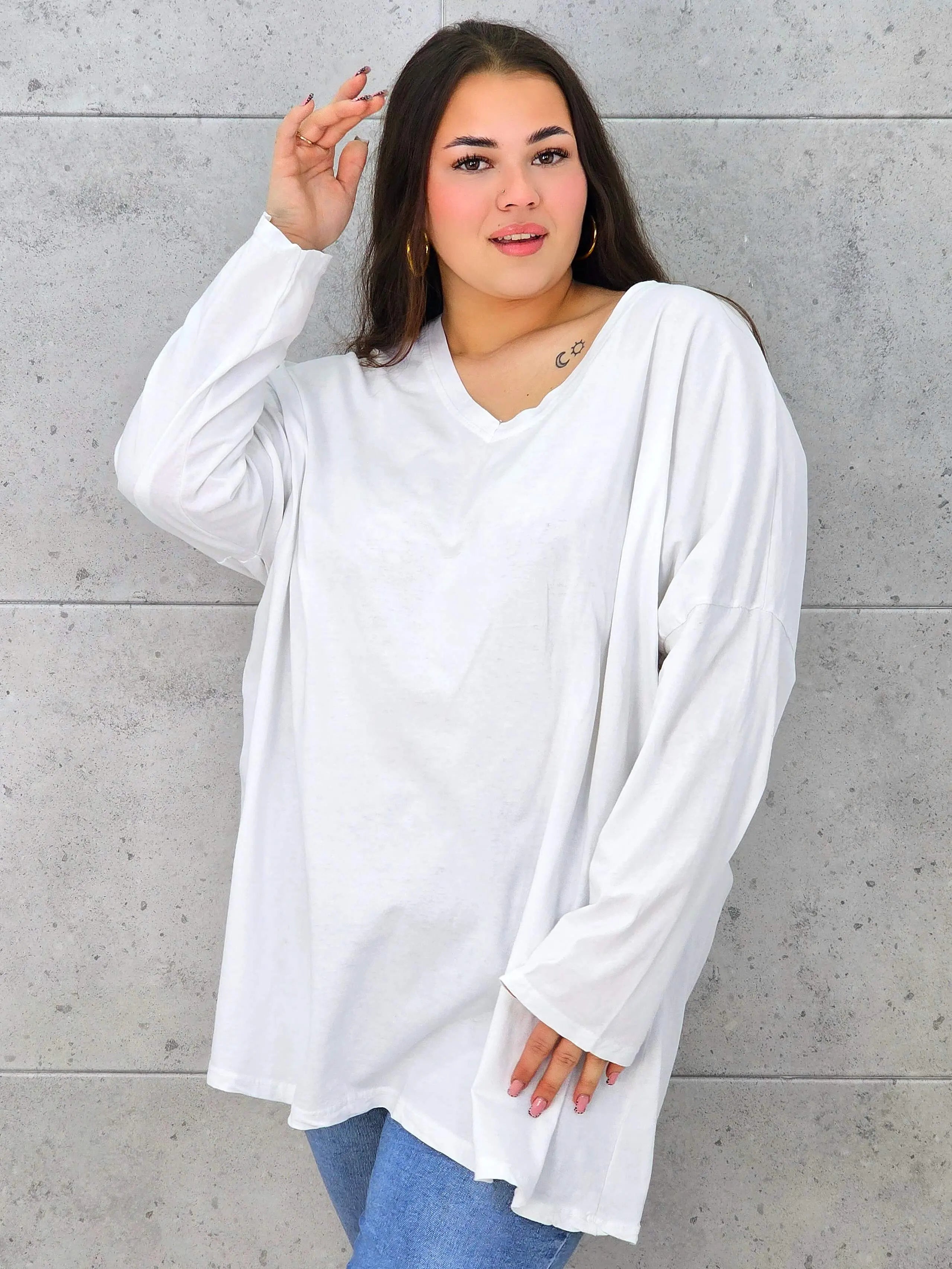 Bluzka plus size została zaprojektowana z myślą o kobietach ceniących wygodę, lekkość i nowoczesny, oversize’owy krój. To model idealny do codziennych stylizacji w duchu mody plus size, który pięknie układa się na sylwetce i pozwala jej swobodnie oddychać.