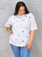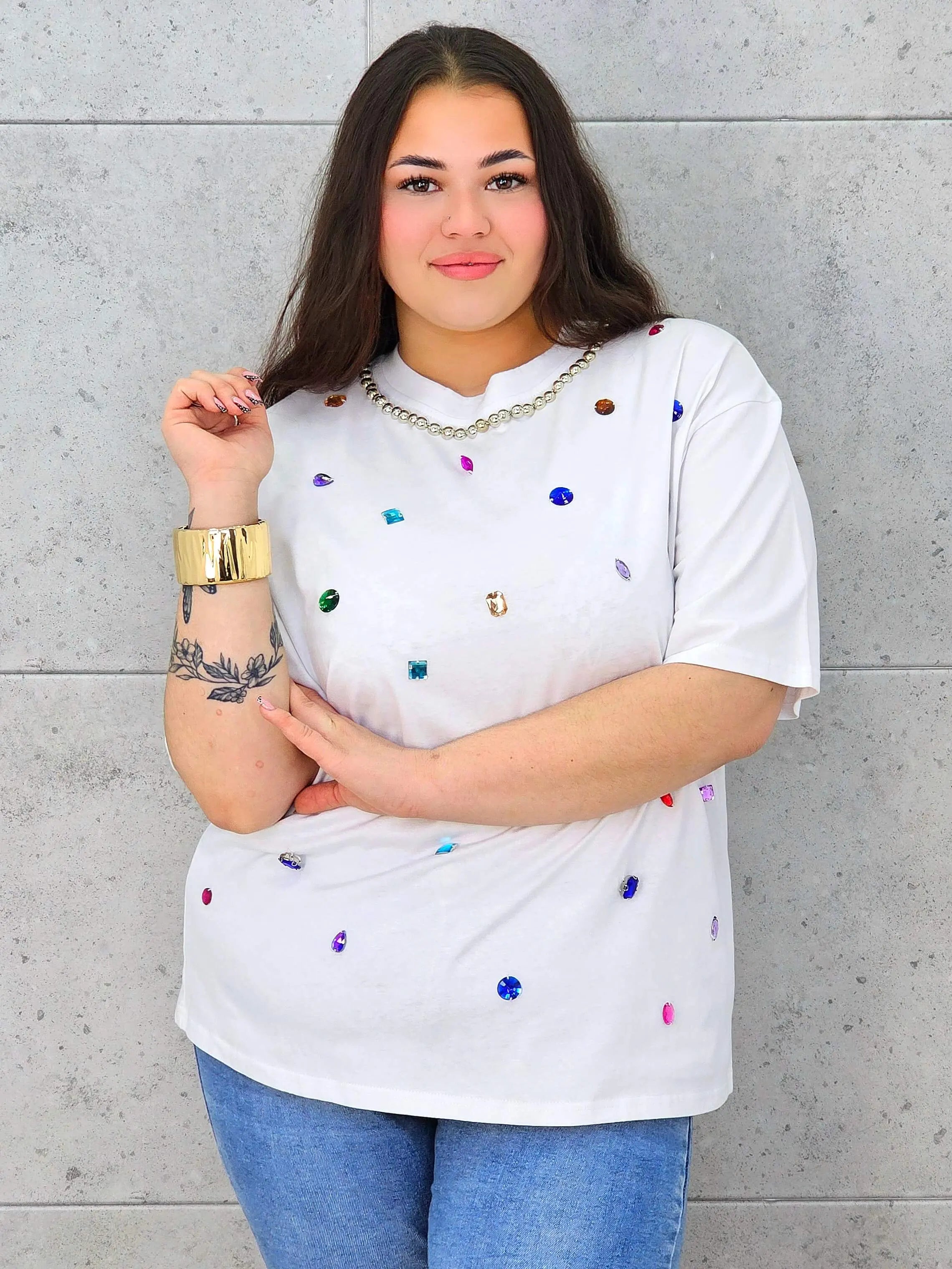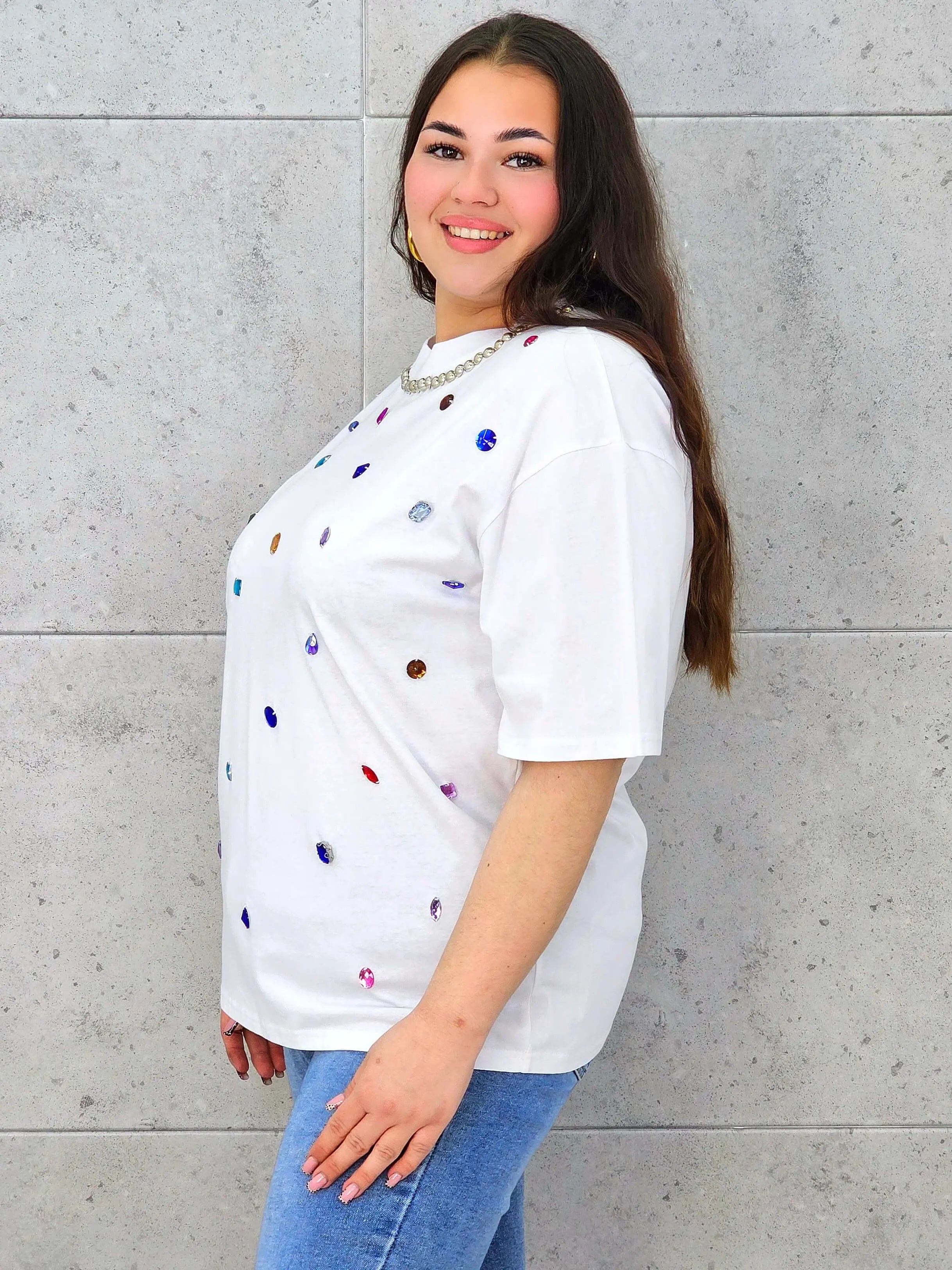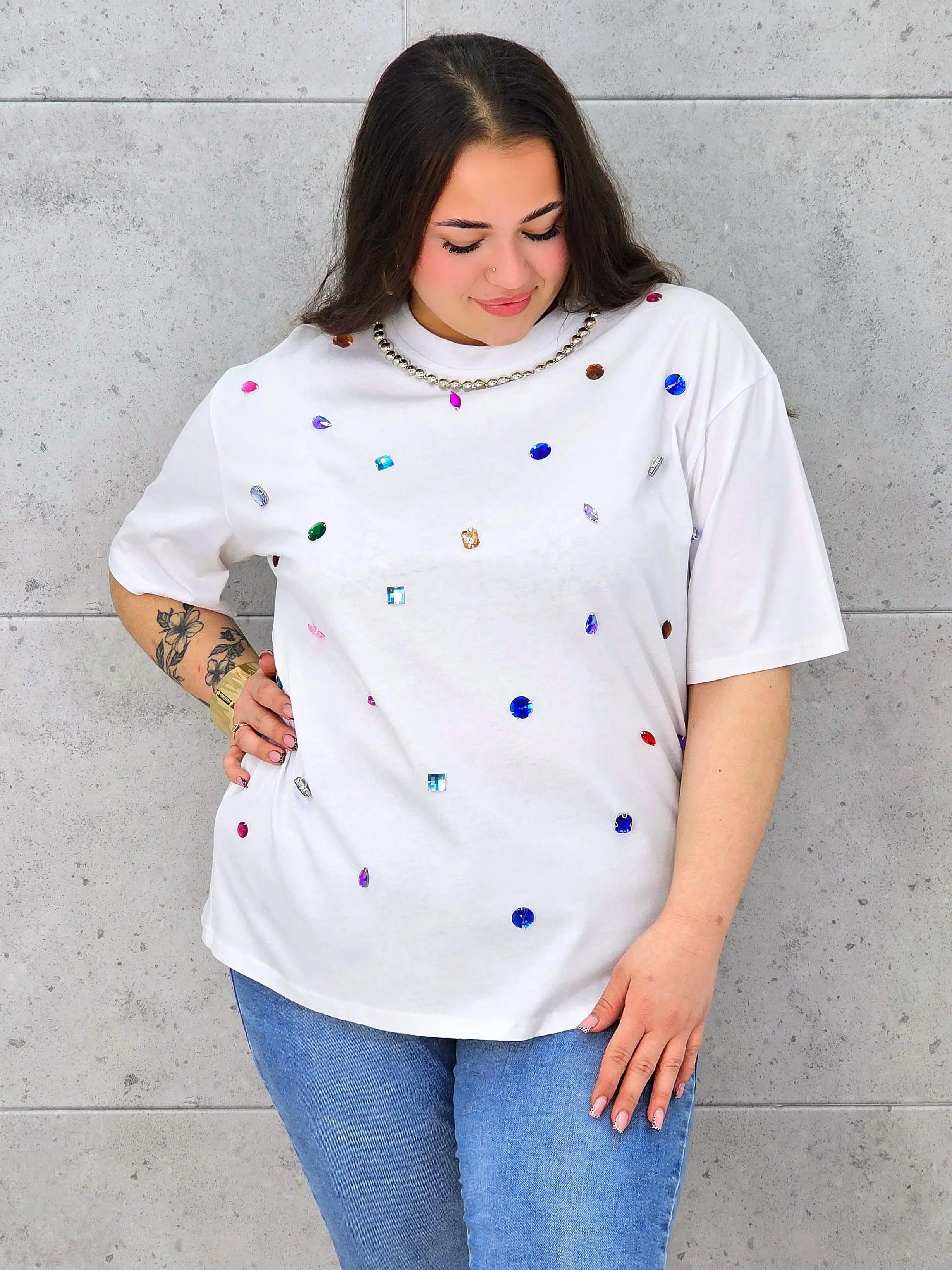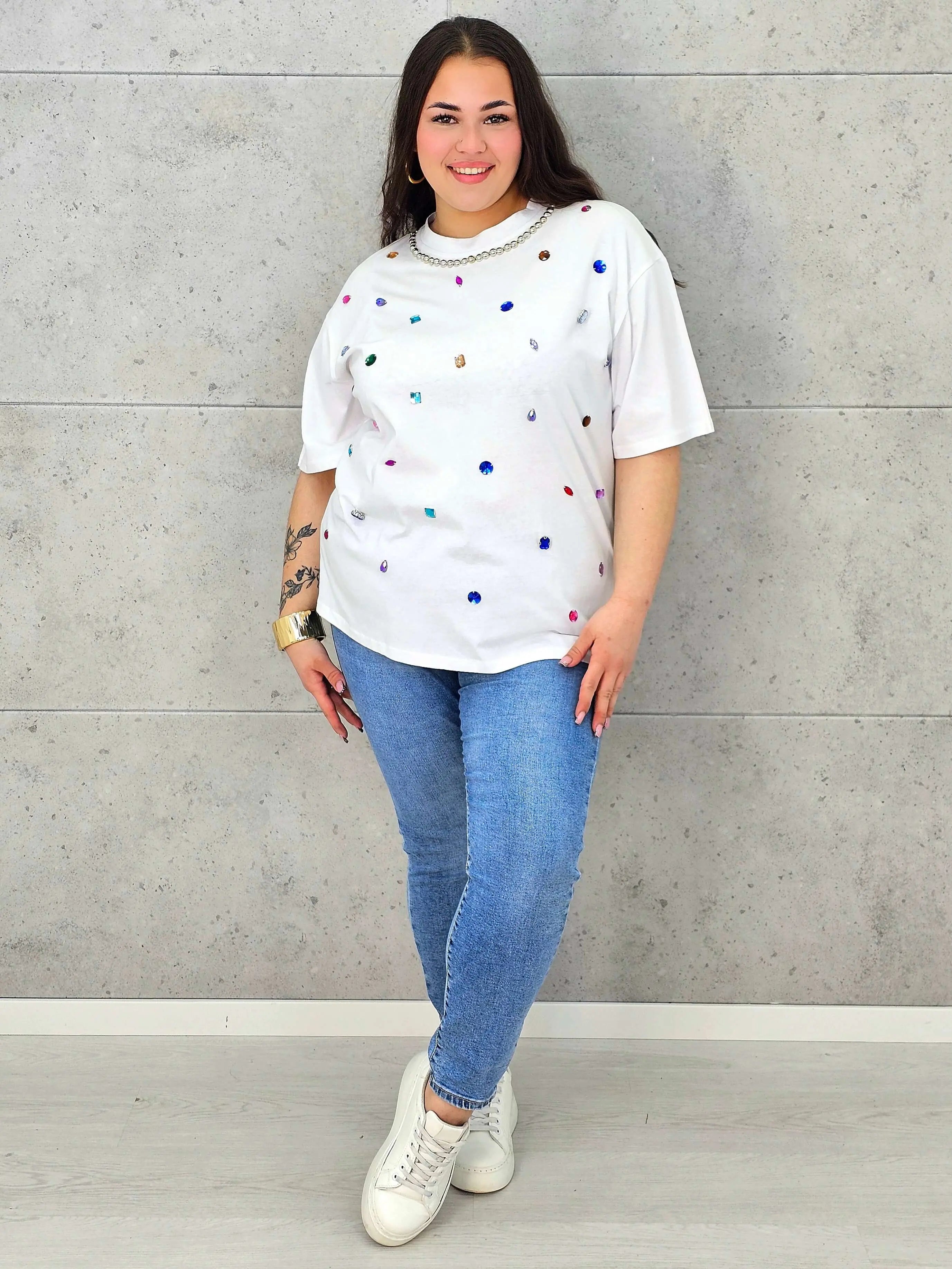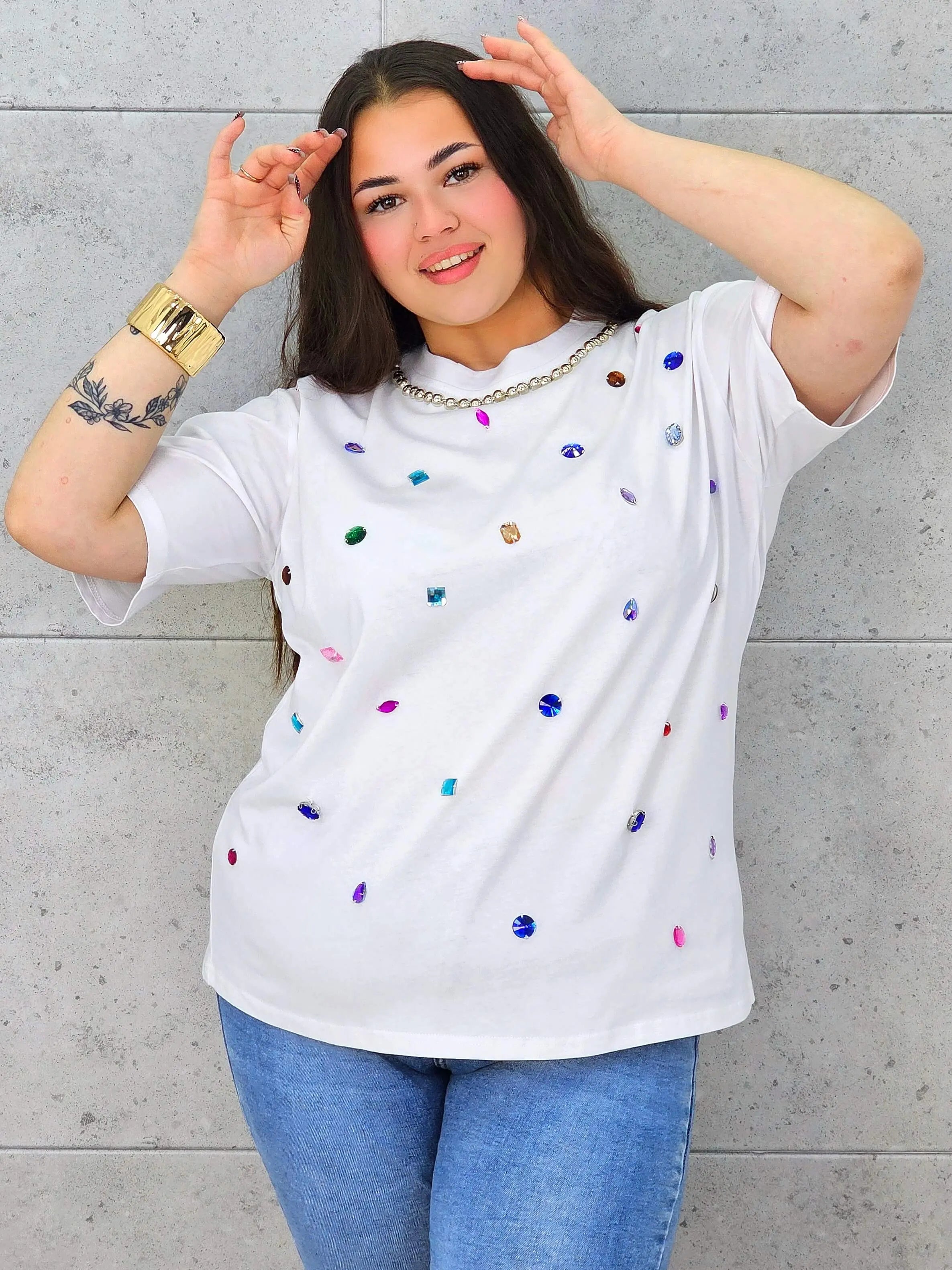 Bluzka plus size – nowoczesny T-shirt z kolorowymi kryształkami