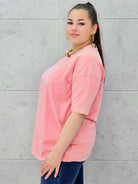 Delikatnie opuszczona linia ramion oraz klasyczna długość sprawiają, że bluzka świetnie wygląda zarówno do dopasowanych jeansów, jak i legginsów. To model, który bez wysiłku buduje stylowy, a jednocześnie bardzo komfortowy look, idealny dla kobiet wybierających wygodną odzież plus size na co dzień.