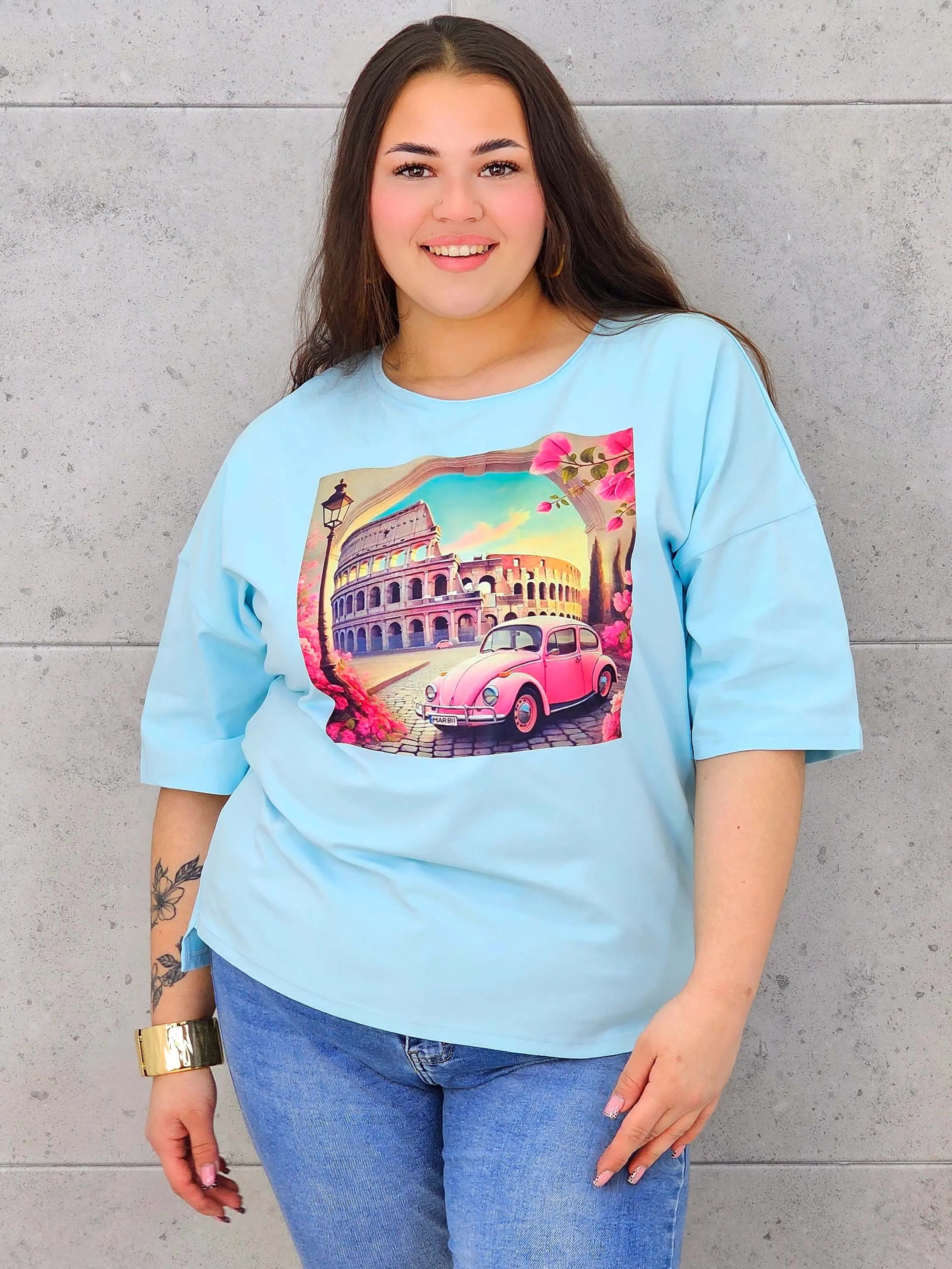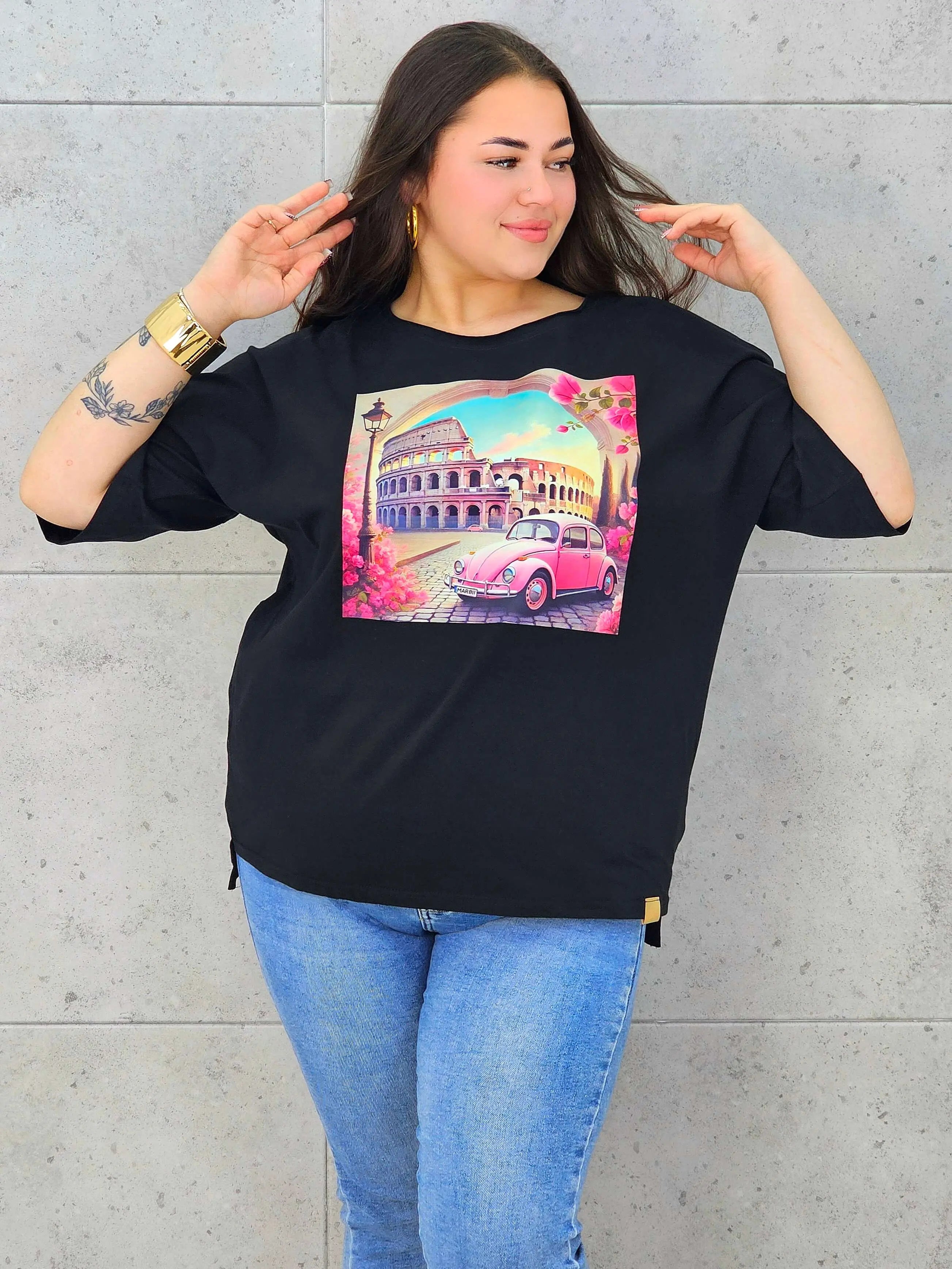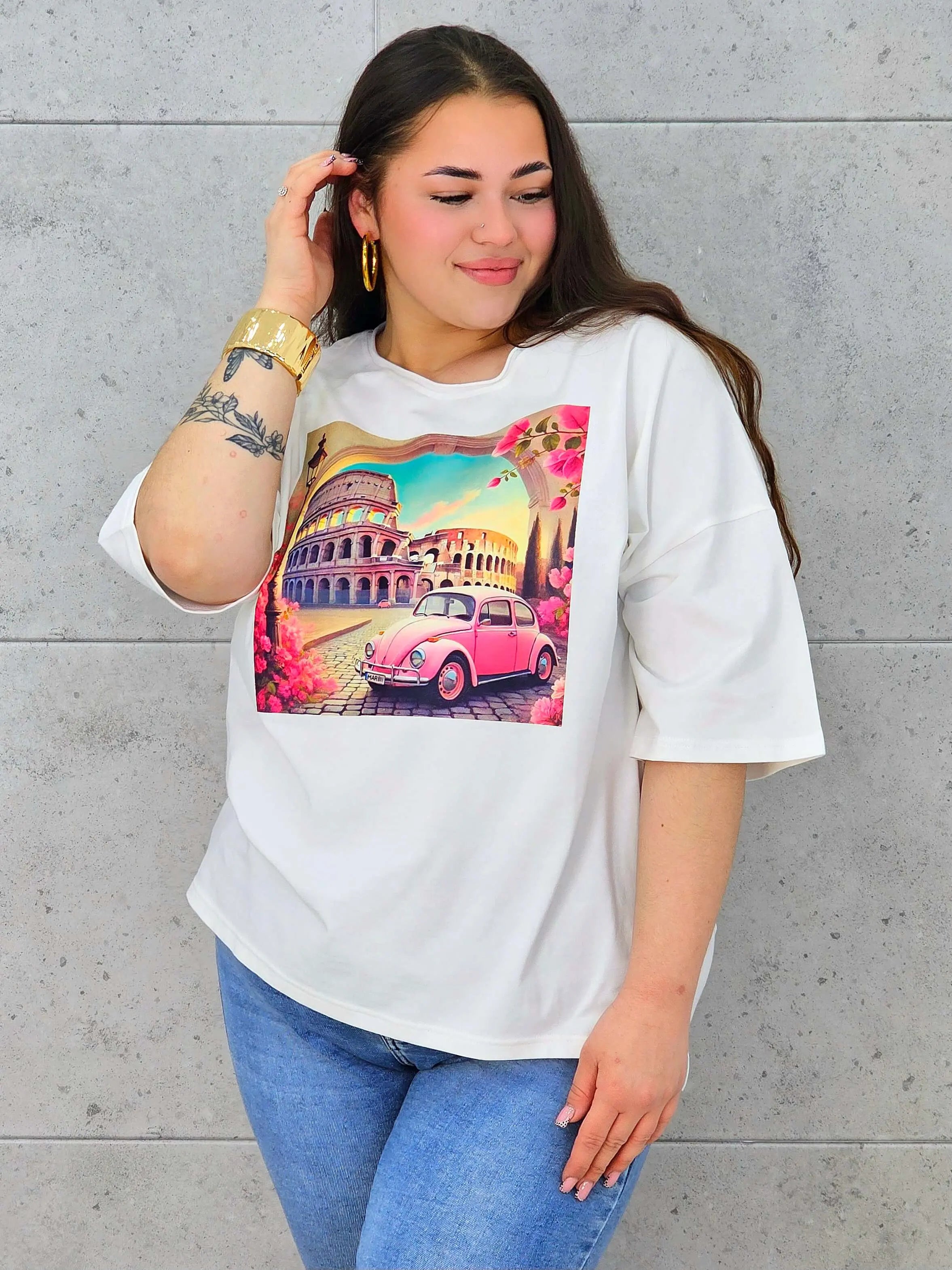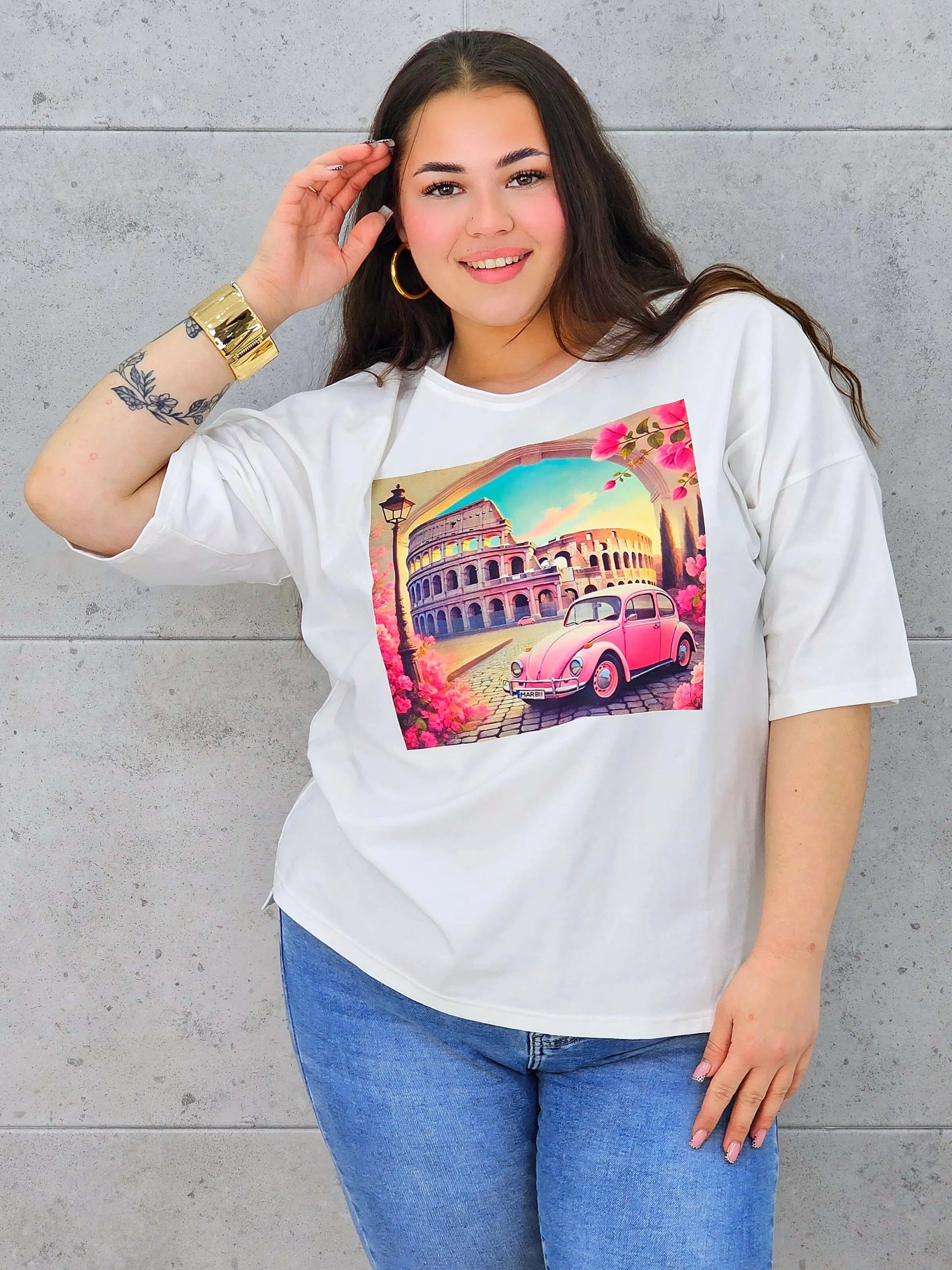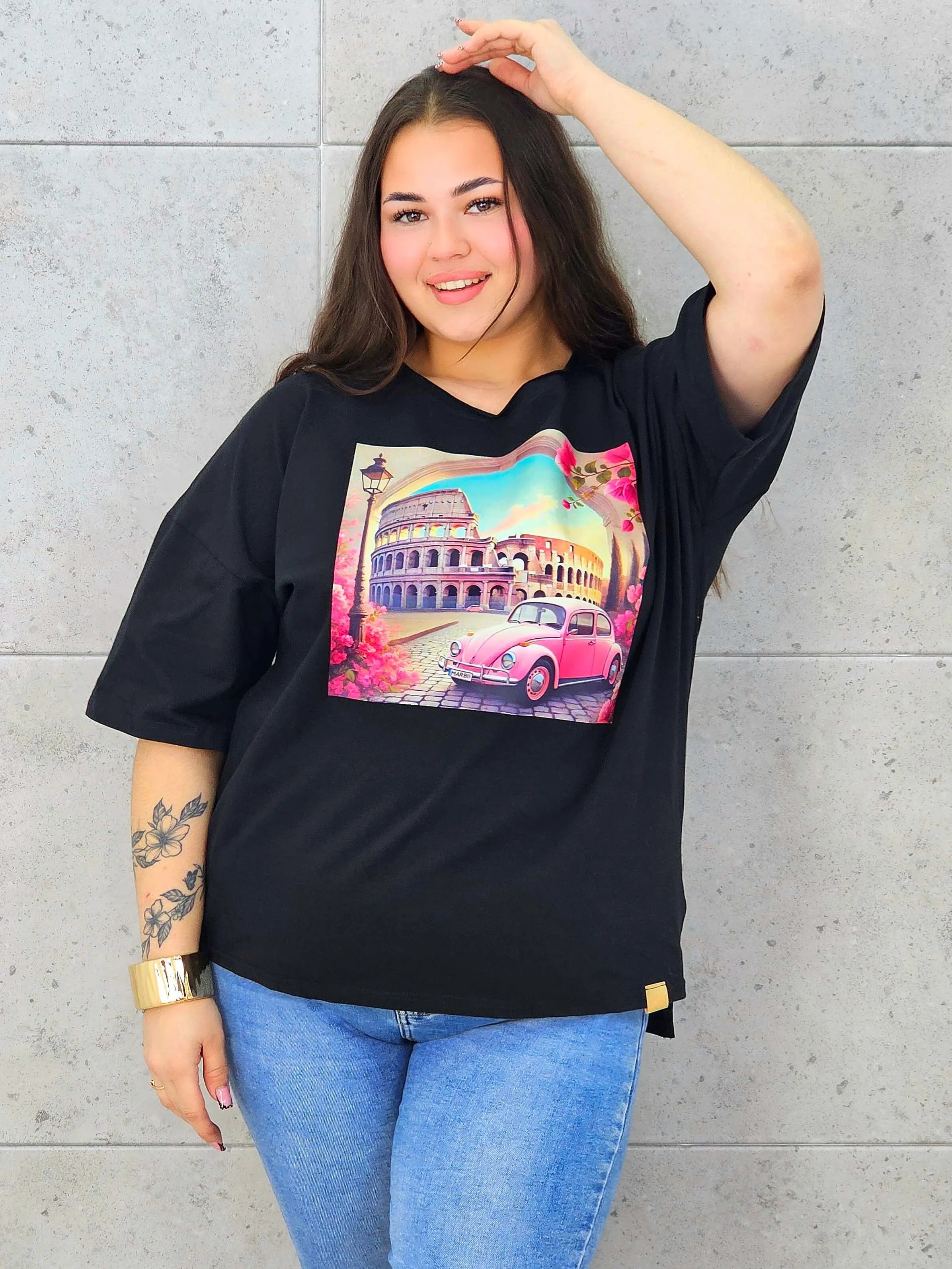 Bluzka plus size z nadrukiem Rzym i kultowym garbusem – stylowy T-shirt XXL