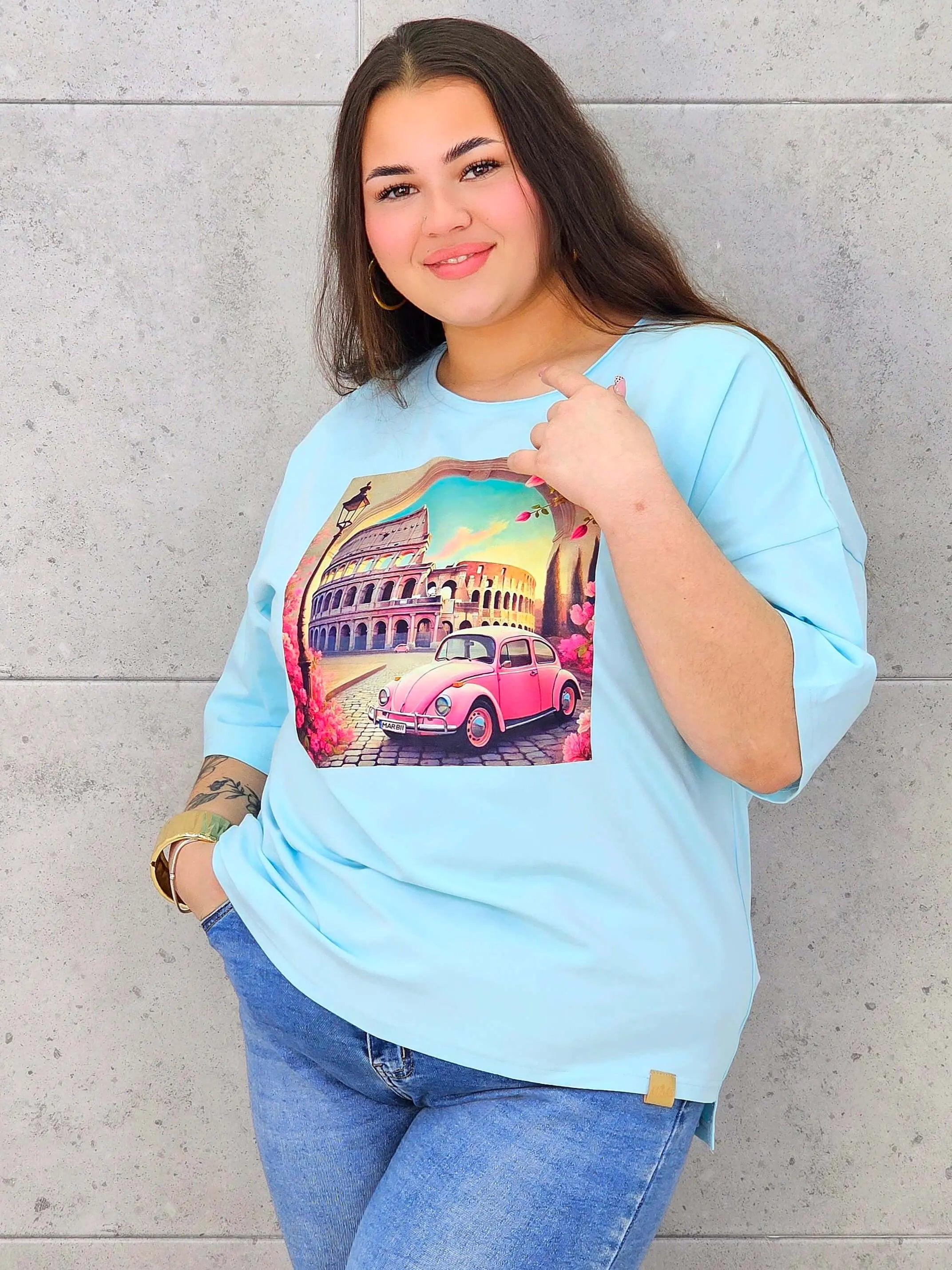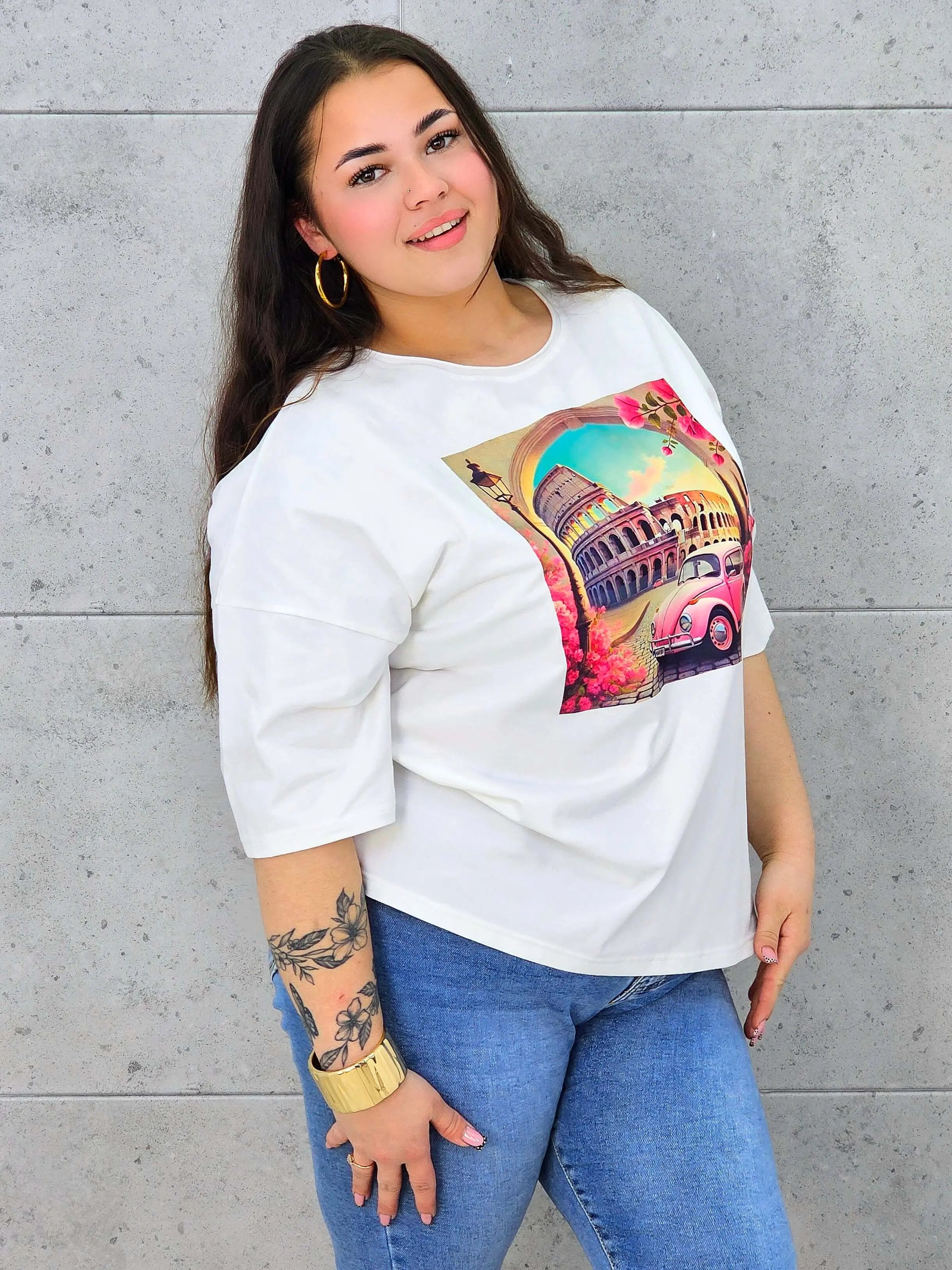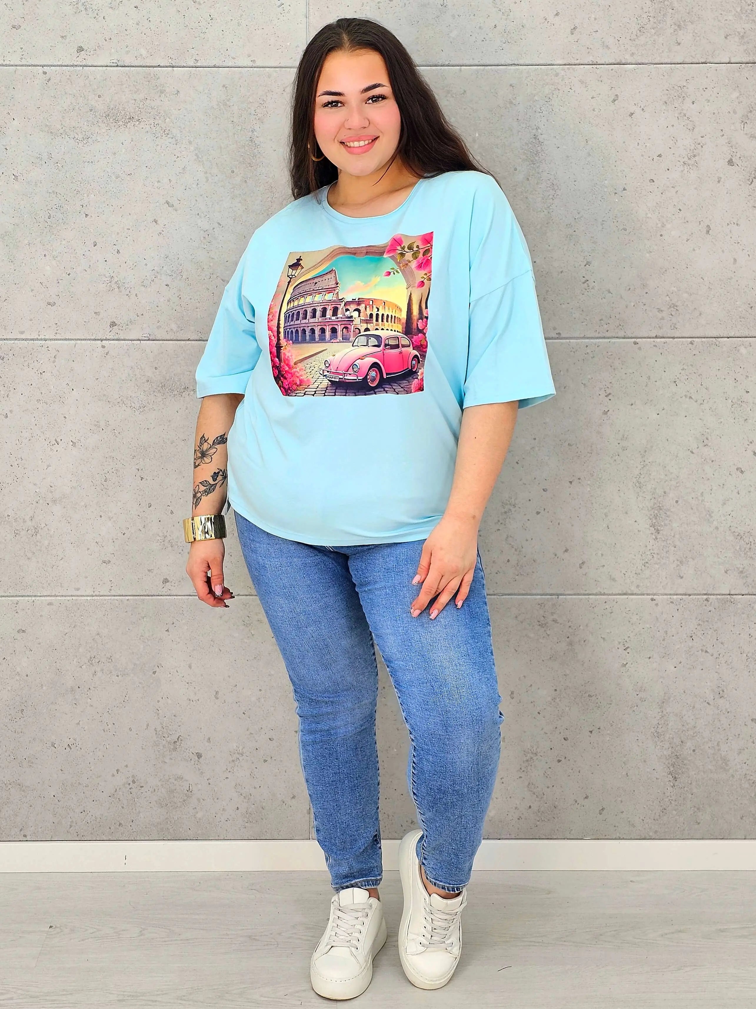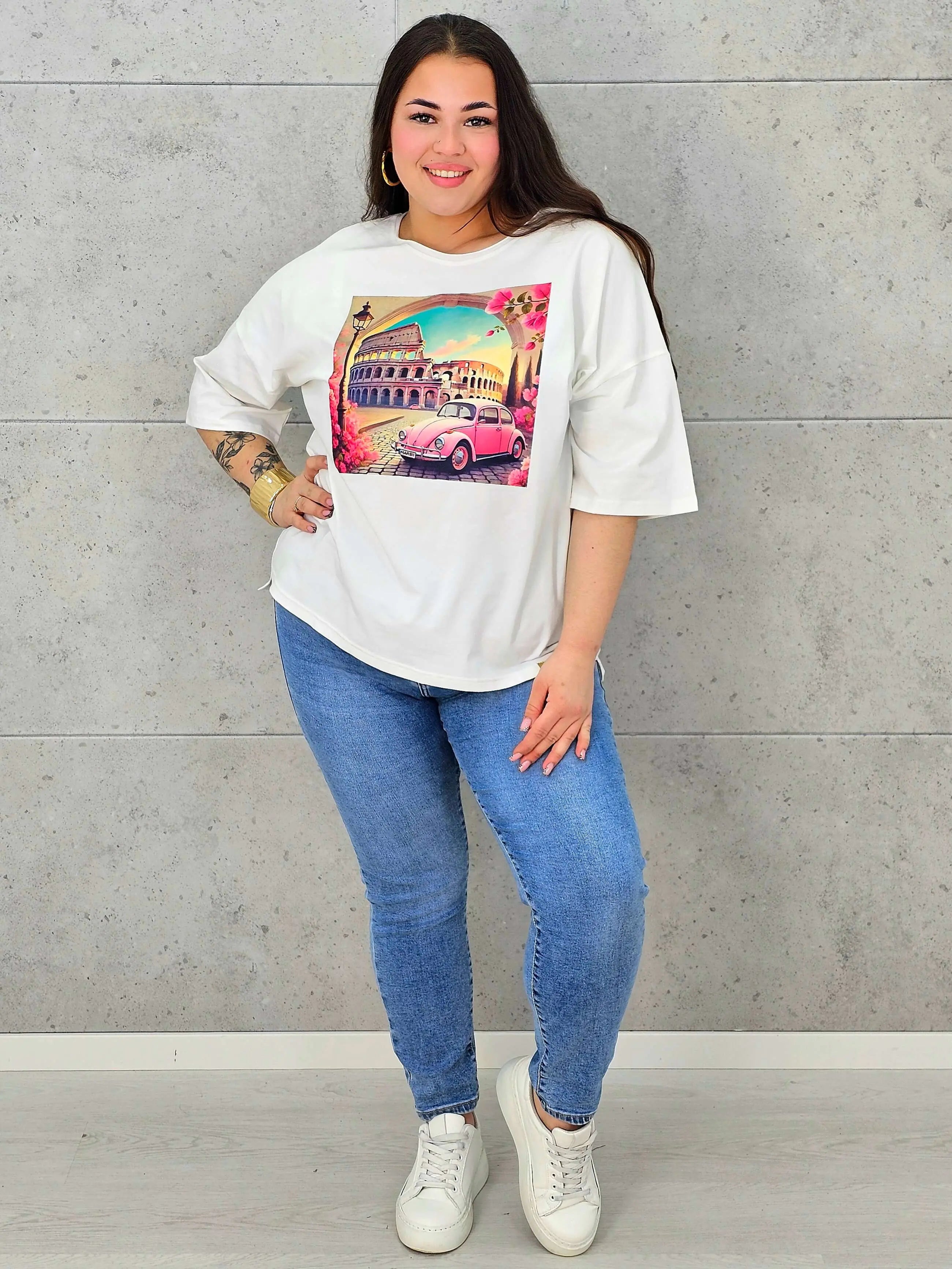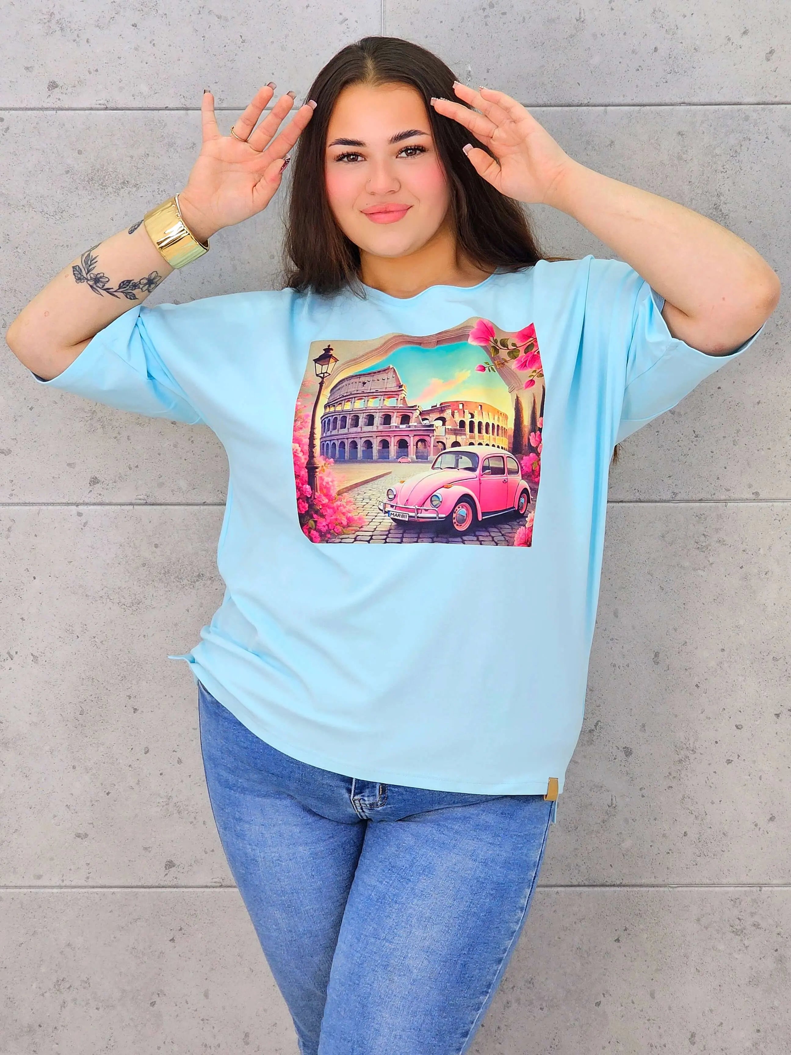 Bluzka plus size z nadrukiem Rzym i kultowym garbusem – stylowy T-shirt XXL