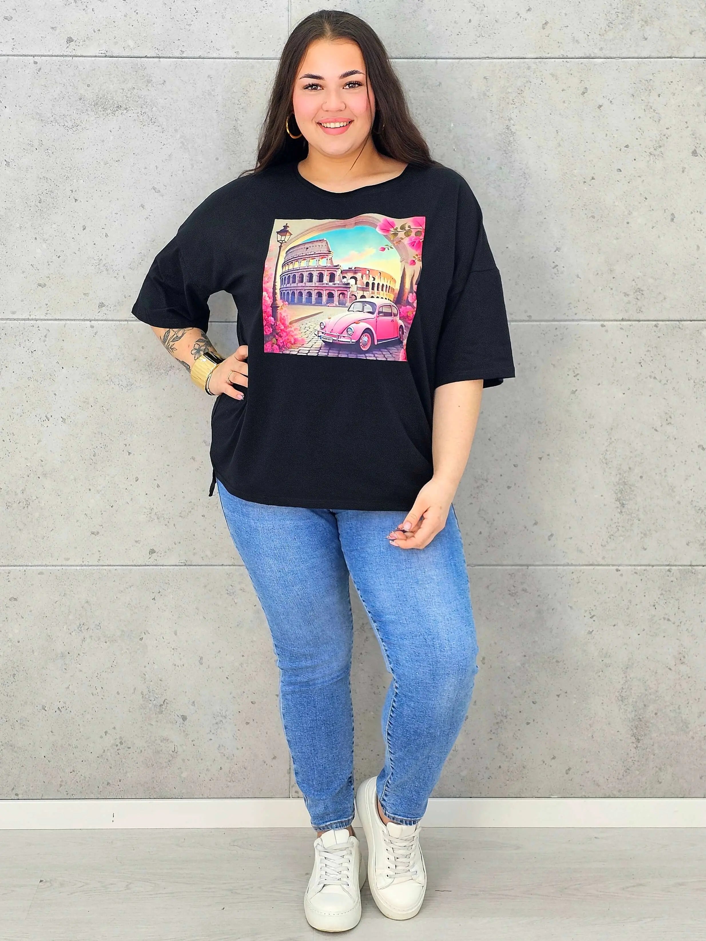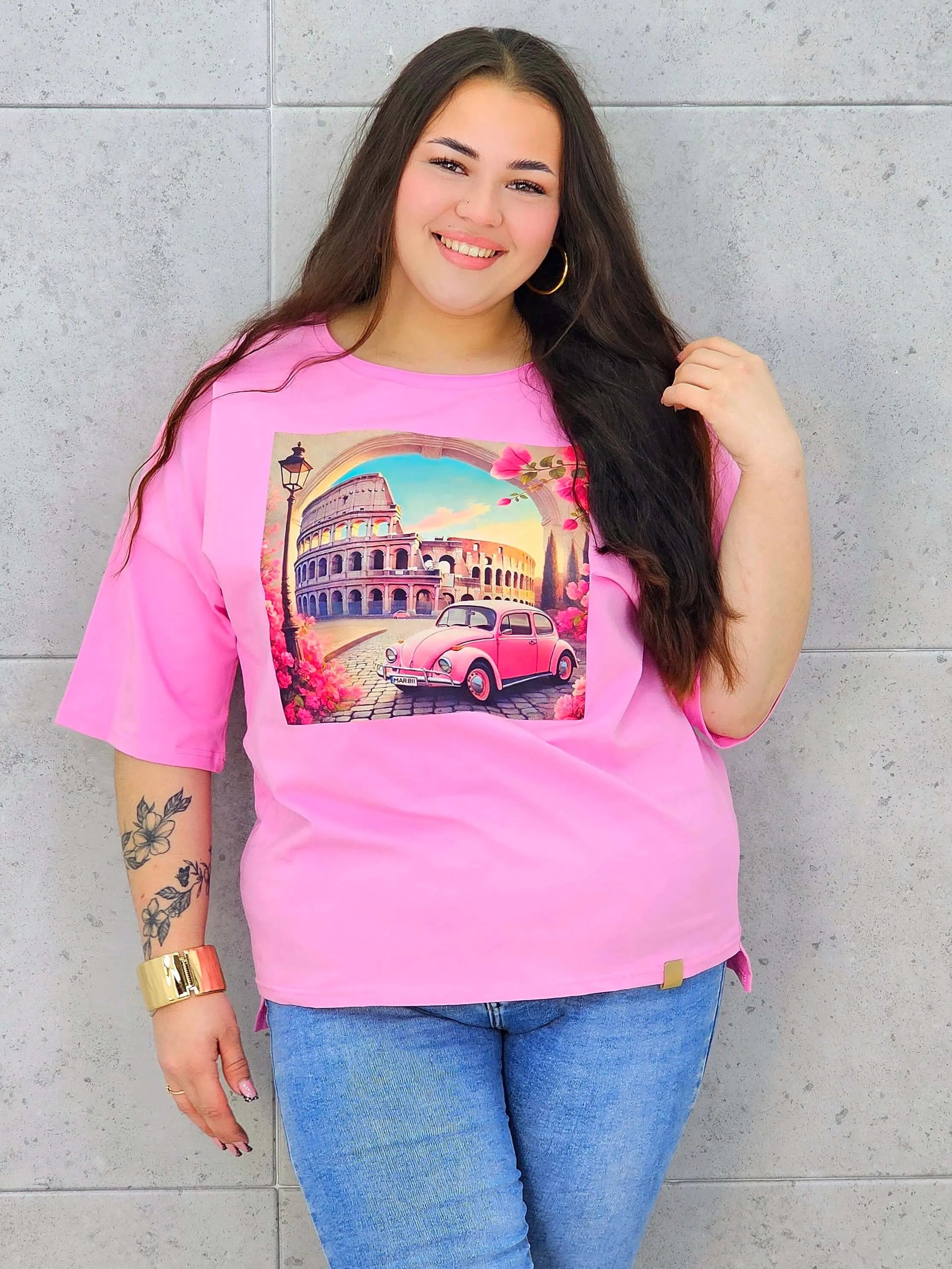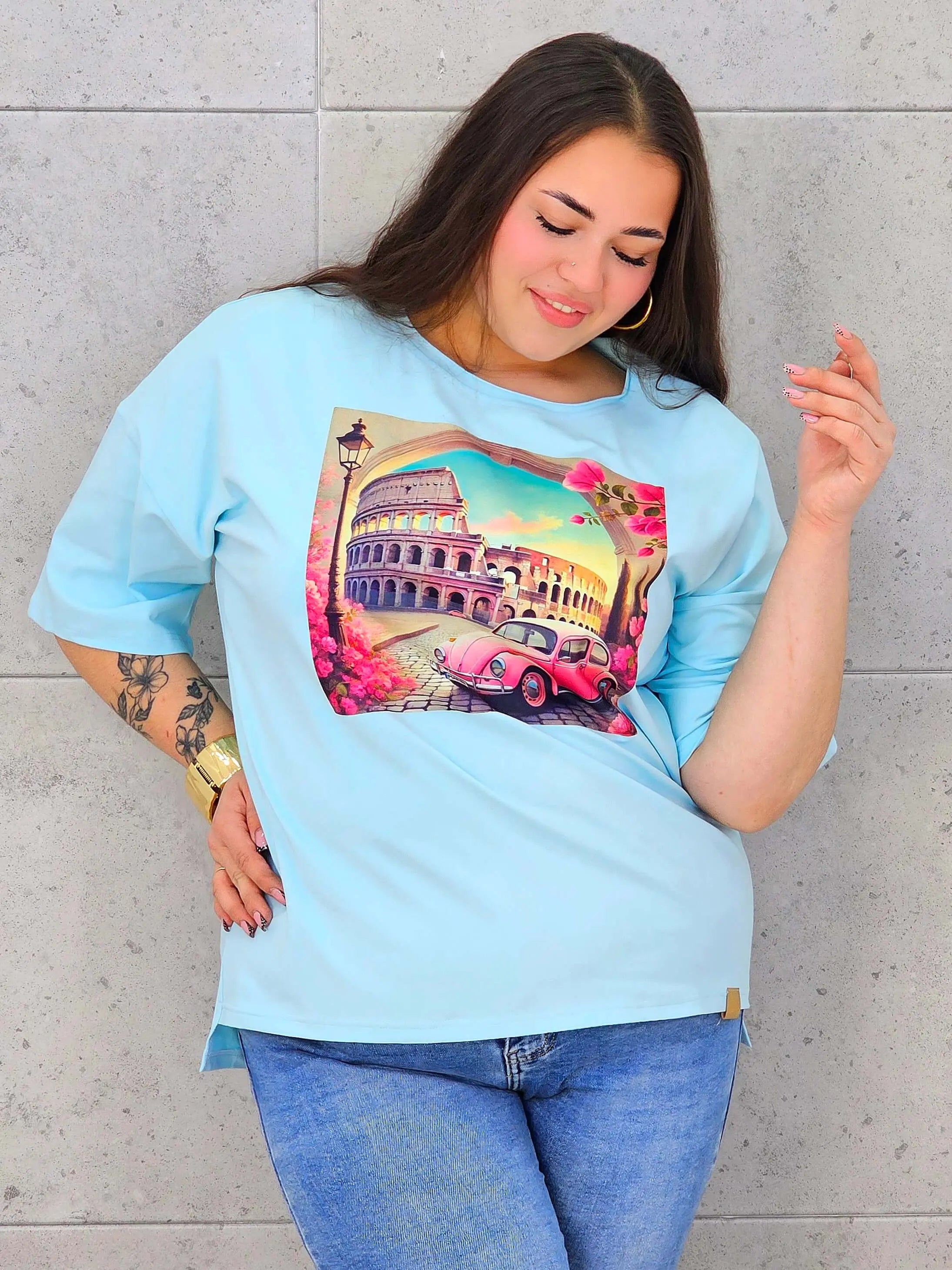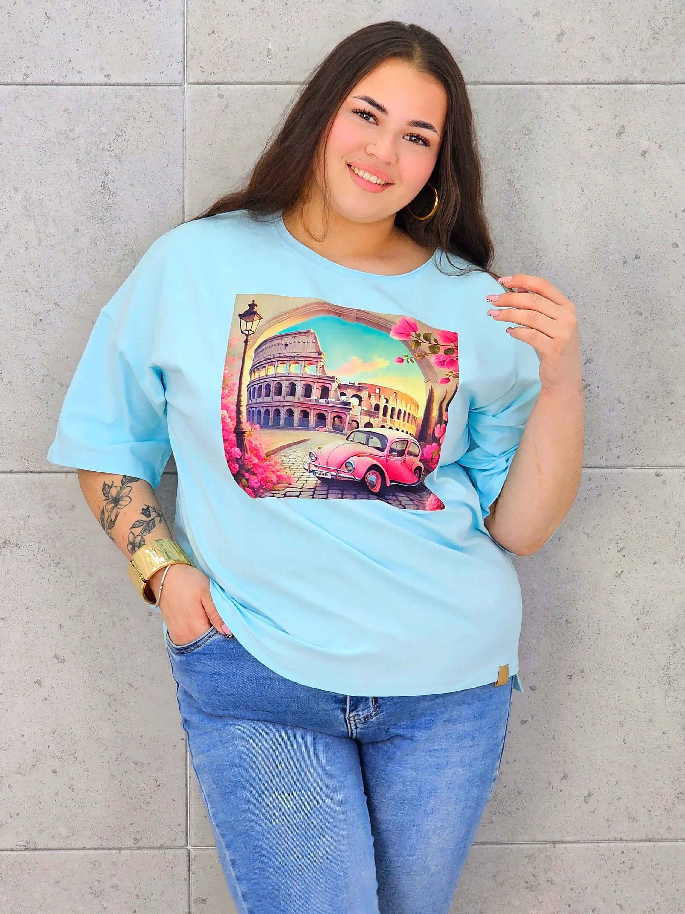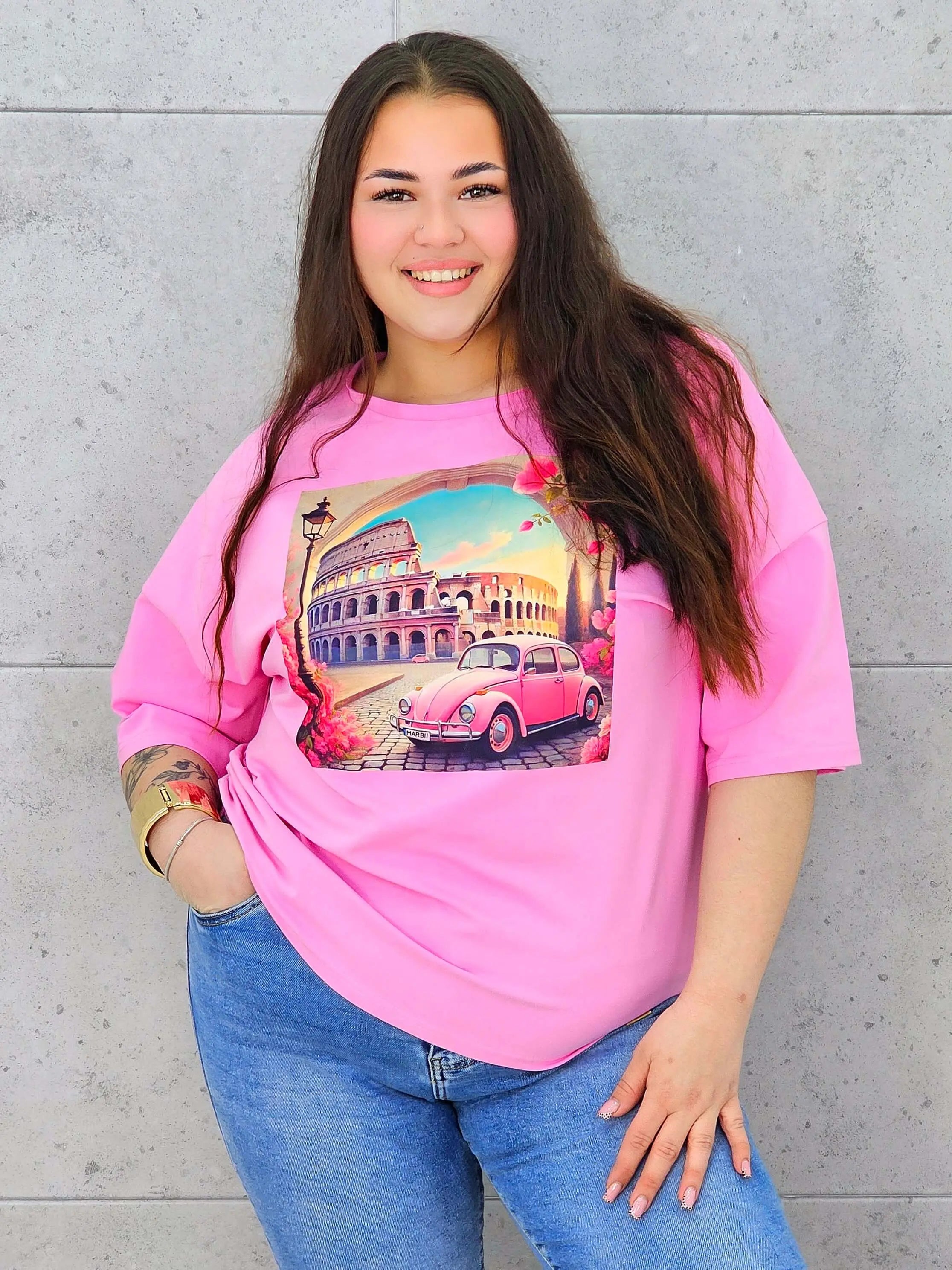 Bluzka plus size z nadrukiem Rzym i kultowym garbusem – stylowy T-shirt XXL