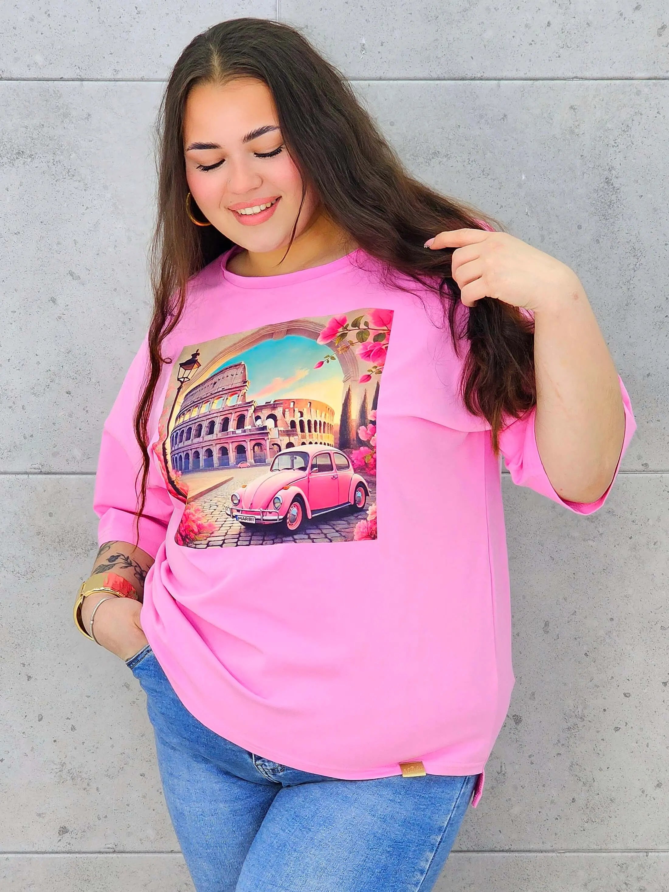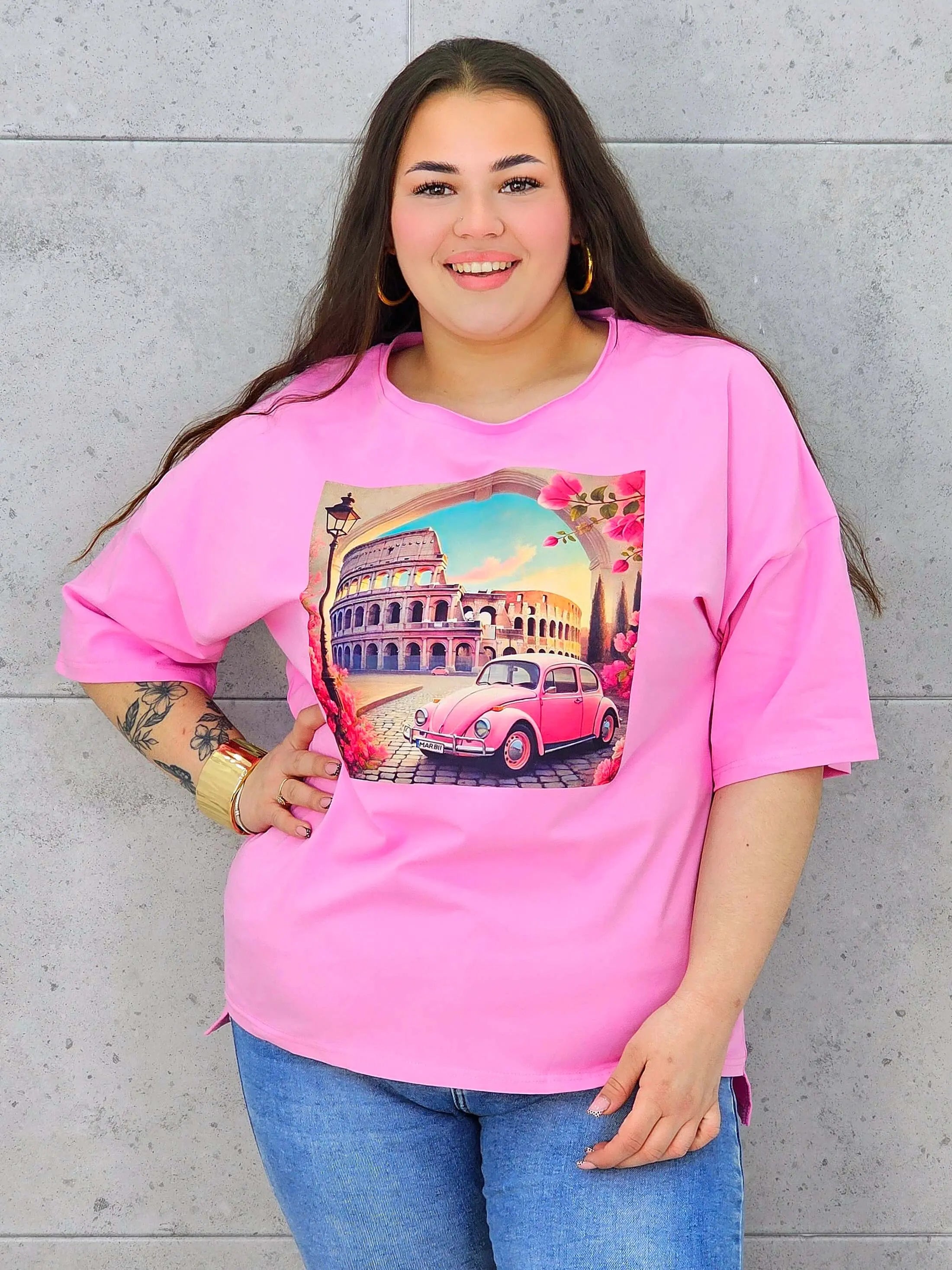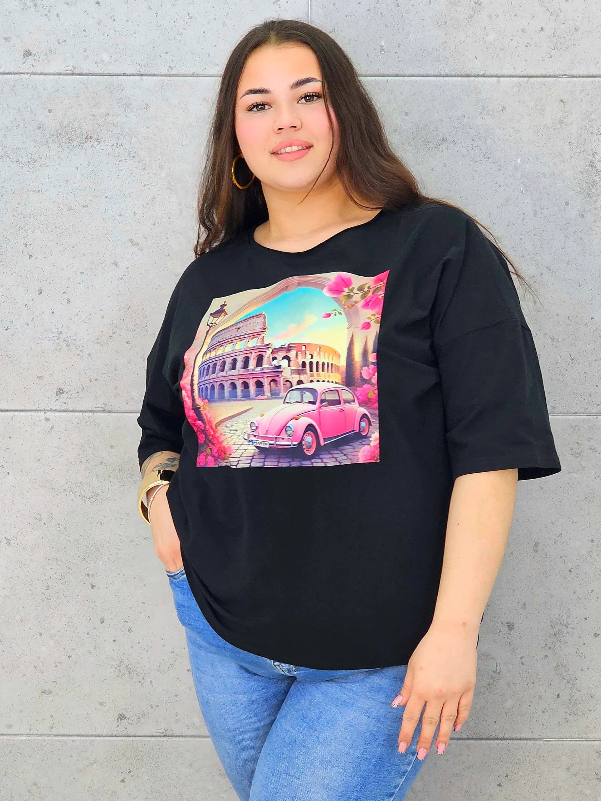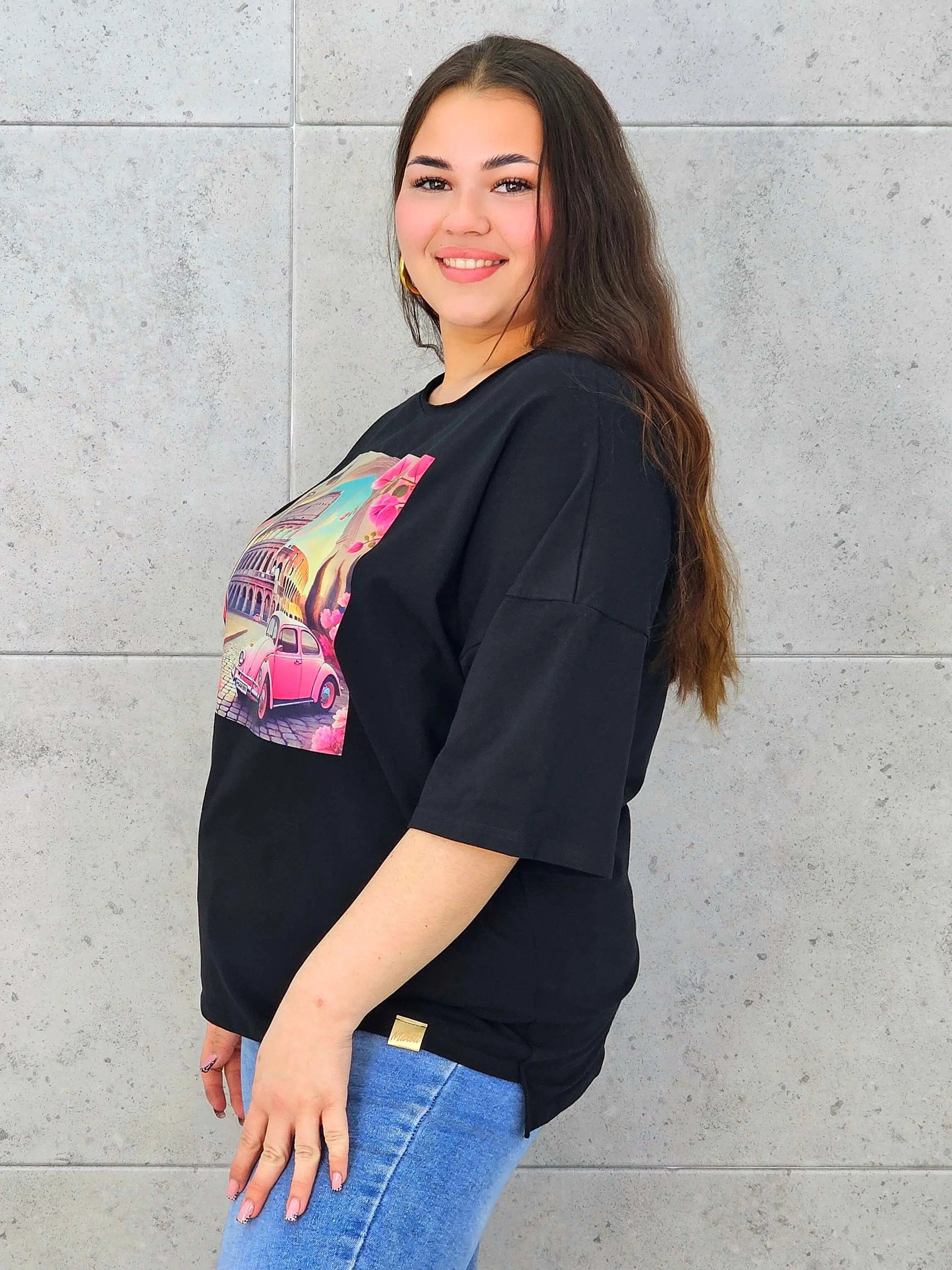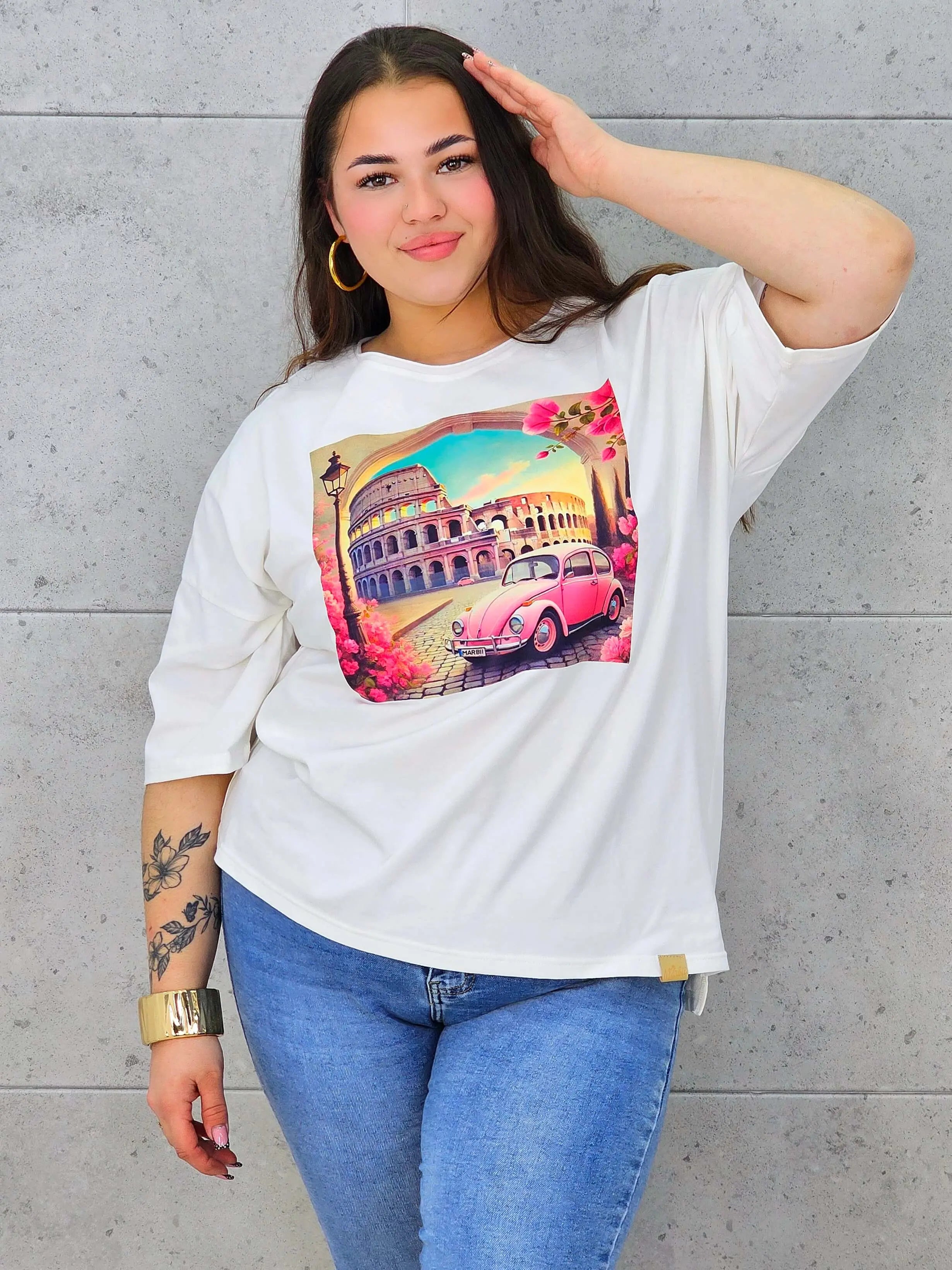 Bluzka plus size z nadrukiem Rzym i kultowym garbusem – stylowy T-shirt XXL