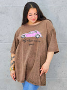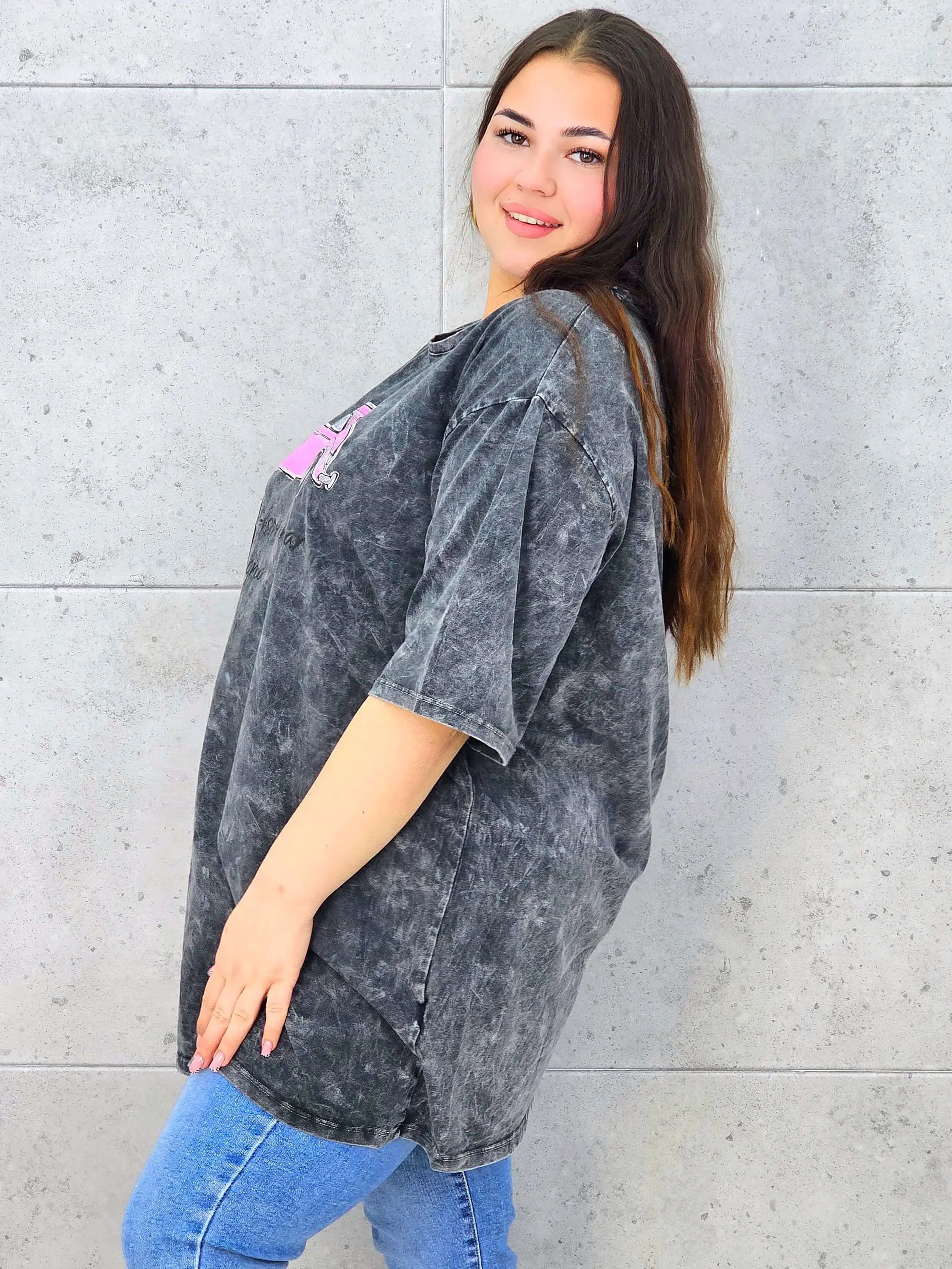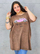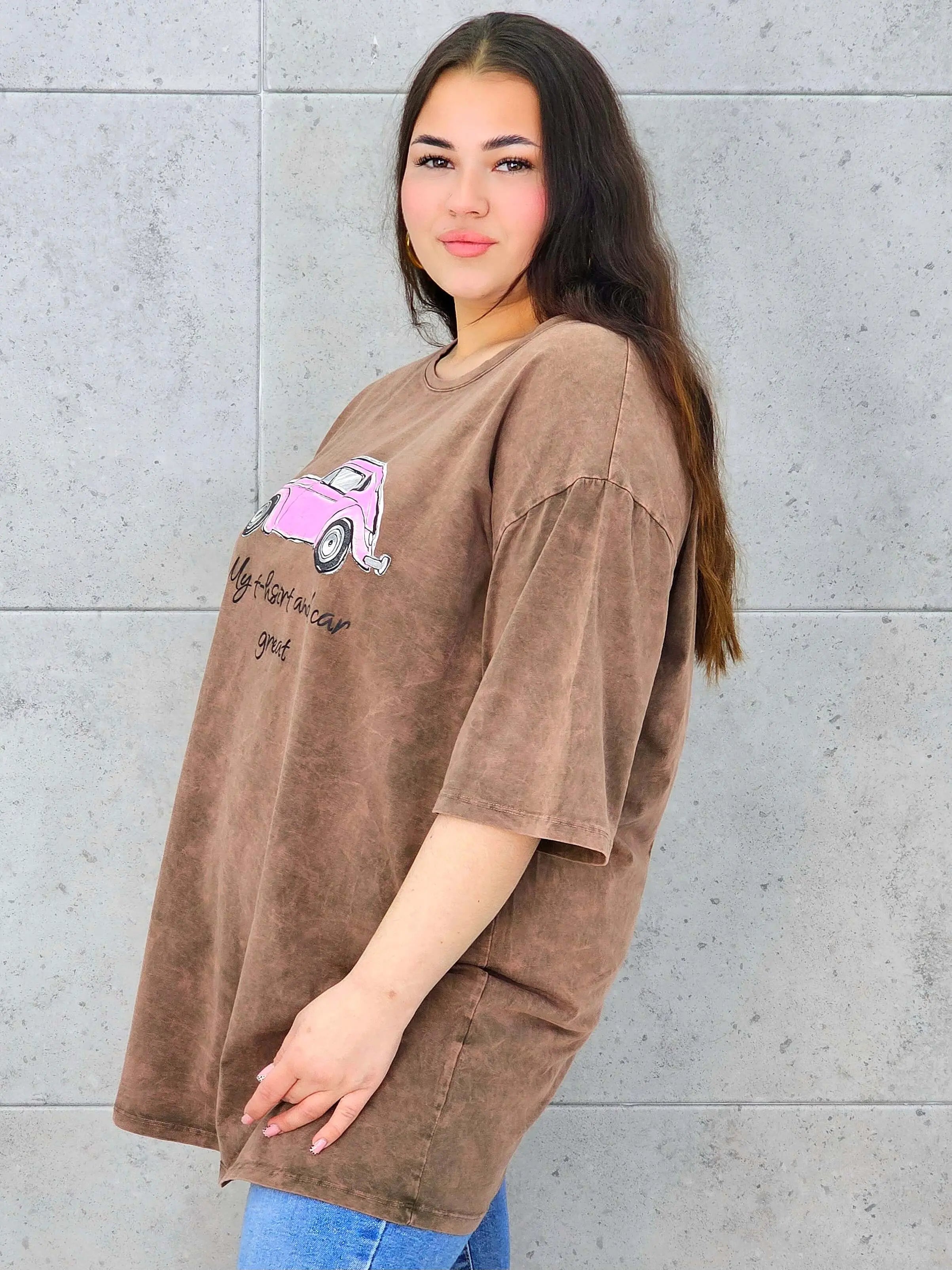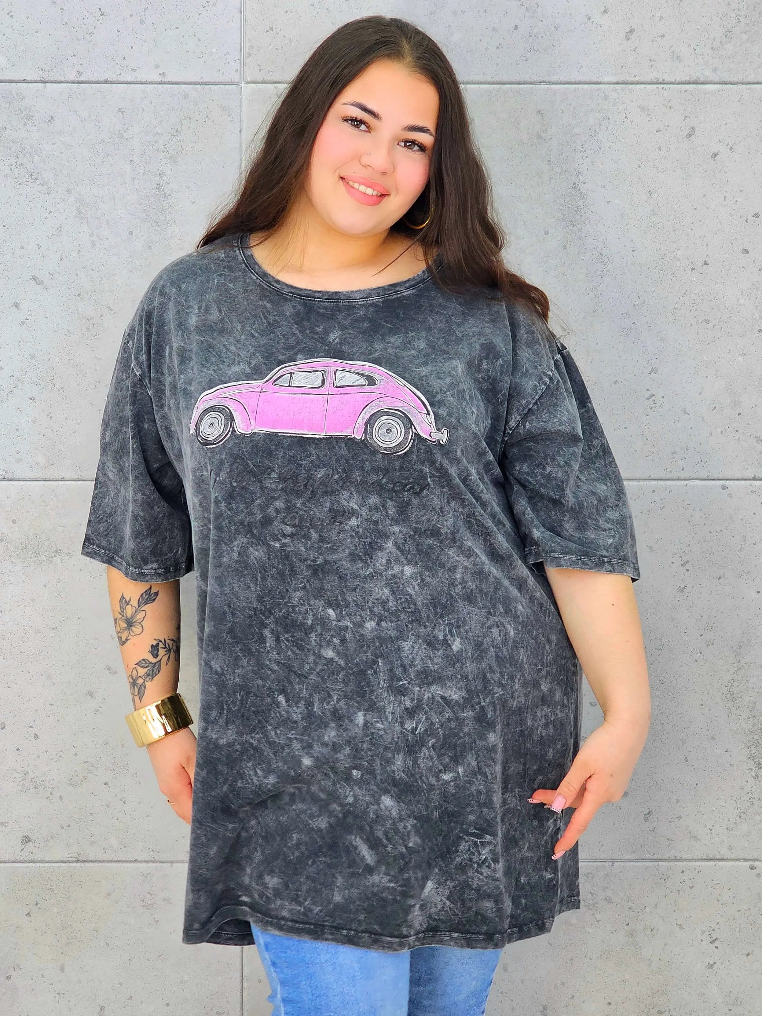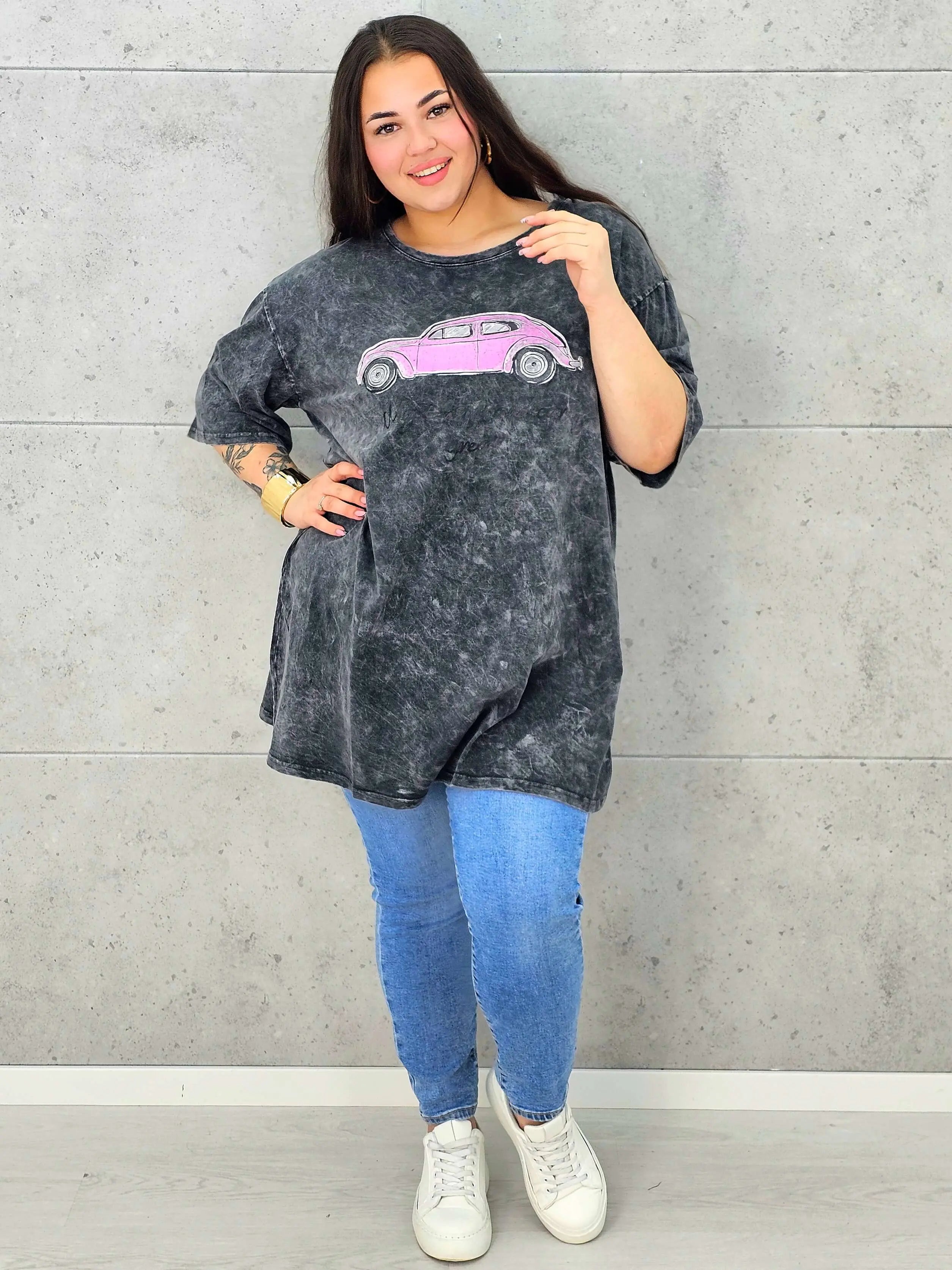 Bluzka plus size to propozycja dla kobiet, które kochają modę z charakterem i chcą czuć się swobodnie na co dzień. Luźny, oversize’owy fason zapewnia pełen komfort, a miękki materiał pięknie układa się na sylwetce, podkreślając lekkość stylizacji. Centralny nadruk z autem dodaje całości unikalnego, młodzieżowego akcentu — idealny dla kobiet, które lubią oryginalne detale.