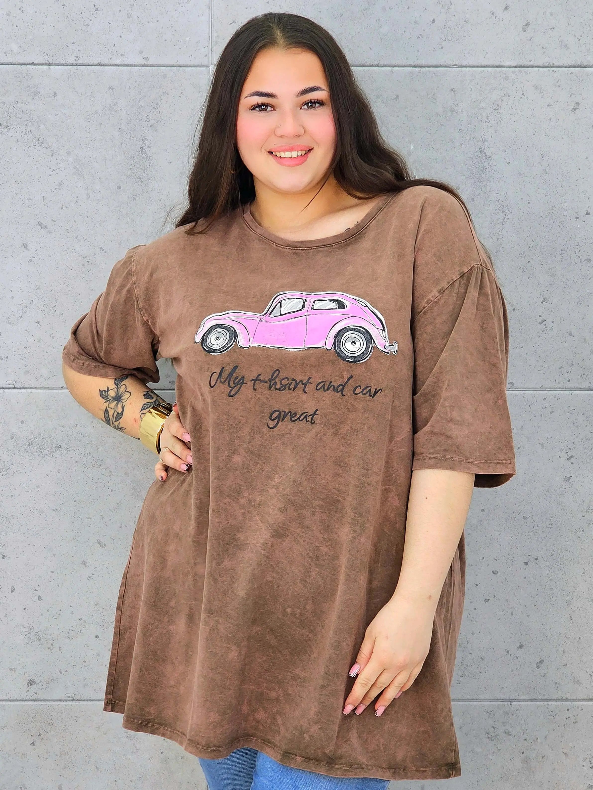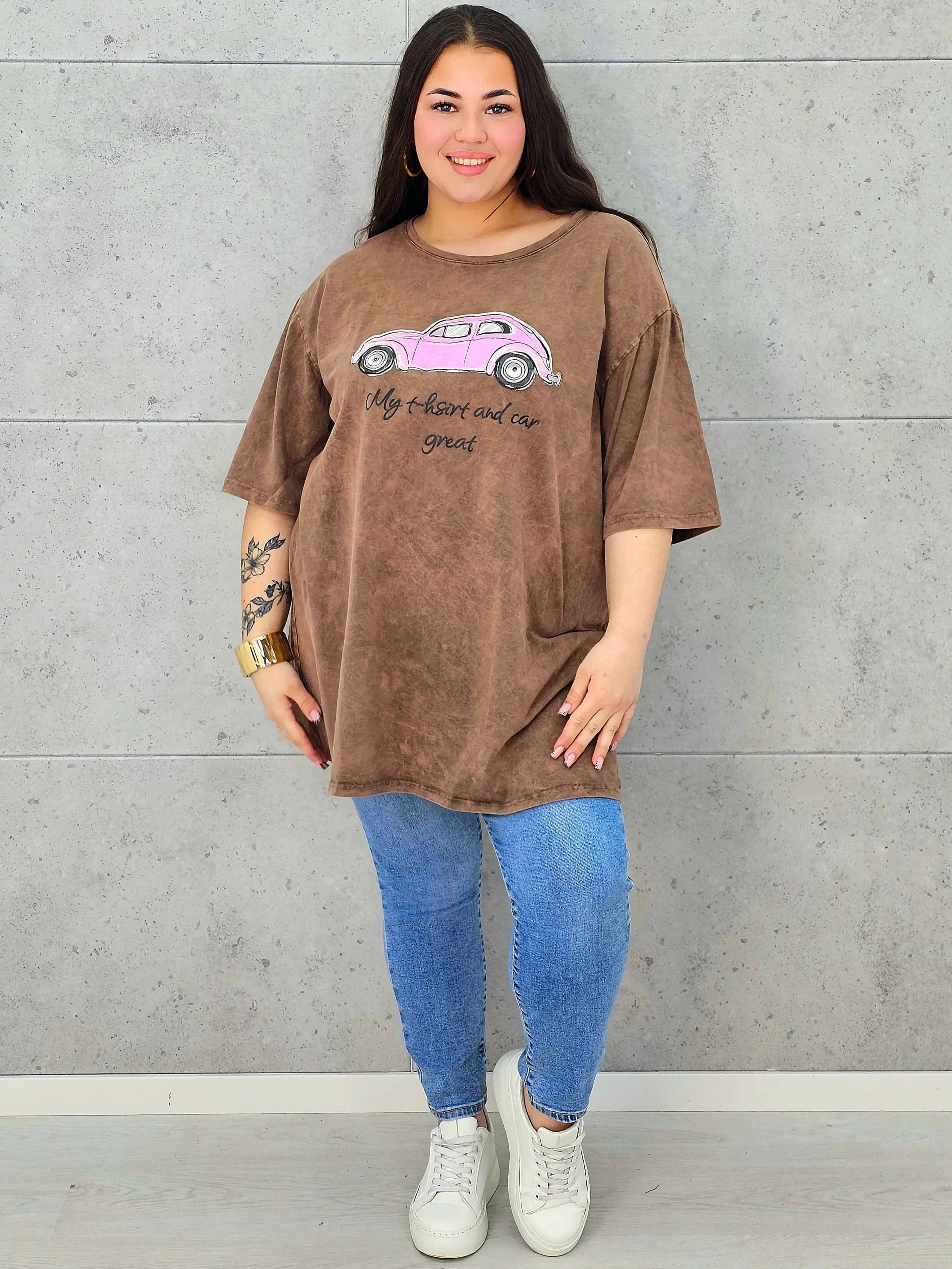 Bluzka plus size z motywem auta – wygoda i styl w jednym
