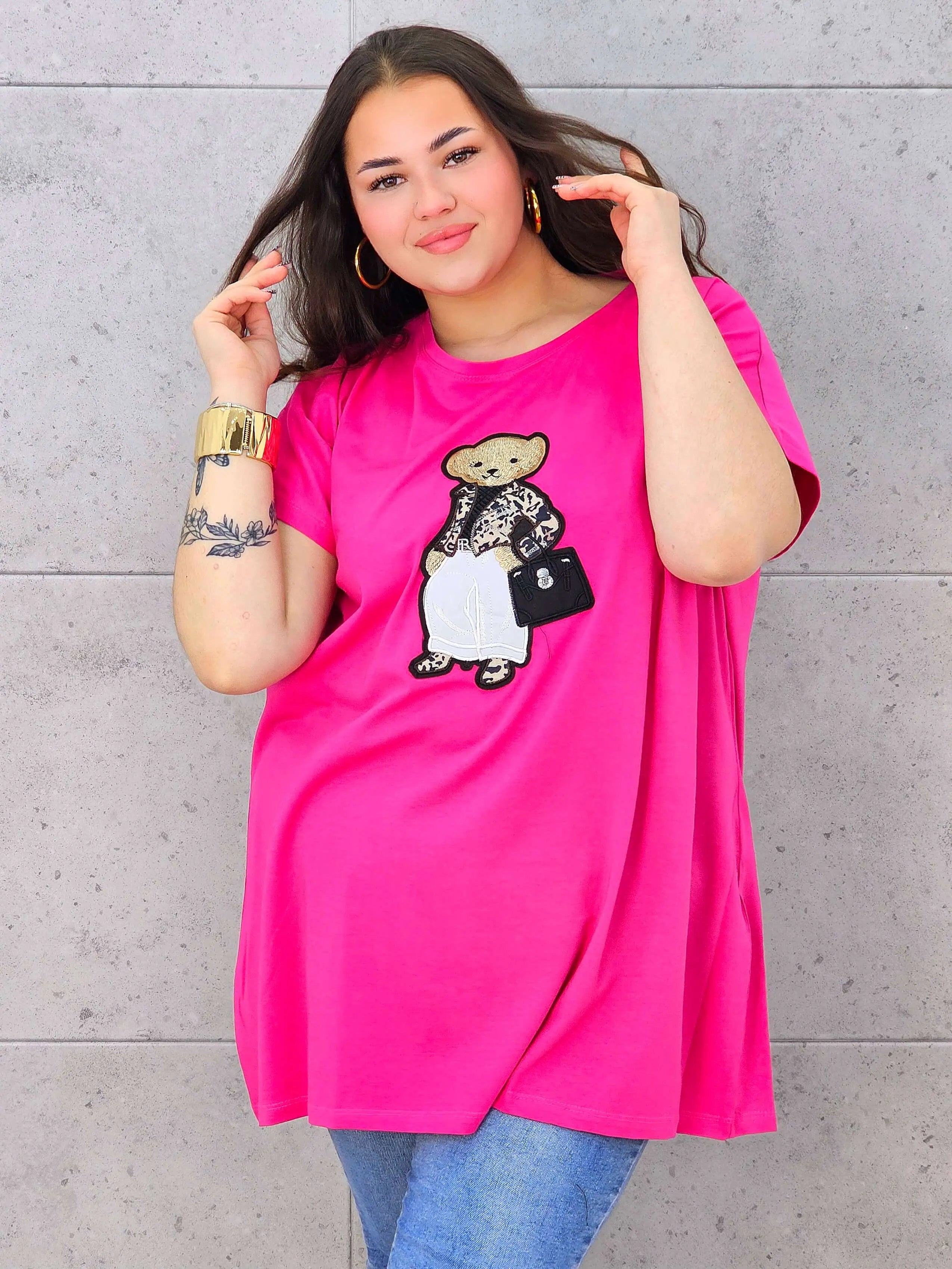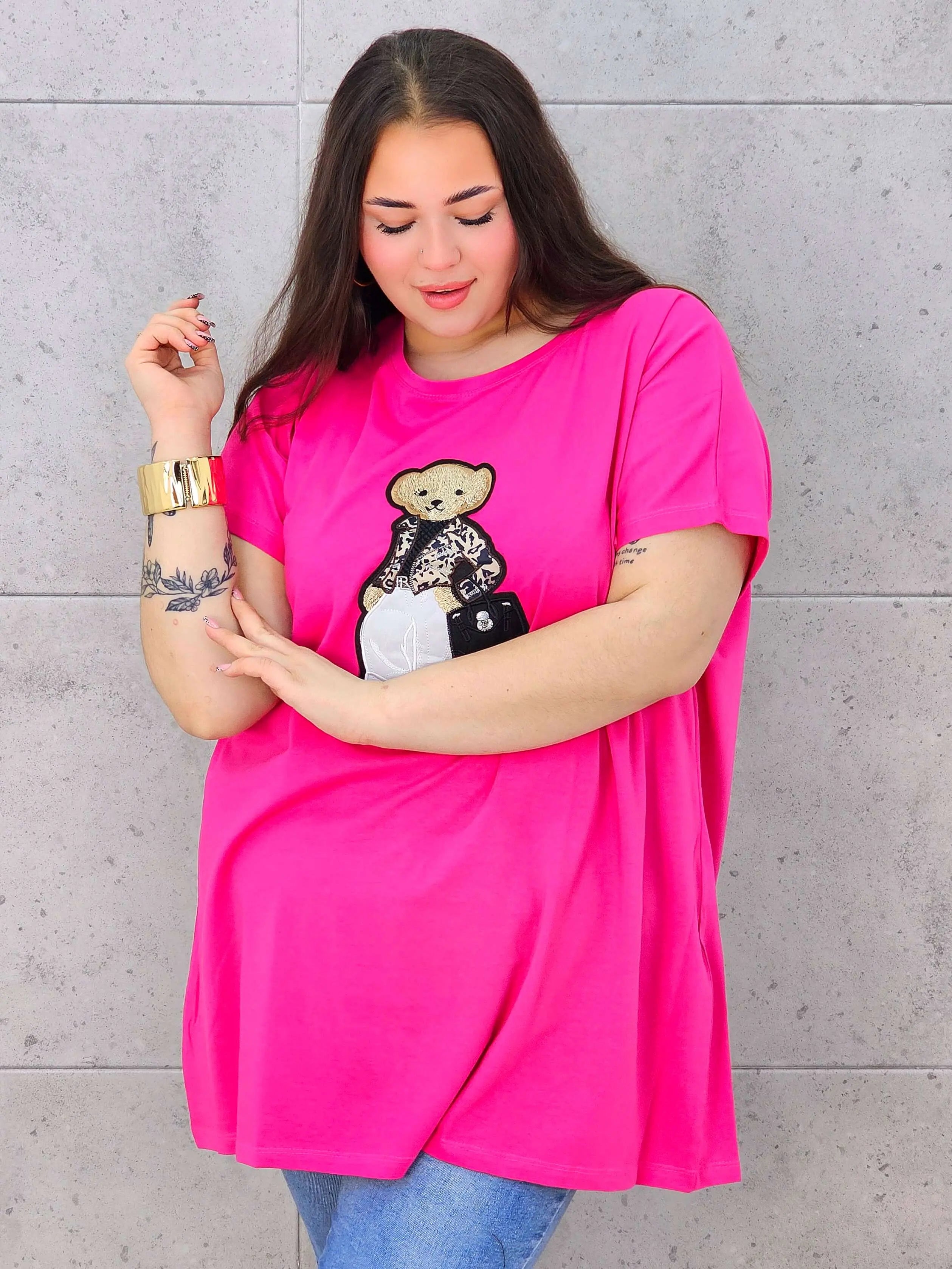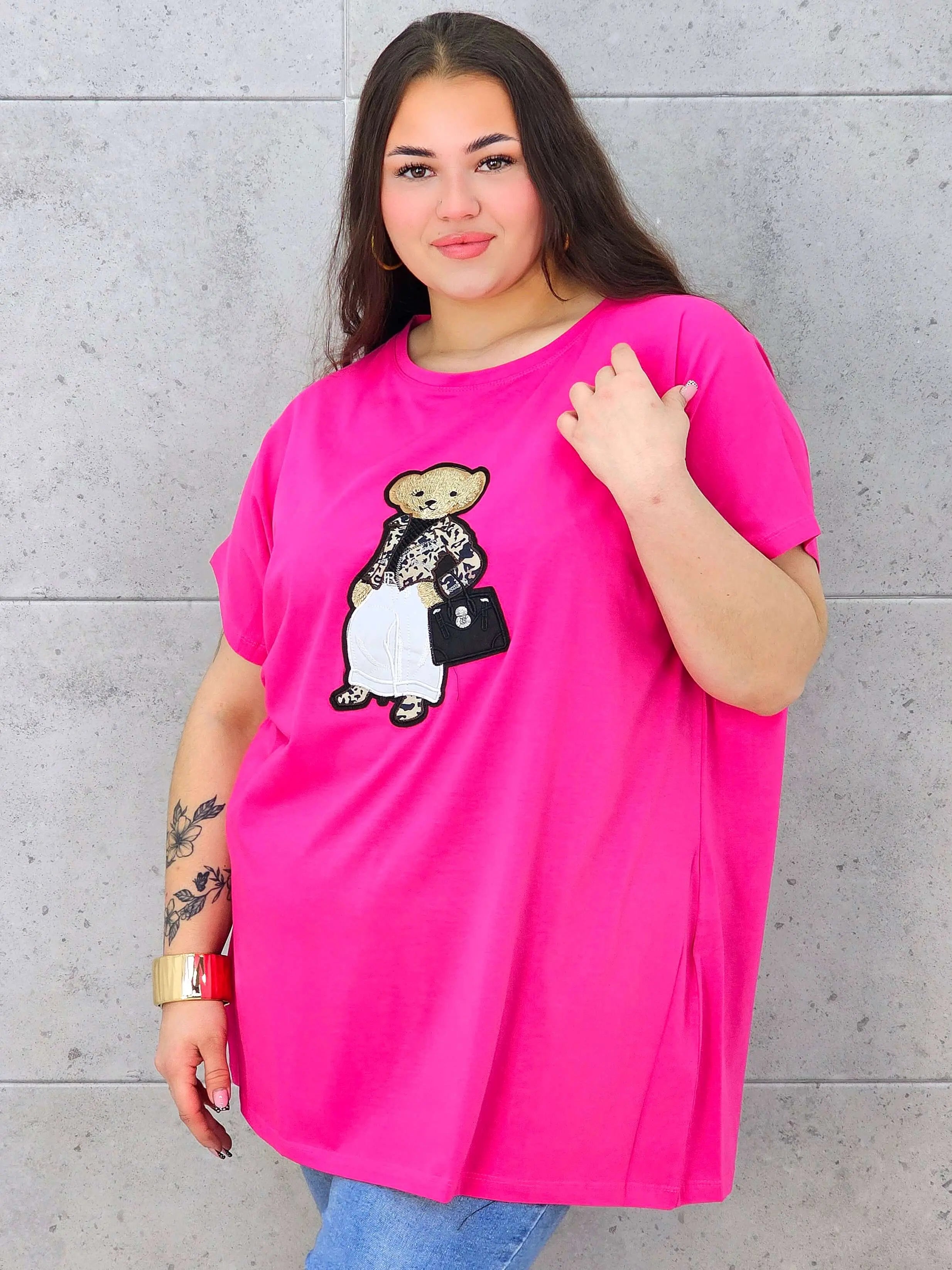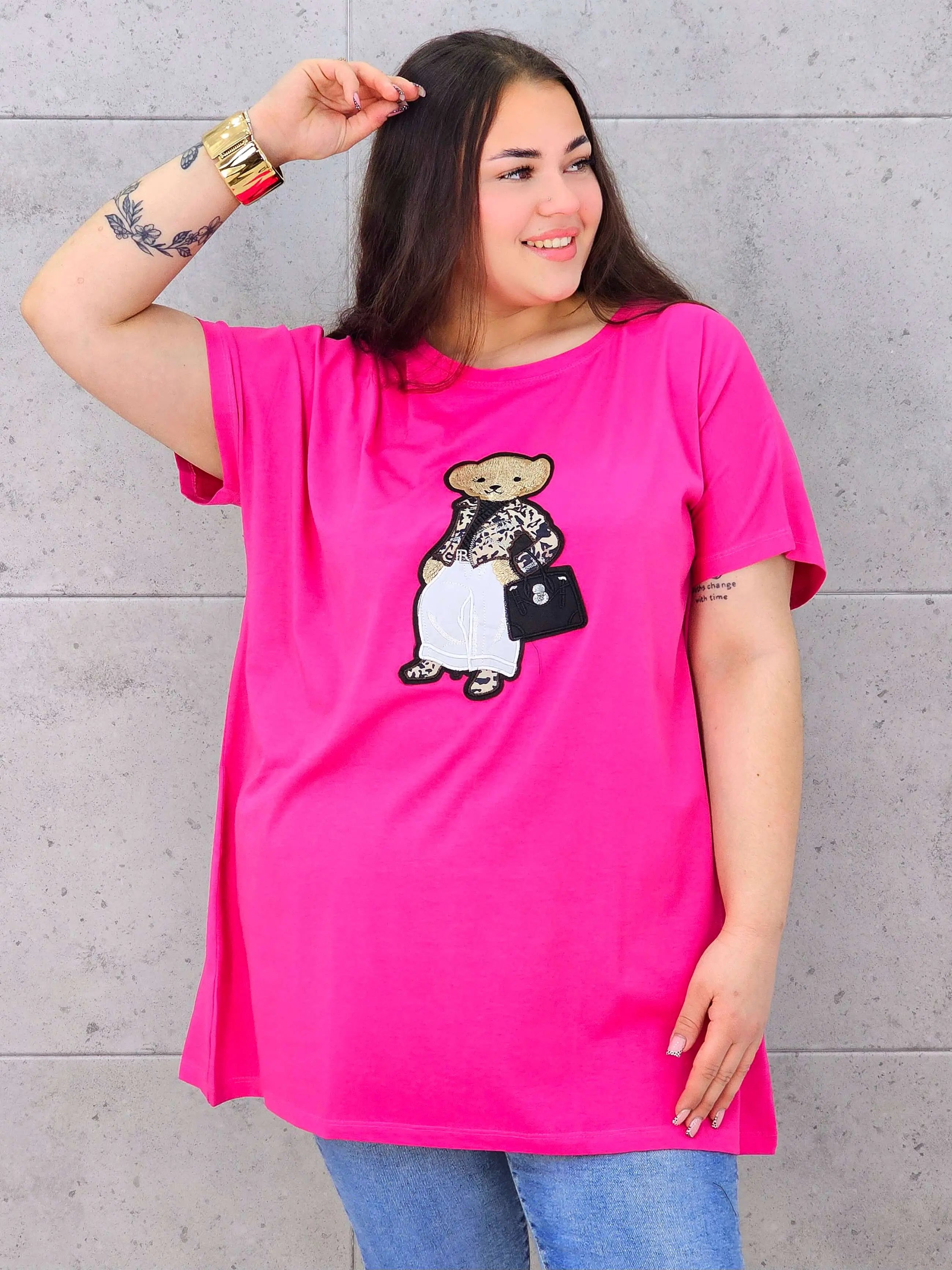 Bluzka plus size – stylowy model z ozdobnym misiem