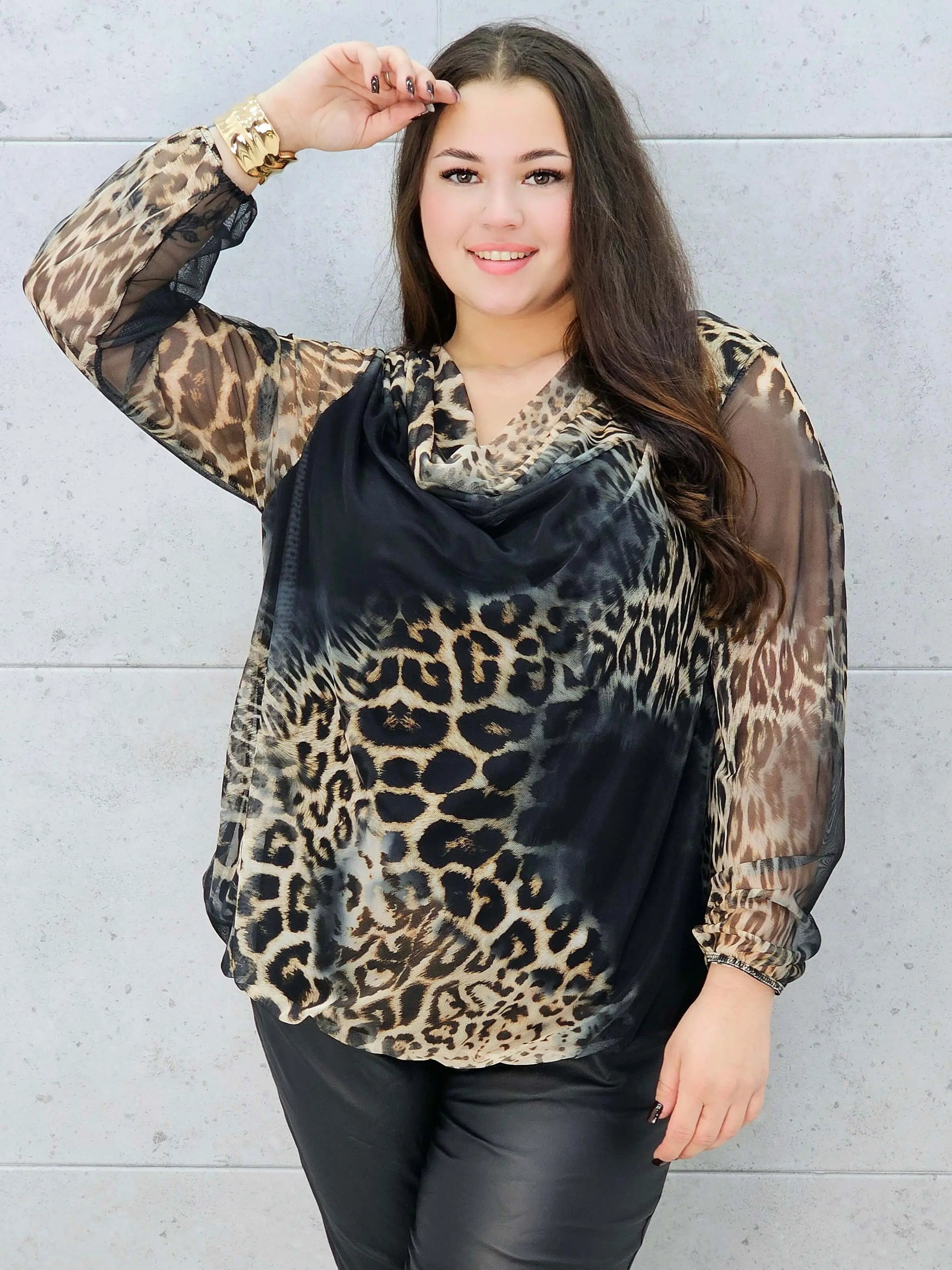 Nasza bluzka w panterkę z lejącym dekoltem XXL to połączenie elegancji i odrobiny drapieżnego charakteru.