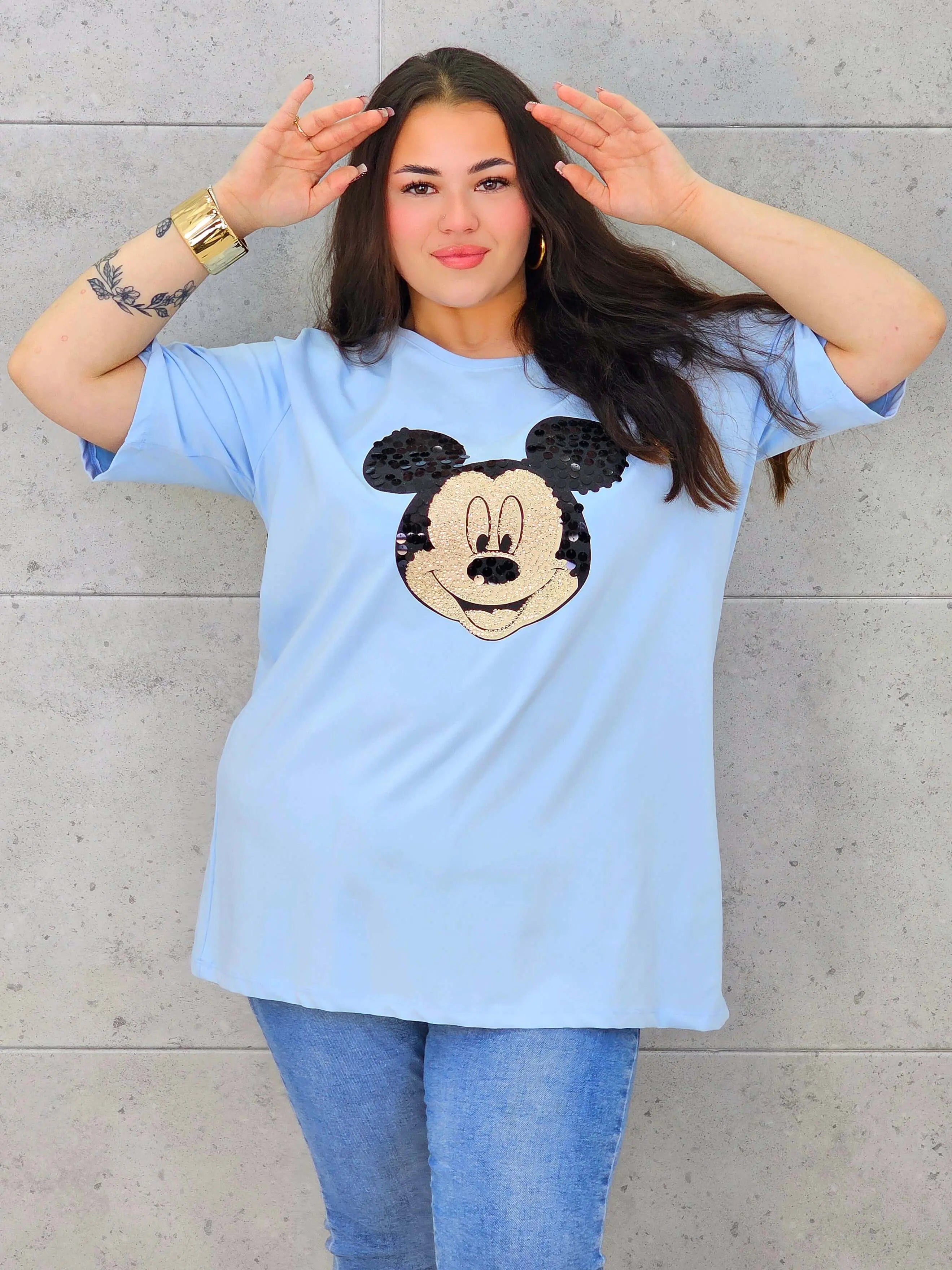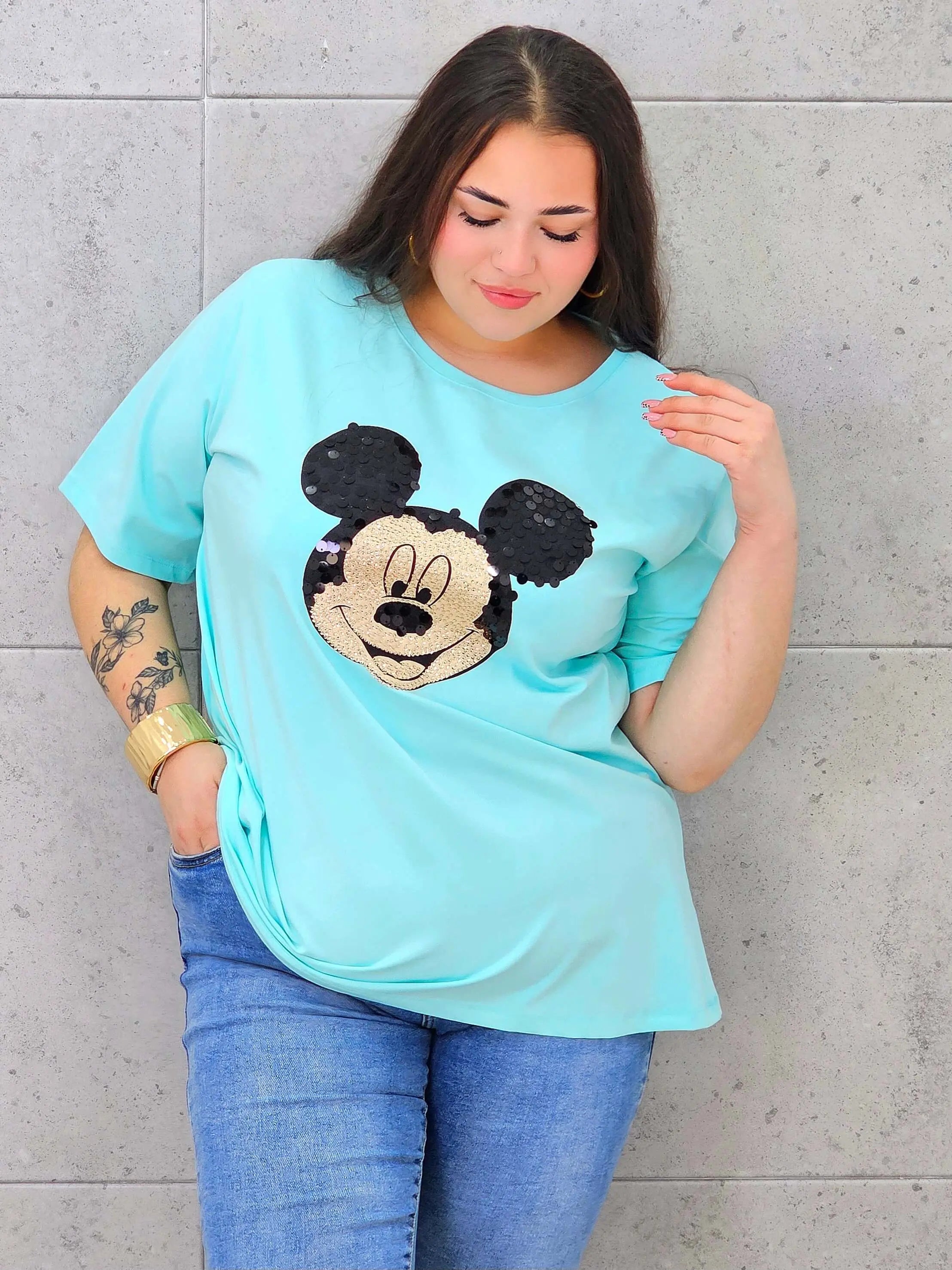 Bluzka z cekinowym nadrukiem myszki - kilka kolorów