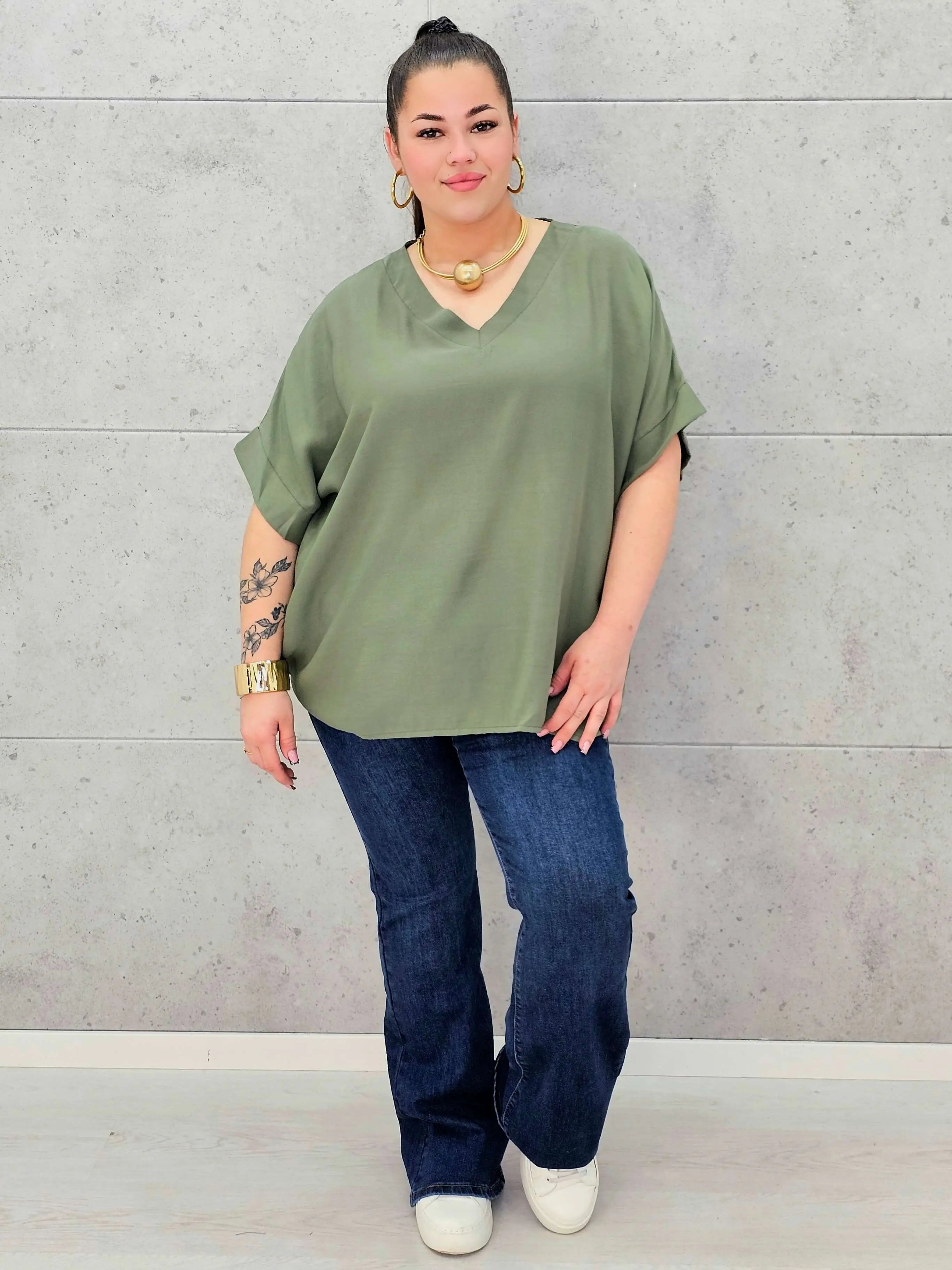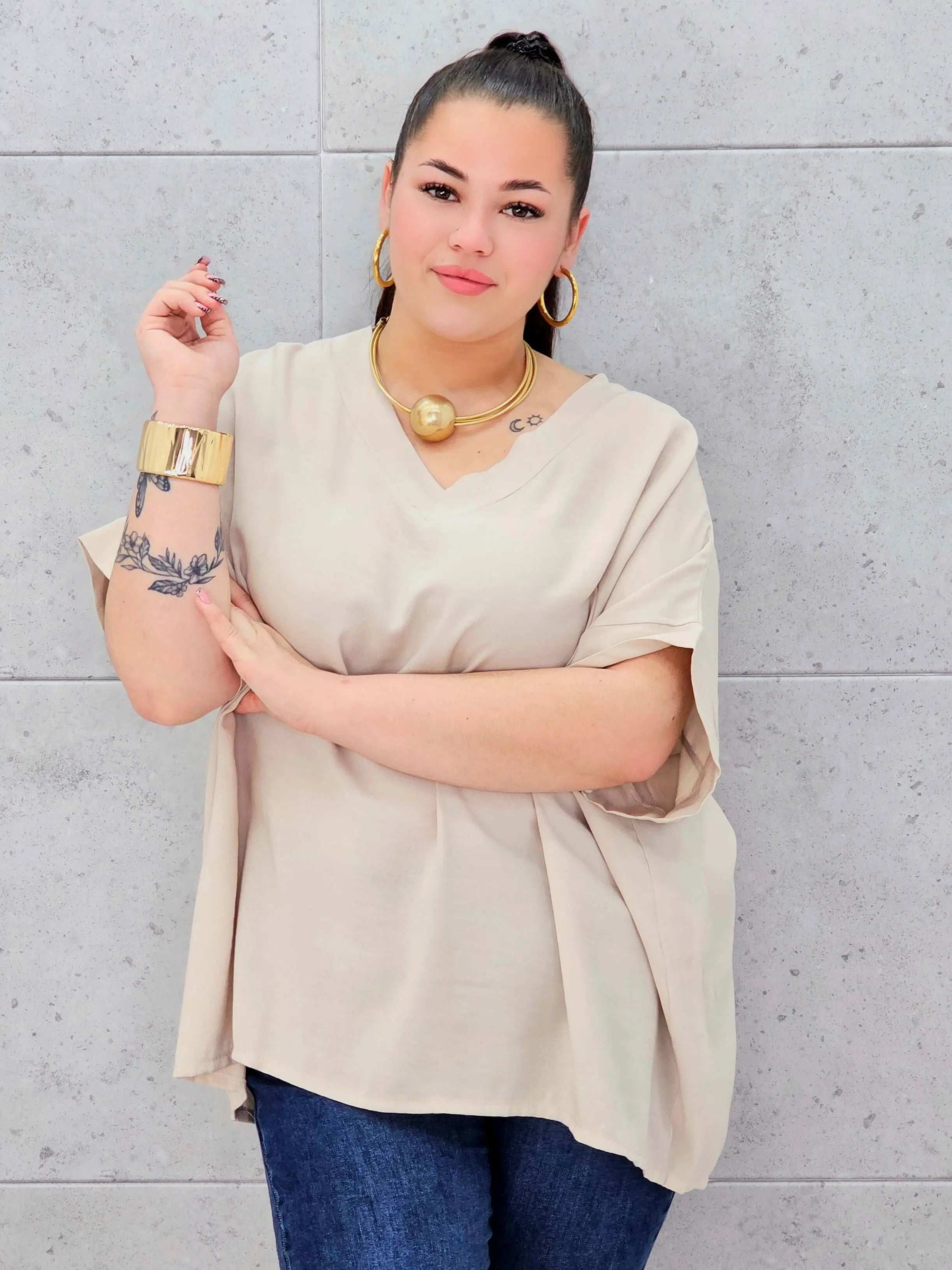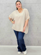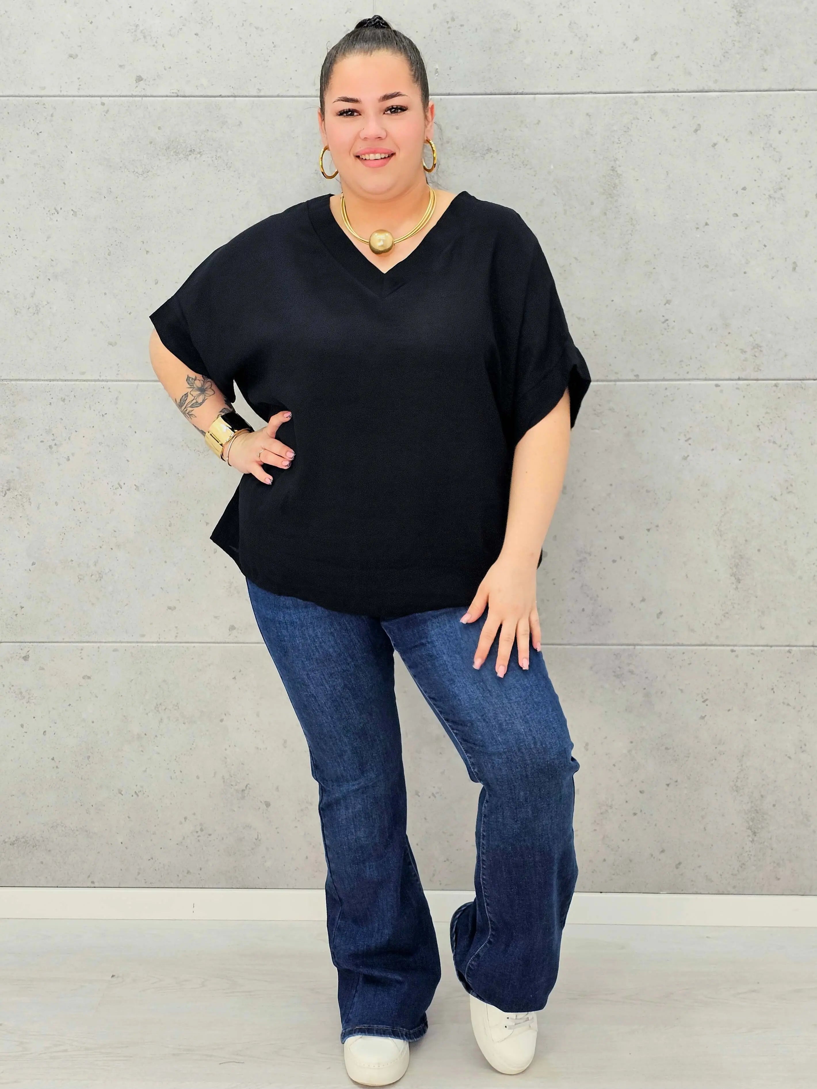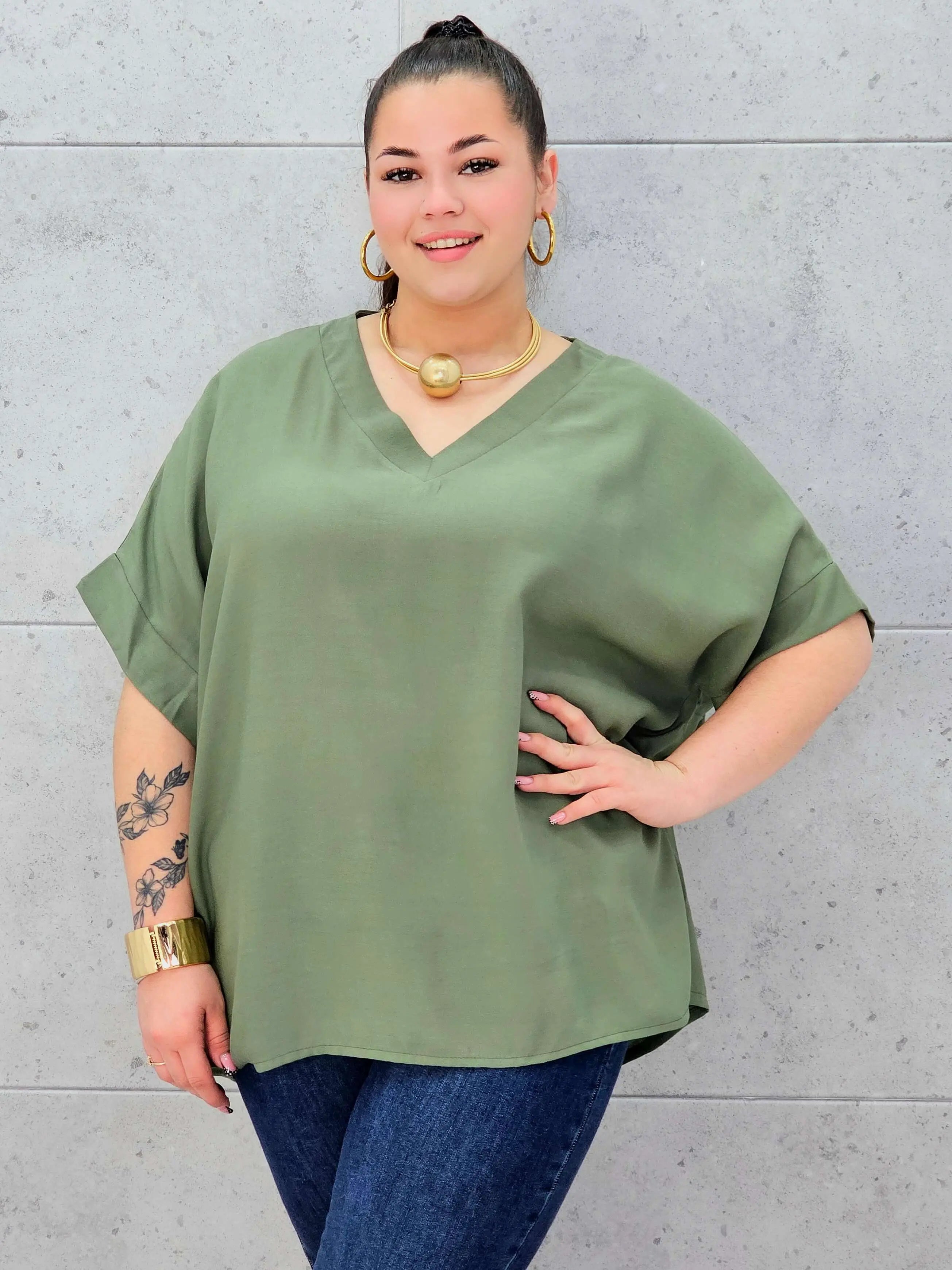 To bluzka, która mimo prostoty robi ogromne wrażenie. Subtelna, wygodna i ponadczasowa — pozwala czuć się swobodnie, świeżo i kobieco każdego dnia, wpisując się w współczesną, minimalistyczną odzież plus size.