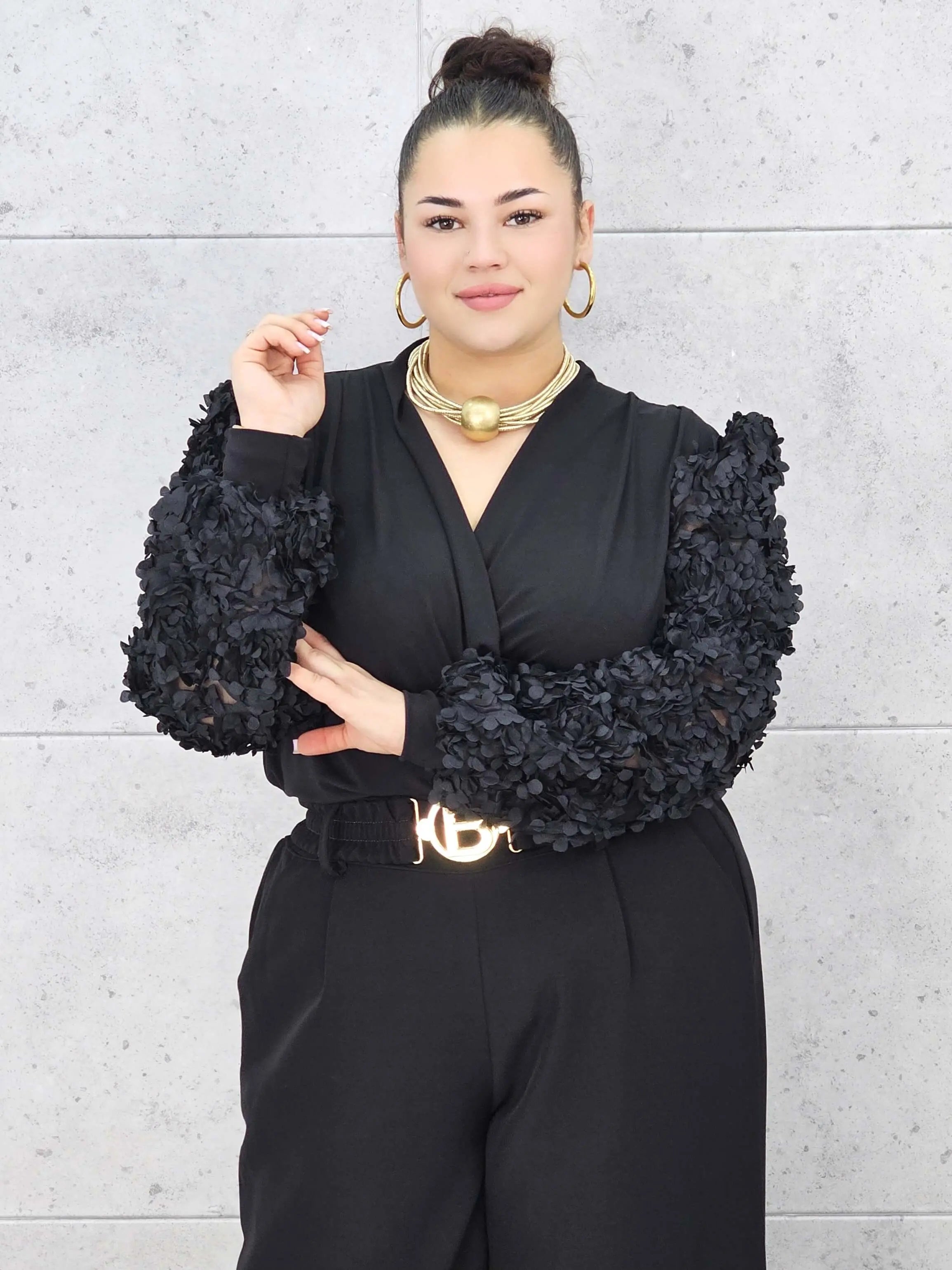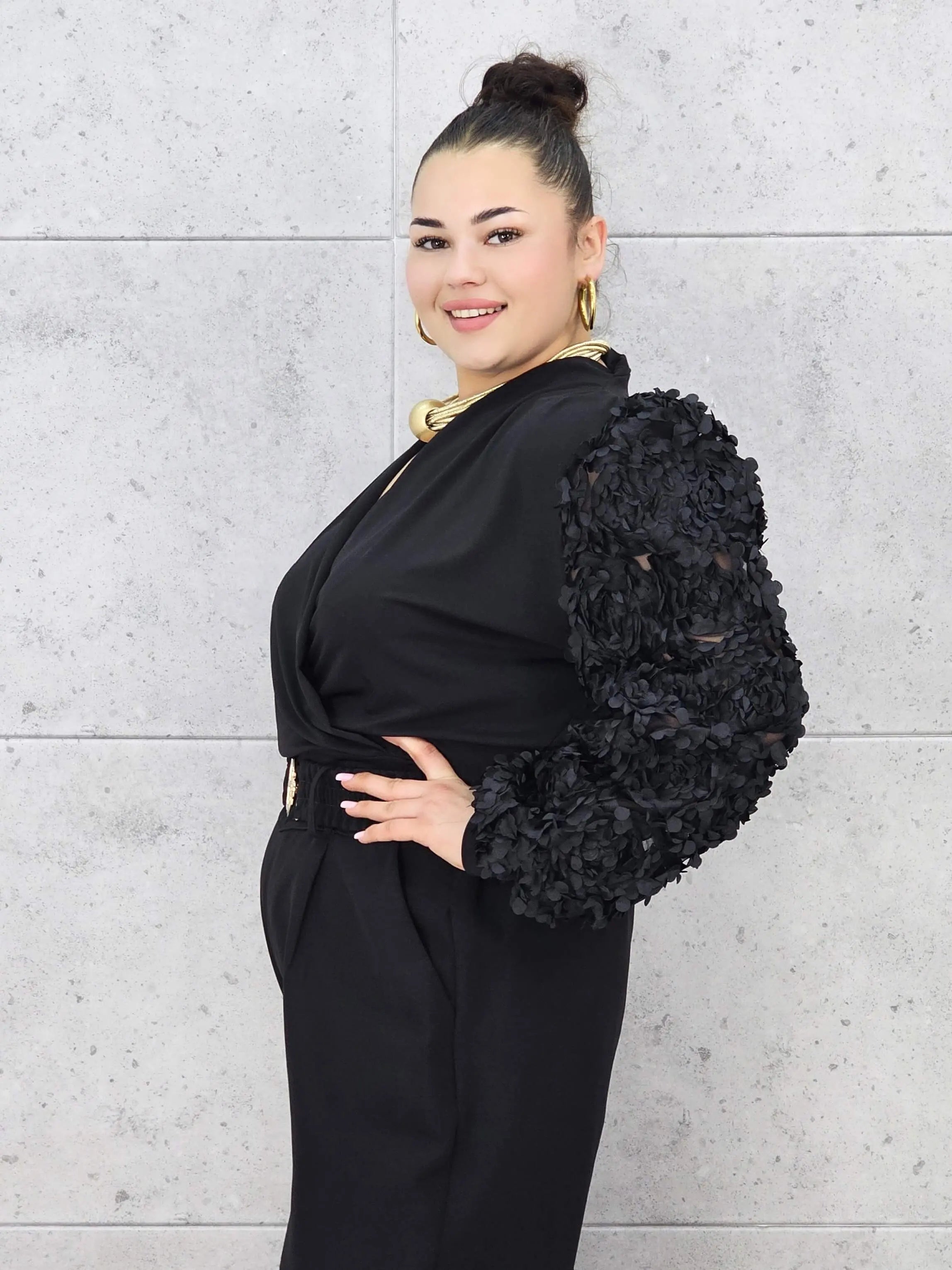 Body plus size z efektem 3D na rękawach – elegancja i wyrazisty detal