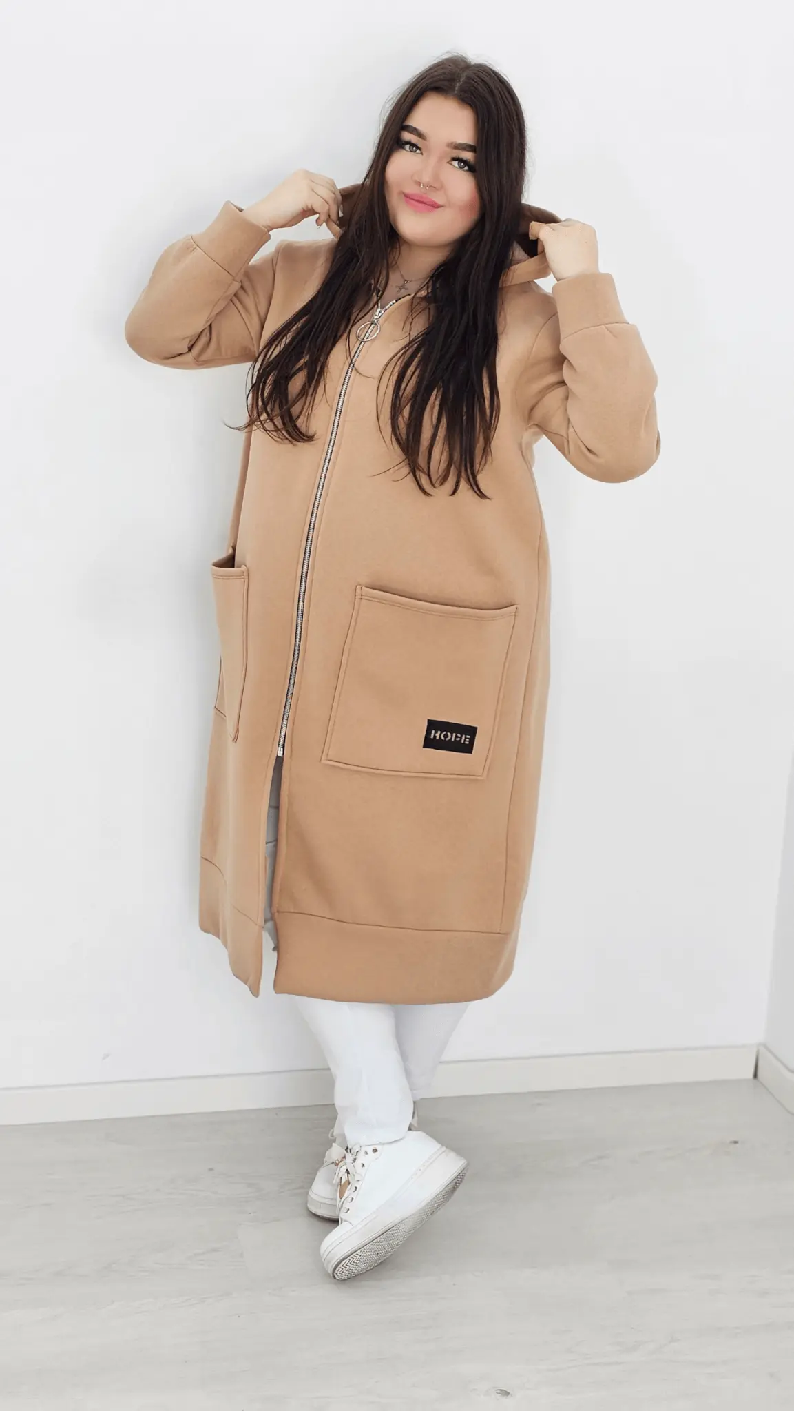 Długa bluza z kapturem – komfort i styl na co dzień - jasny brąz