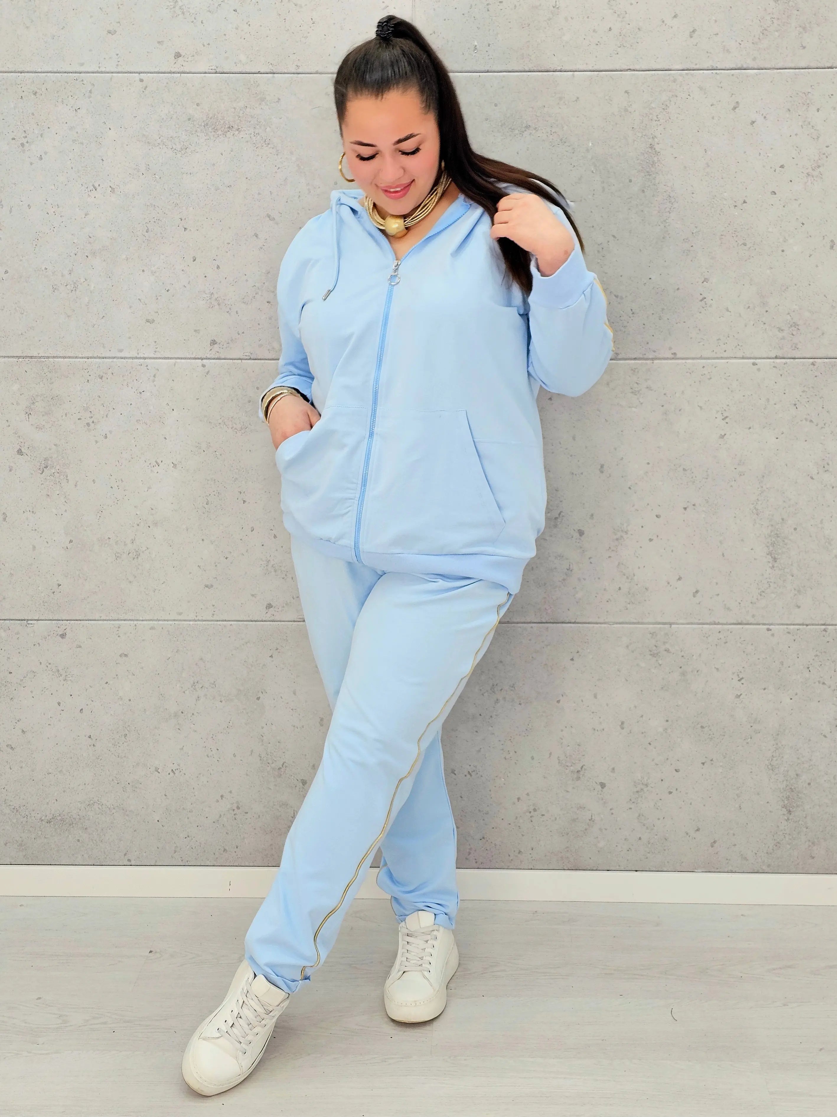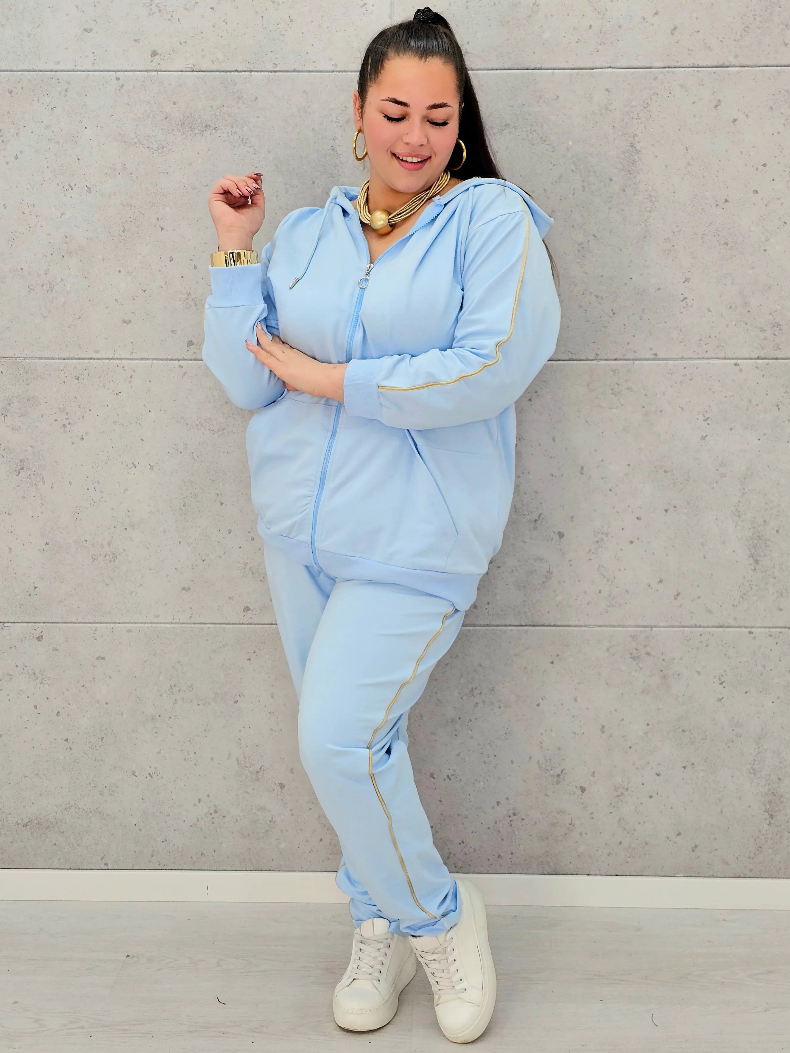 Dres plus size to idealna propozycja dla kobiet, które cenią swobodę, komfort i nowoczesny styl w modzie XXL. Wykonany z miękkiego, elastycznego materiału, świetnie układa się na sylwetce i sprawia, że całość jest niezwykle wygodna zarówno na co dzień, jak i podczas aktywności. To klasyczny komplet — bluza z kapturem na zamek oraz spodnie z elastyczną talią — który sprawdza się w każdej sytuacji.