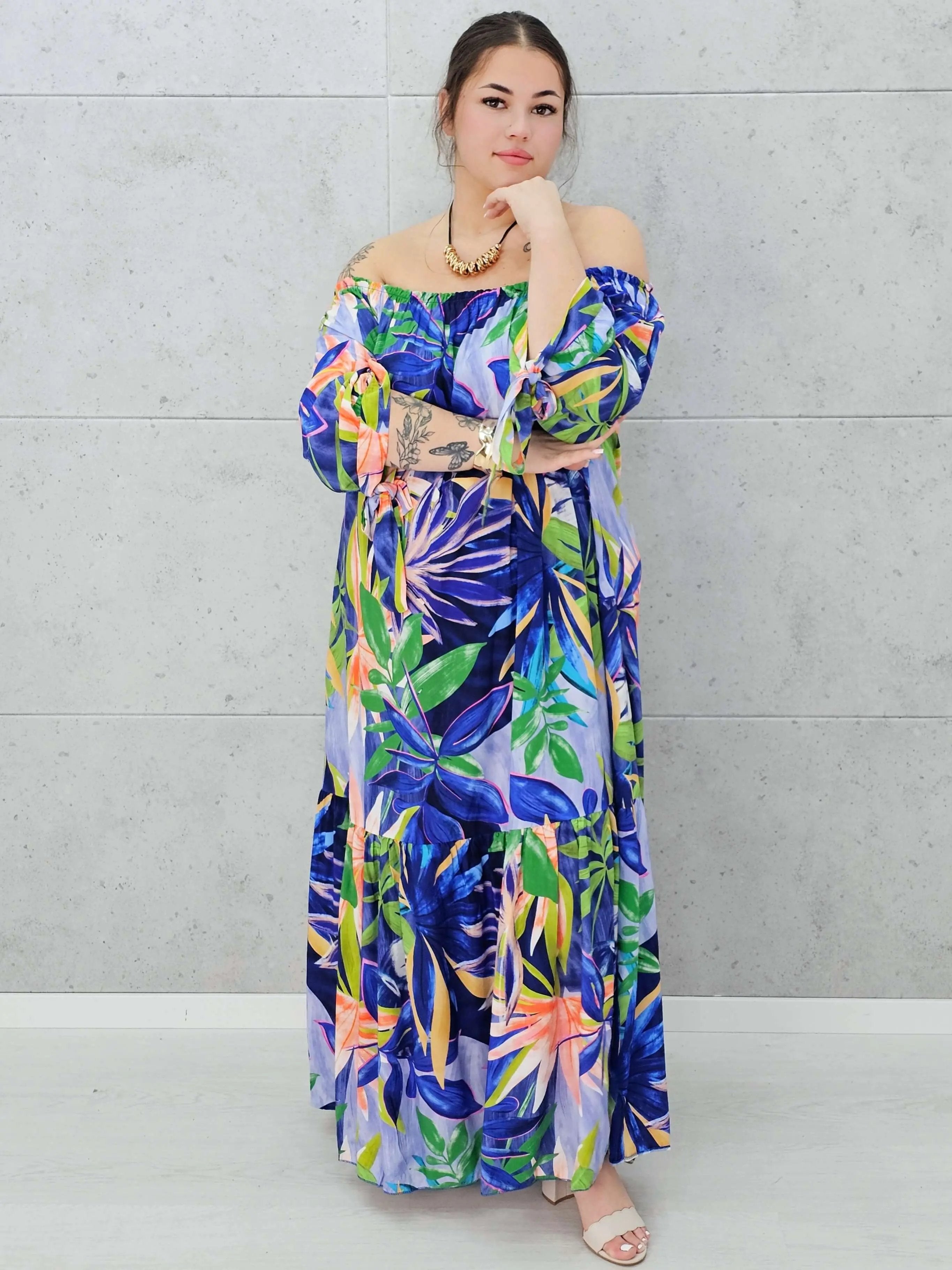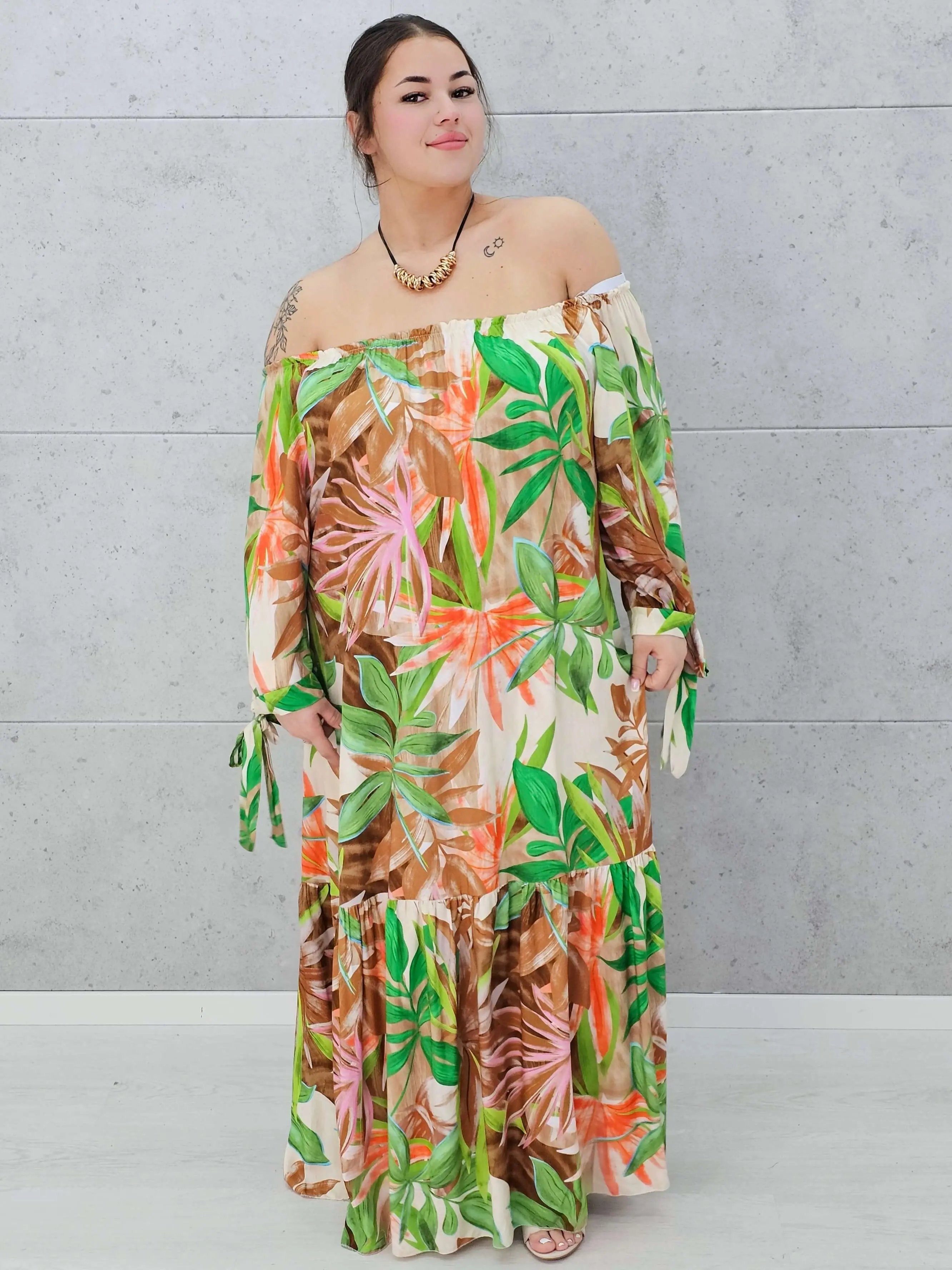 Egzotyczna Sukienka Maxi- Liście Zielone