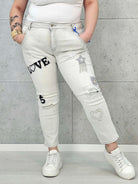Jeansy plus size – stylowy fason slim fit z wyrazistym nadrukiem