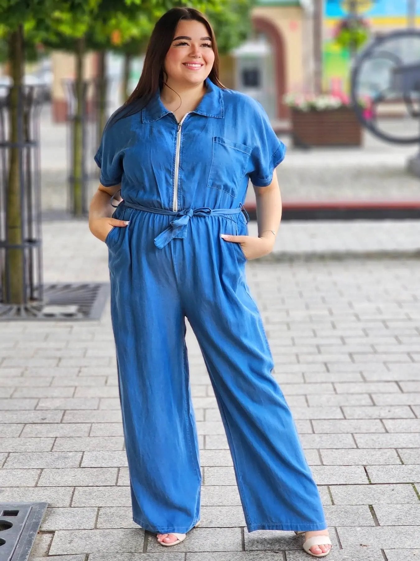 Niebieski kombinezon plus size z lyocellu – modny wybór dla kobiet XXL
