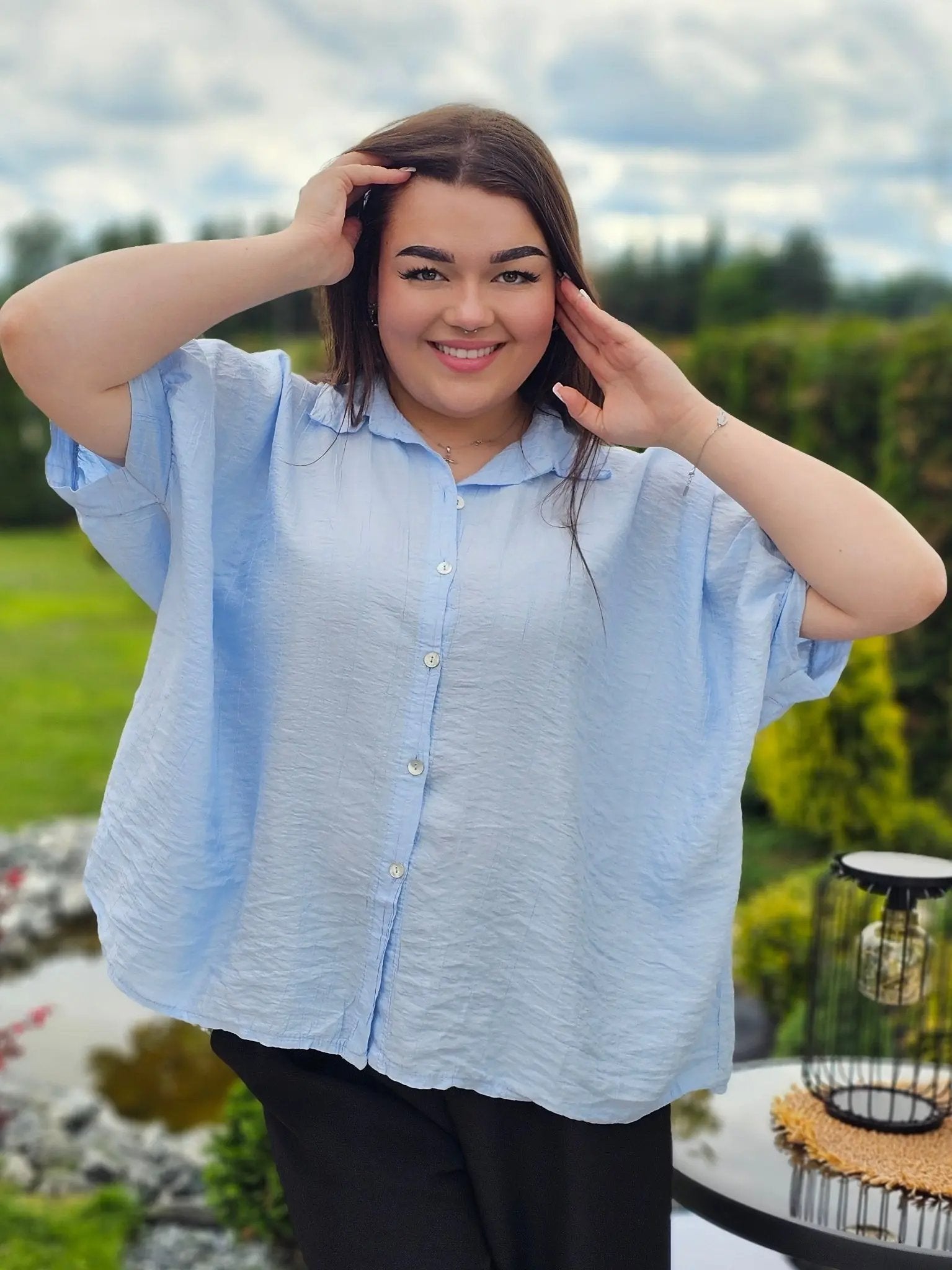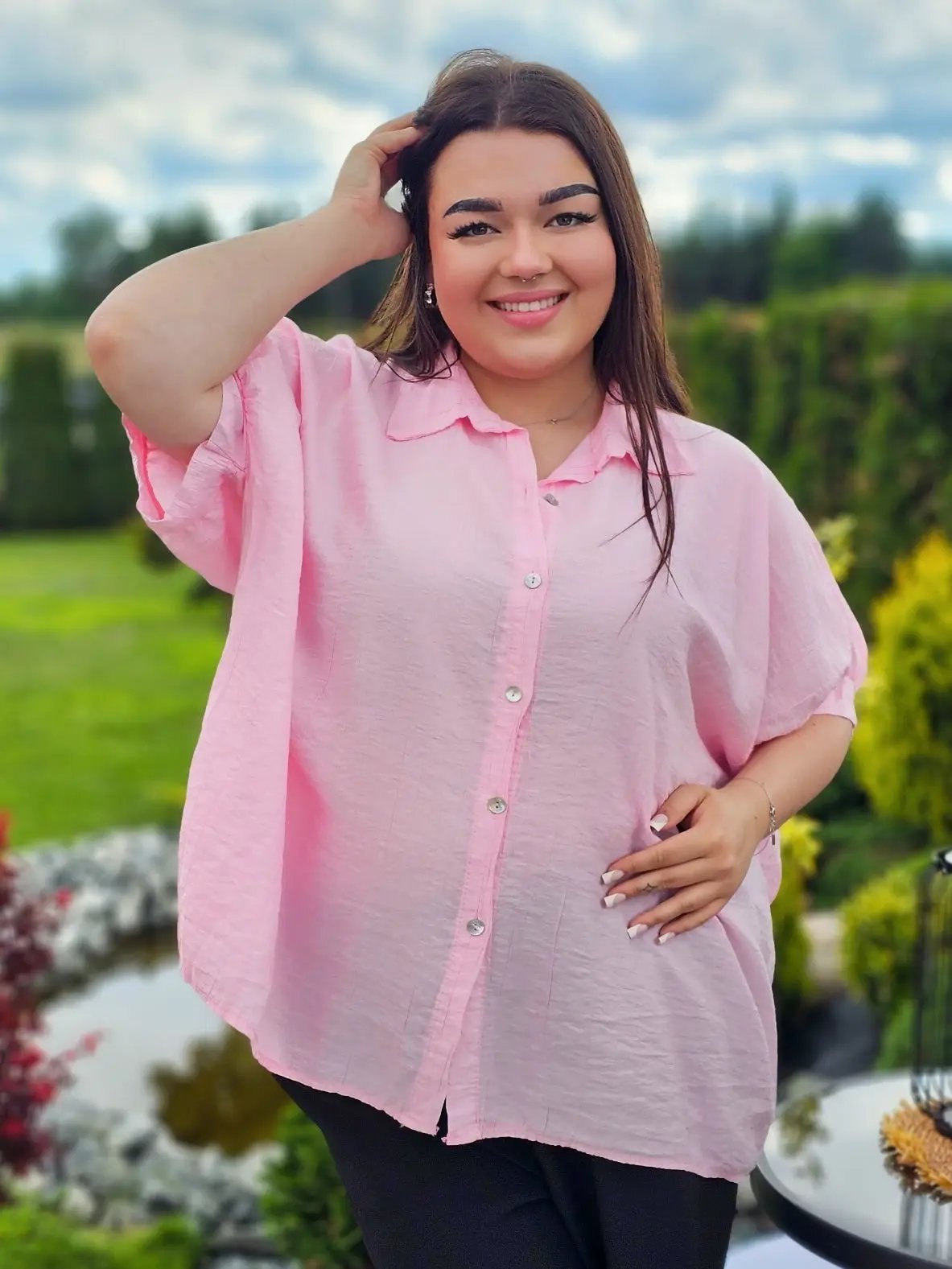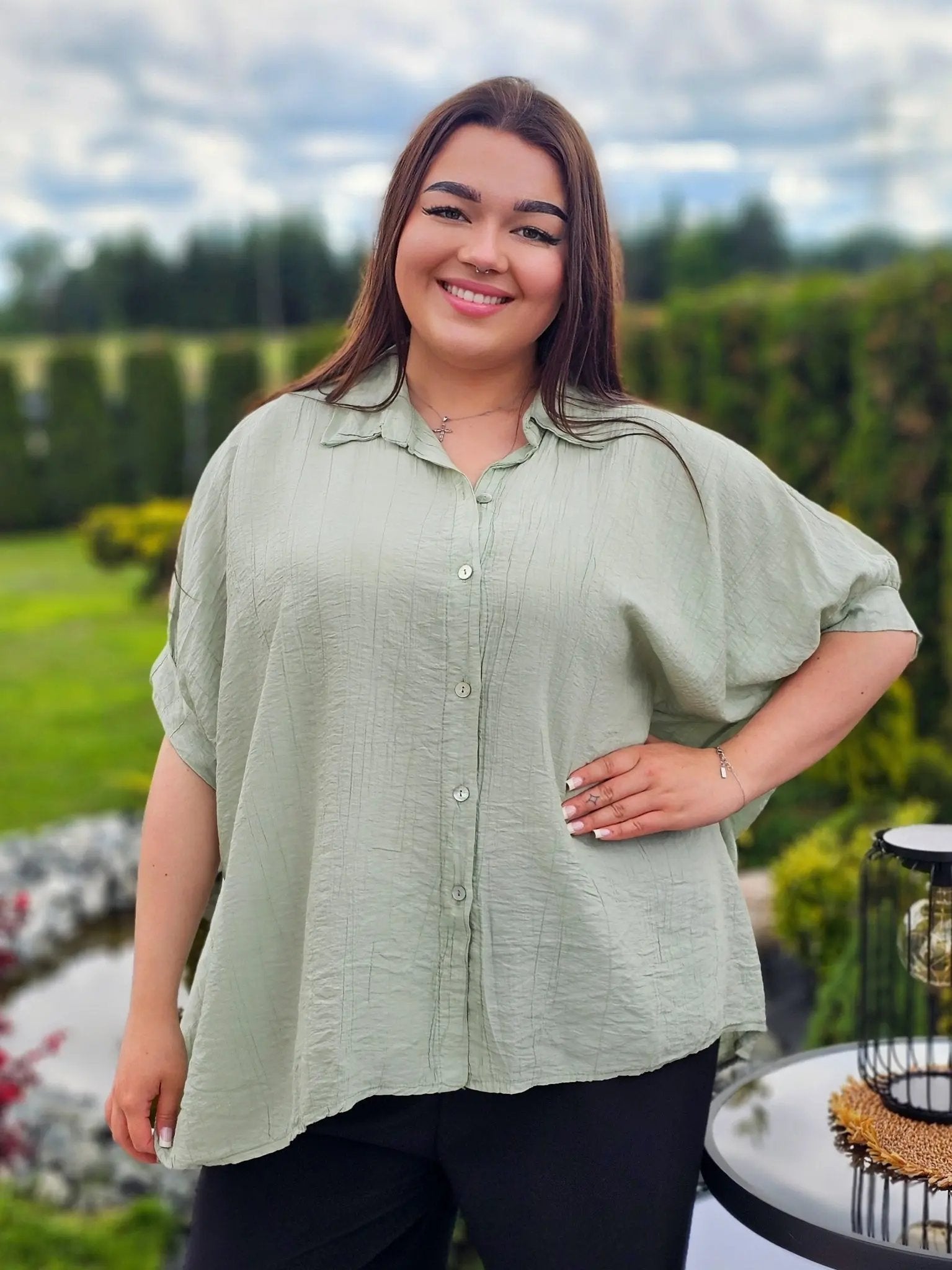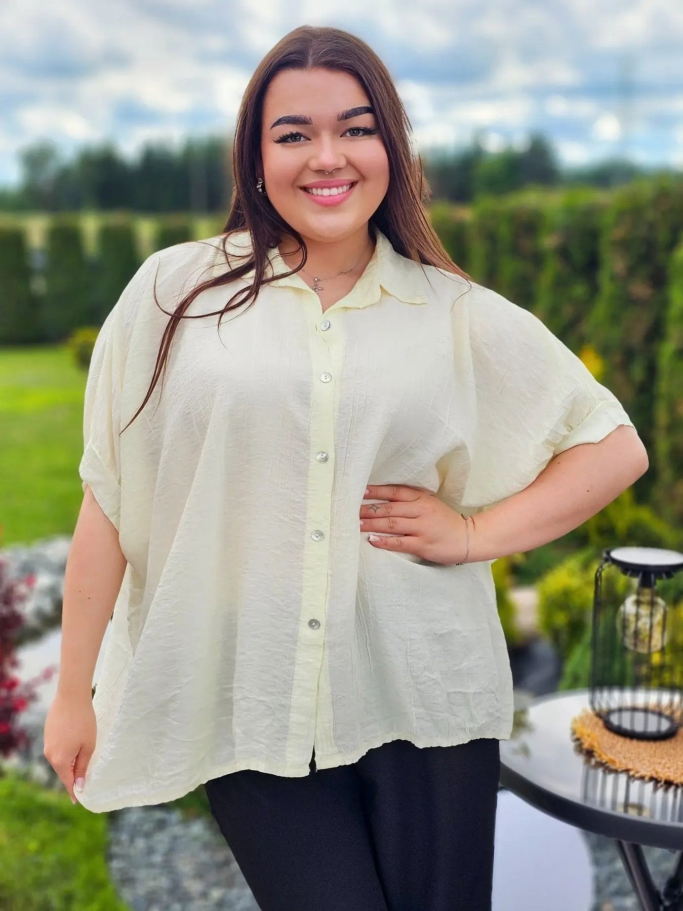 Wykonana z przewiewnego, delikatnie marszczonego materiału, świetnie dopasowuje się do sylwetki, zapewniając swobodę ruchów i wygodę przez cały dzień. Klasyczny kołnierzyk i guziki dodają jej ponadczasowego charakteru, a luźny fason sprawia, że pasuje do każdej stylizacji.