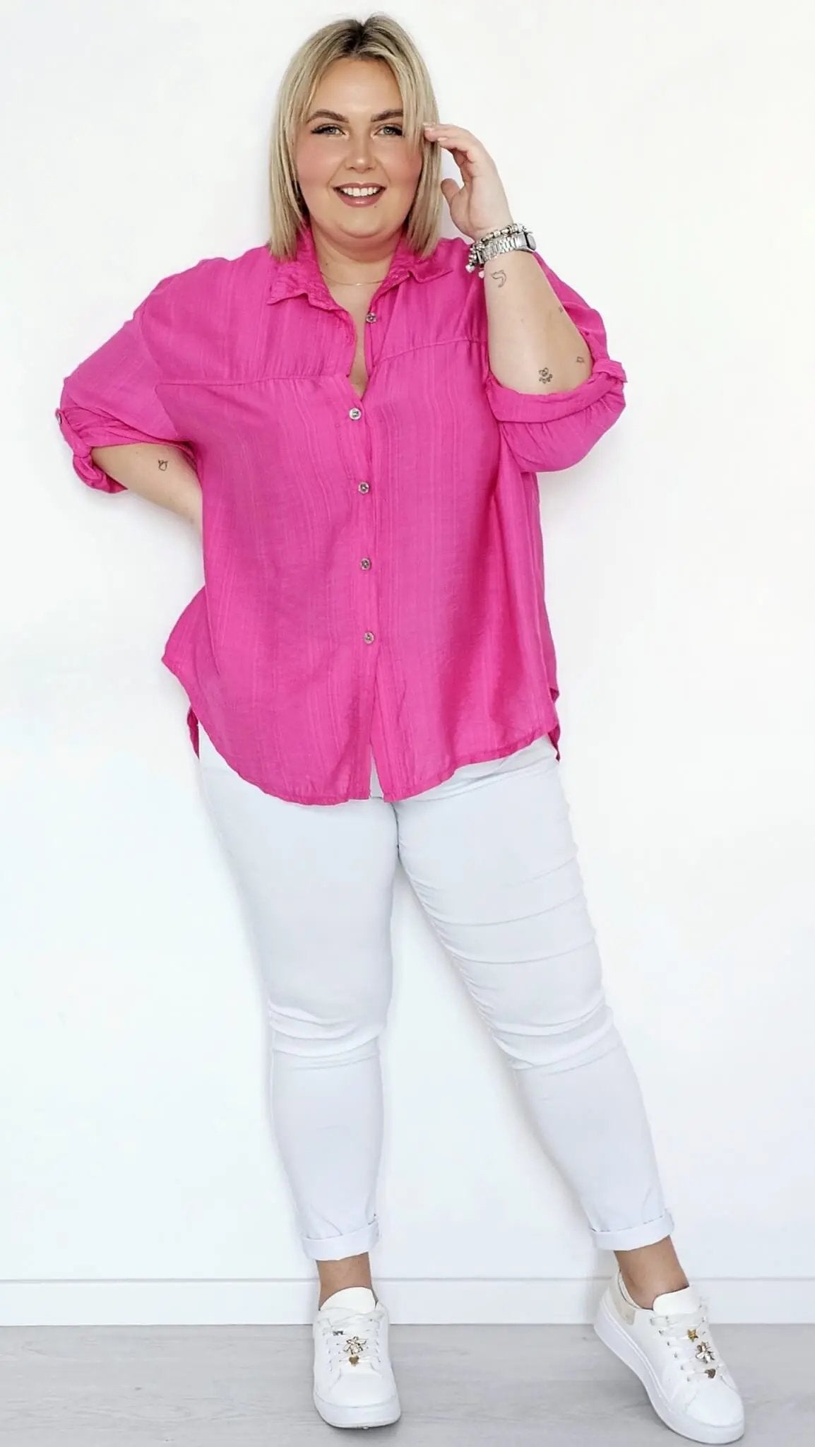 Stylowa, luźna koszula o kroju oversize, który zapewnia komfort i swobodę ruchów. Wykonana z lekkiego materiału z efektem gniecenia, dzięki czemu wygląda elegancko bez konieczności prasowania.