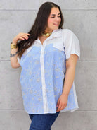 Model posiada klasyczny kołnierzyk, eleganckie guziki oraz praktyczne kieszonki, które nadają koszuli codziennego, a jednocześnie stylowego charakteru. Subtelne haftowane elementy podkreślają kobiecy styl i dodają całości niepowtarzalności. To koszula, którą z powodzeniem połączysz zarówno z jeansami, jak i eleganckimi spodniami, tworząc ponadczasowe stylizacje w duchu odzieży plus size.