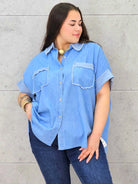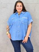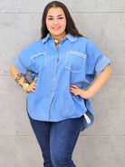 Koszula plus size – nowoczesny oversize z kieszeniami i vintage’owym wykończeniem