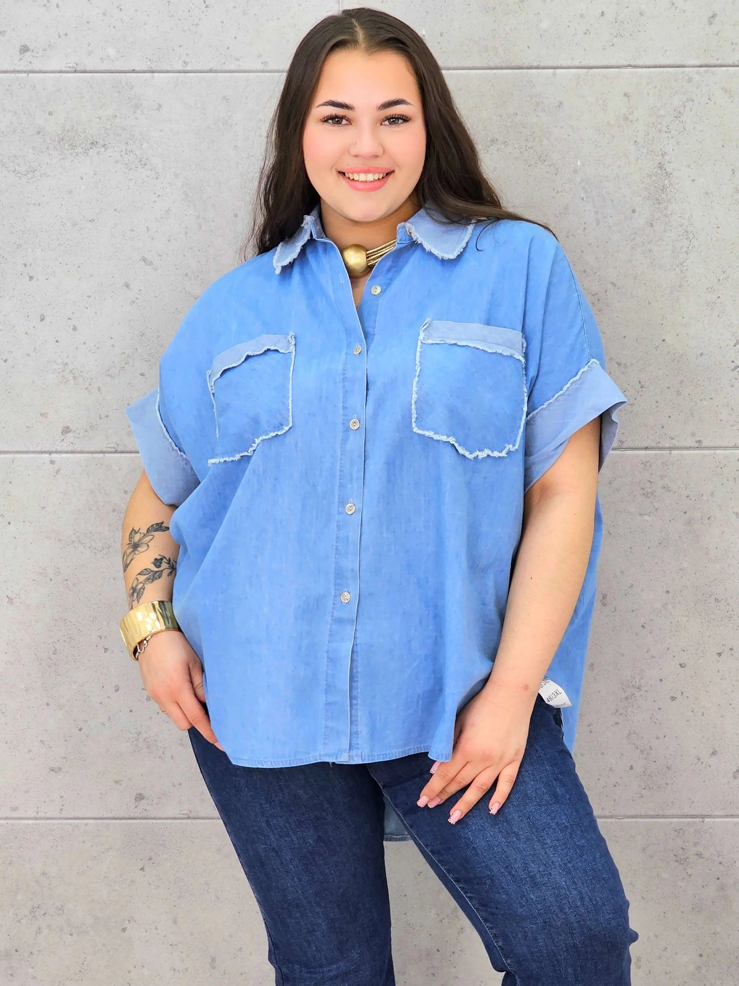 Koszula plus size – oversize z postrzępionym wykończeniem