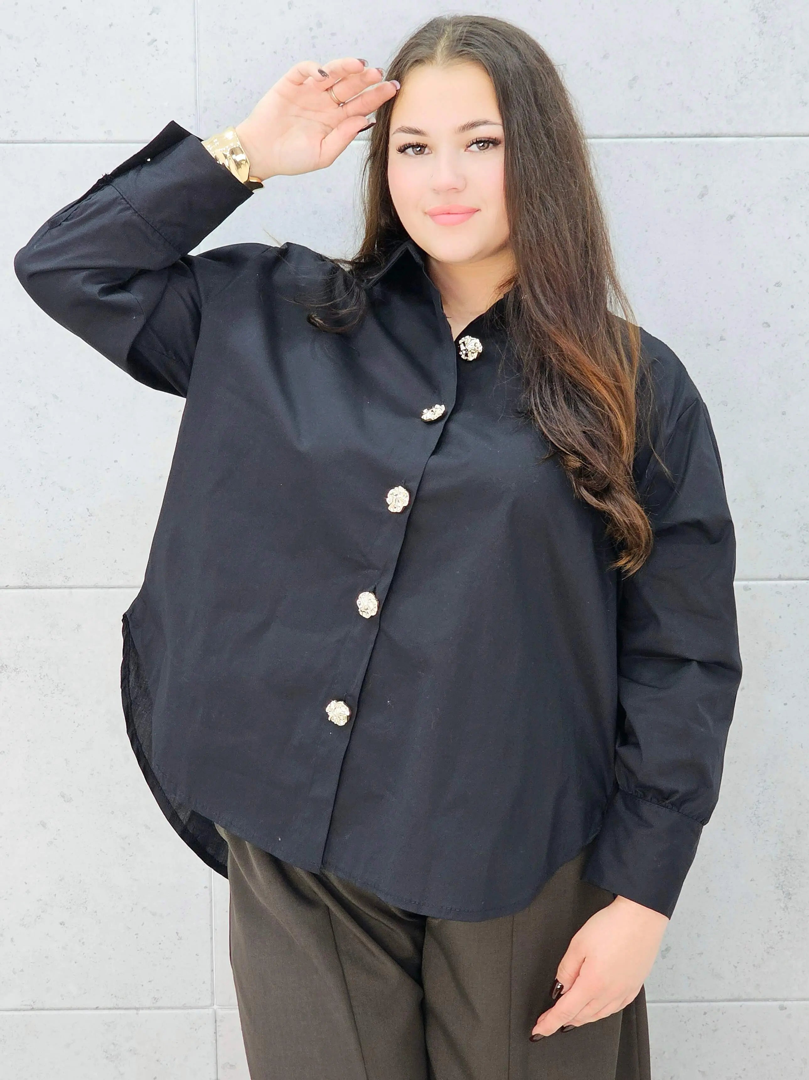 Klasyczna, a jednocześnie wyjątkowa – koszula plus size z ozdobnymi guzikami to model, który dodaje elegancji w każdej stylizacji