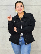 Kurtka jeansowa plus size czarna z cyrkoniami – elegancja i blask dla kobiet XXL