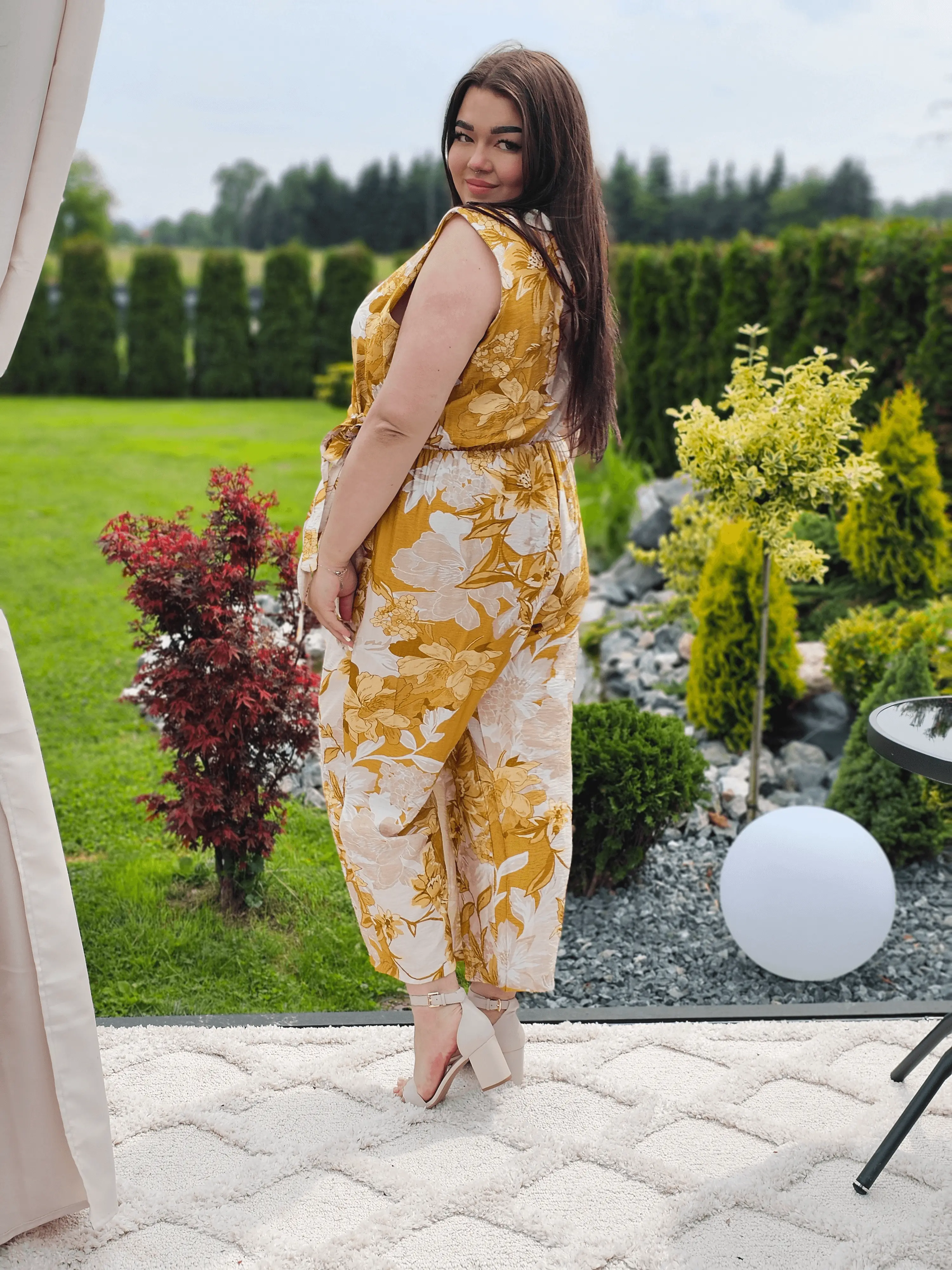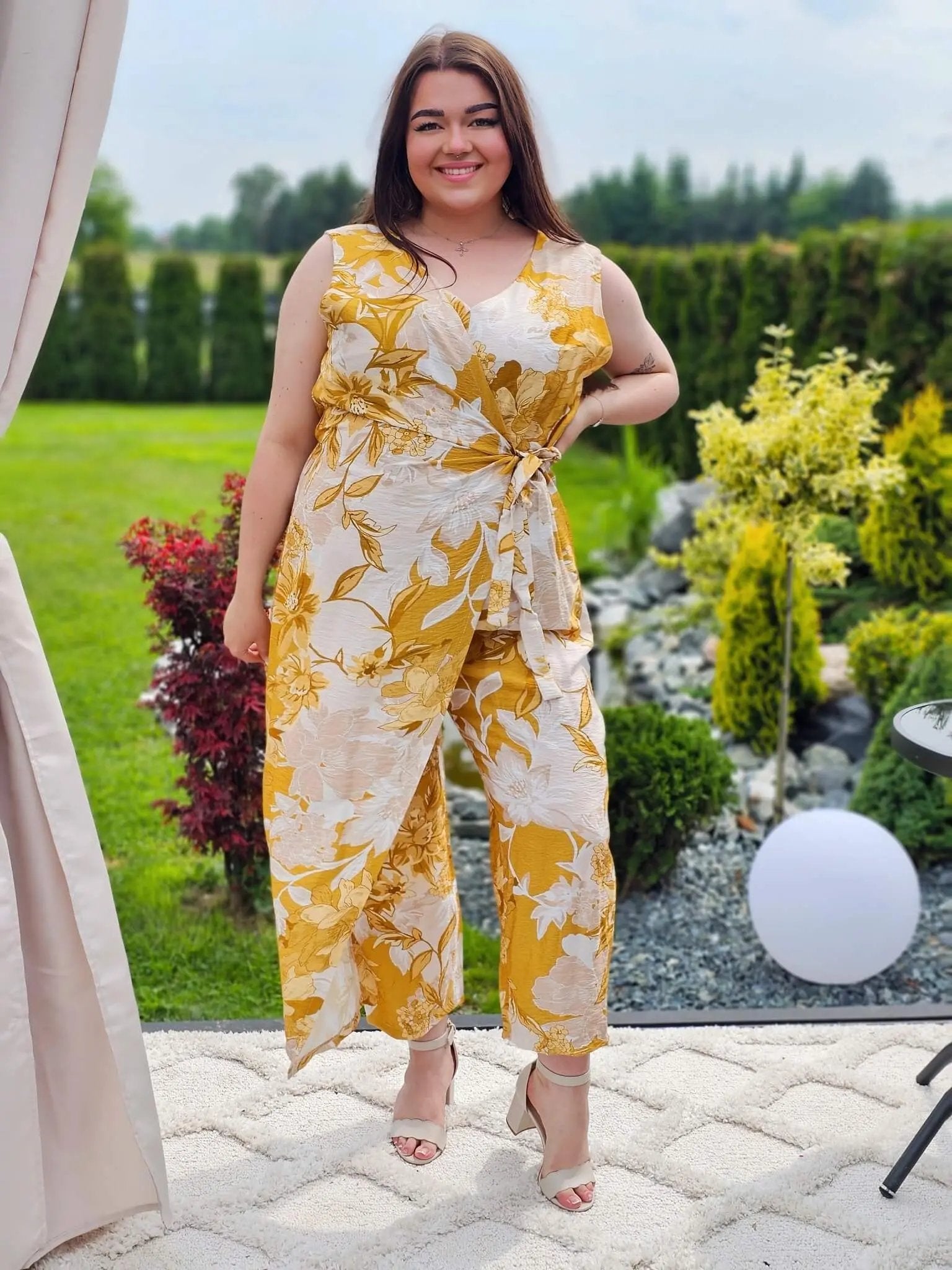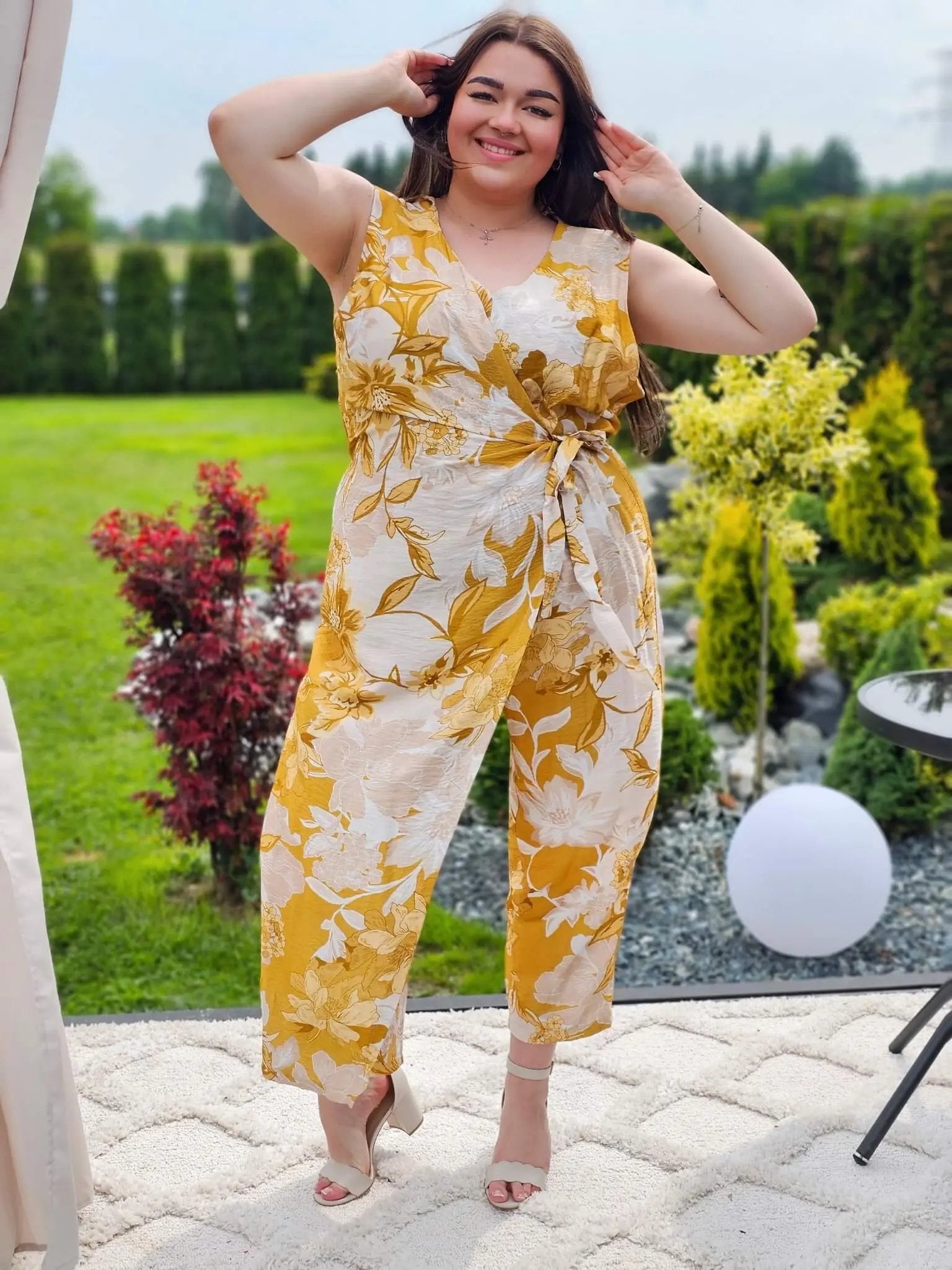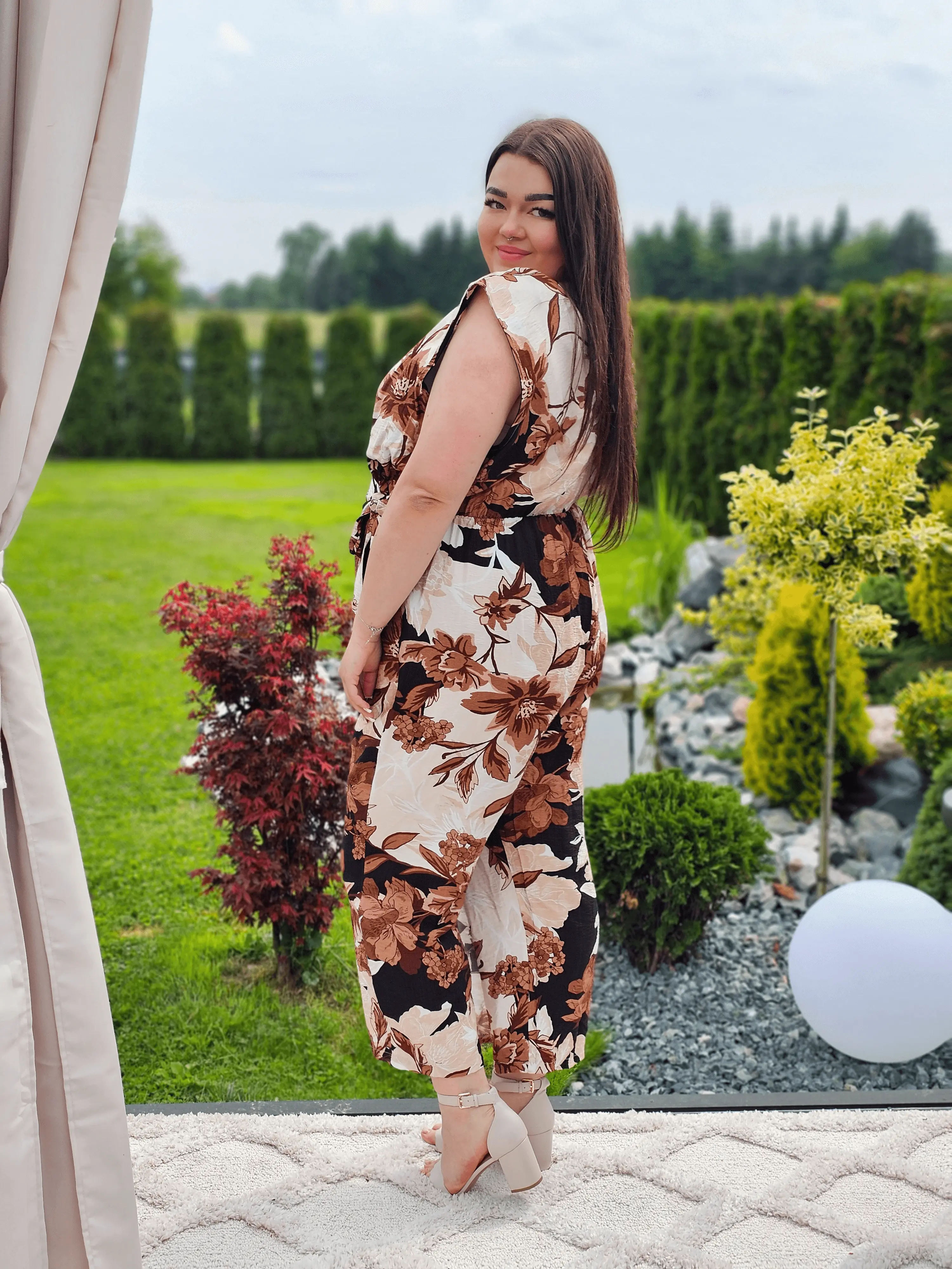 Ten kombinezon to doskonałe połączenie stylu i swobody – luźny fason, lekka wiskoza i wyrazisty kwiatowy print sprawią, że będziesz wyglądać świeżo i kobieco w każdej sytuacji. Kopertowy dekolt pięknie podkreśla biust, a wiązanie w talii modeluje sylwetkę – bez wysiłku!