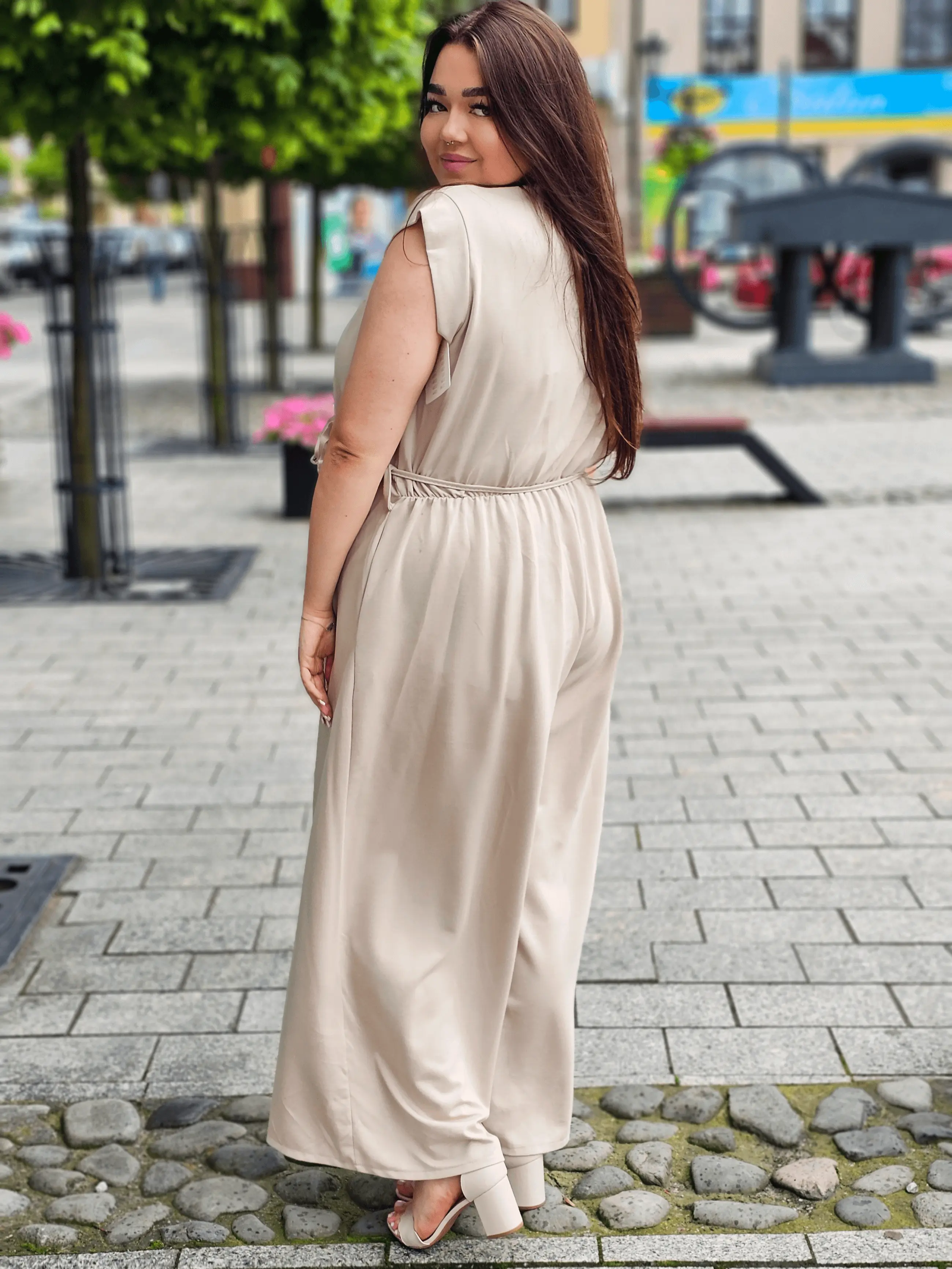 Kombinezon plus size StylowaXL to idealne połączenie kobiecej elegancji i pełnej swobody. Wykonany z delikatnego, przewiewnego materiału, pięknie układa się na sylwetce w rozmiarze XXL, gwarantując lekkość, komfort i styl w każdej sytuacji.
