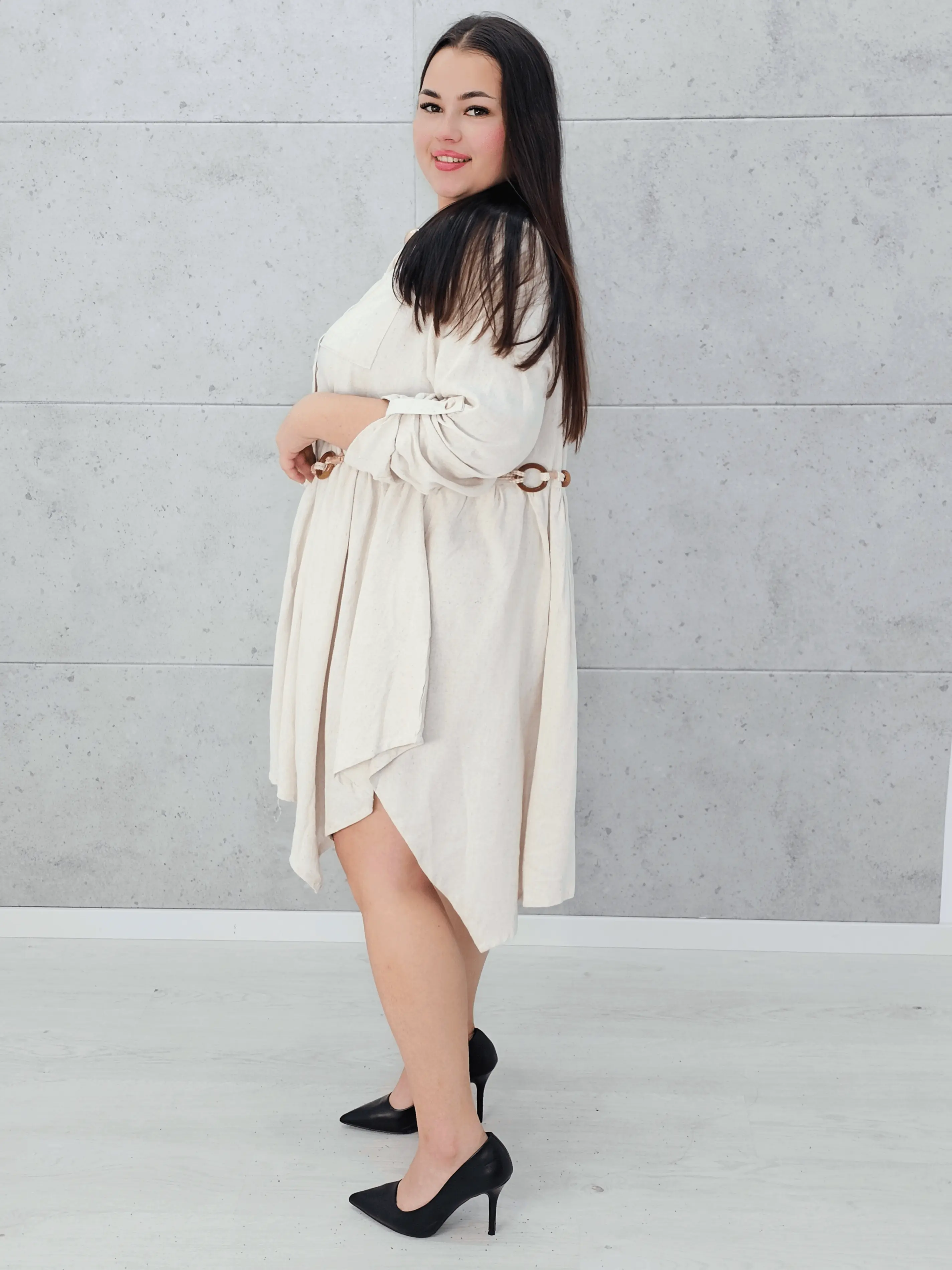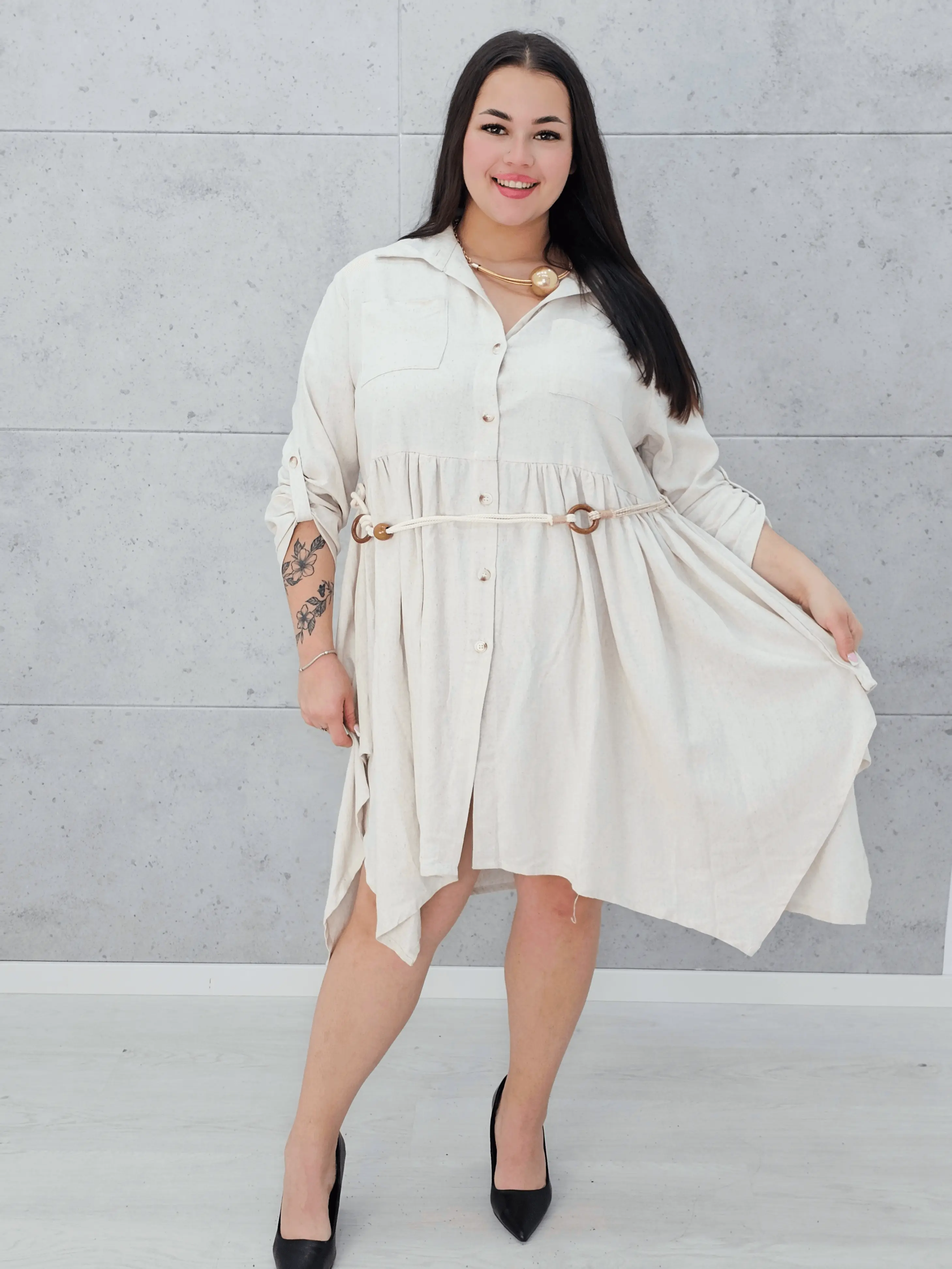 Stylowa i niezwykle komfortowa sukienka koszulowa z naturalnej tkaniny z dodatkiem lnu, która łączy w sobie lekkość, kobiecy styl i swobodę ruchów. Model zapinany na drobne guziki na całej długości, z klasycznym kołnierzykiem, nadaje całości ponadczasowego charakteru.