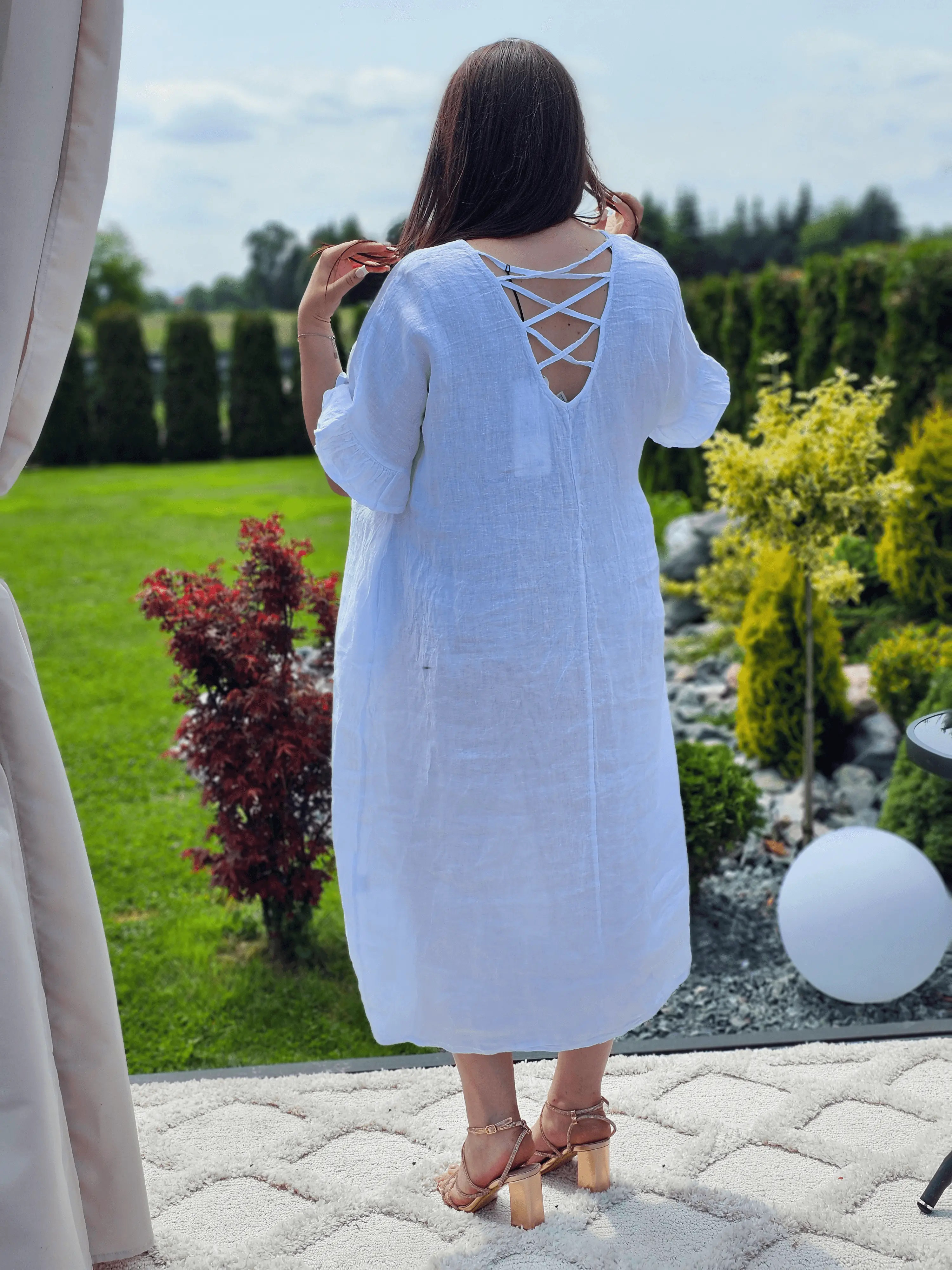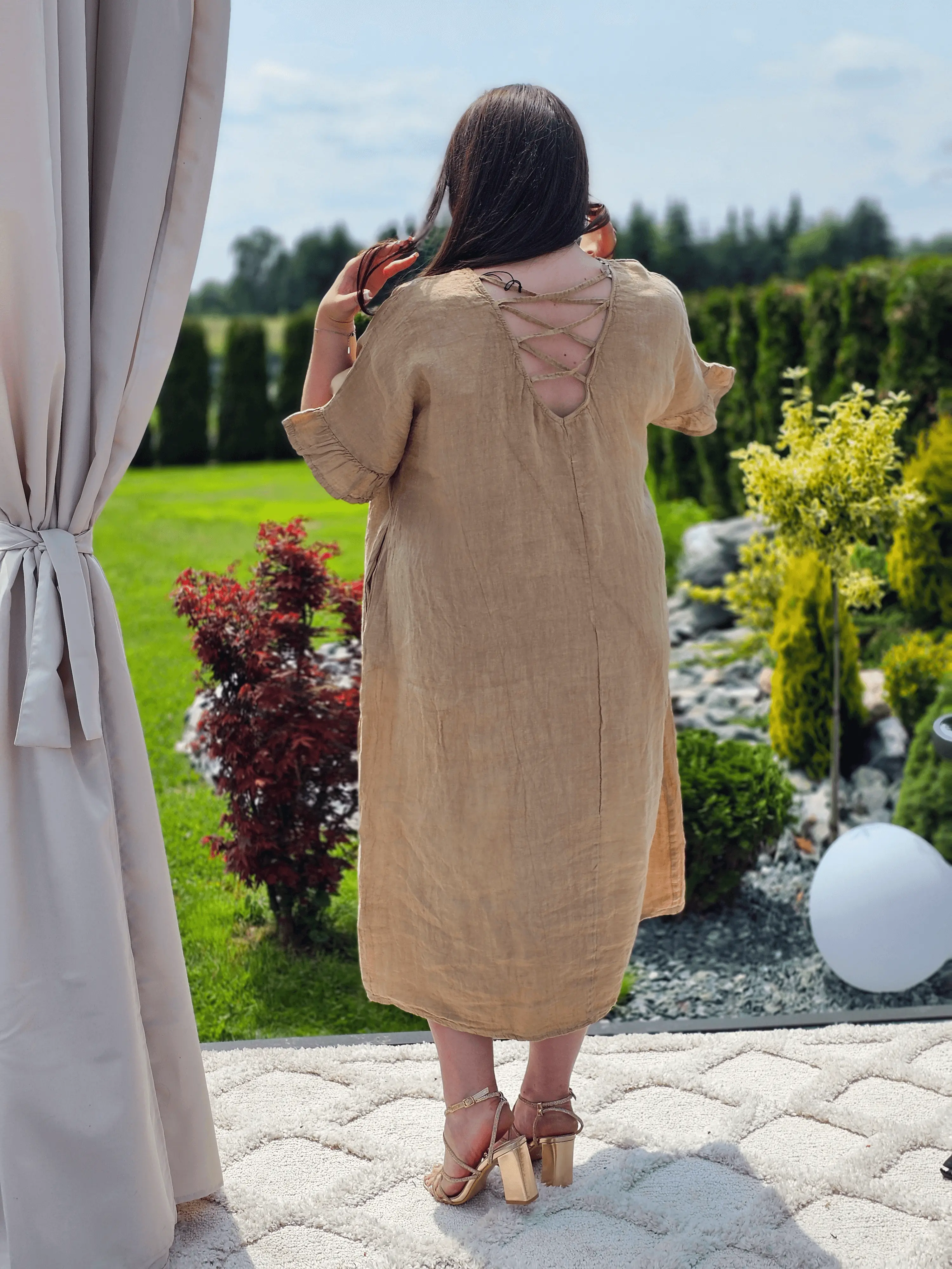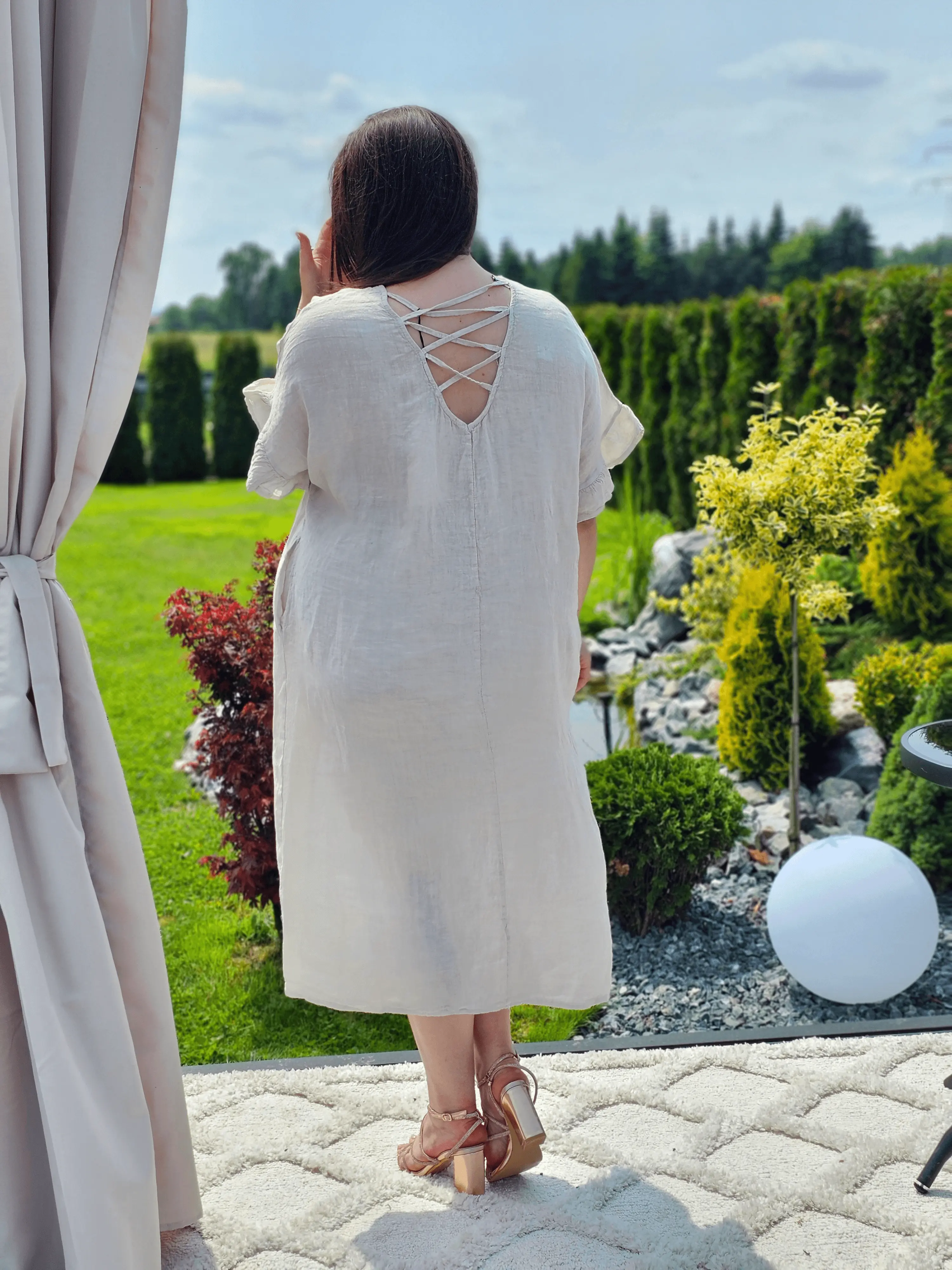 Lniana sukienka midi z wiązaniem