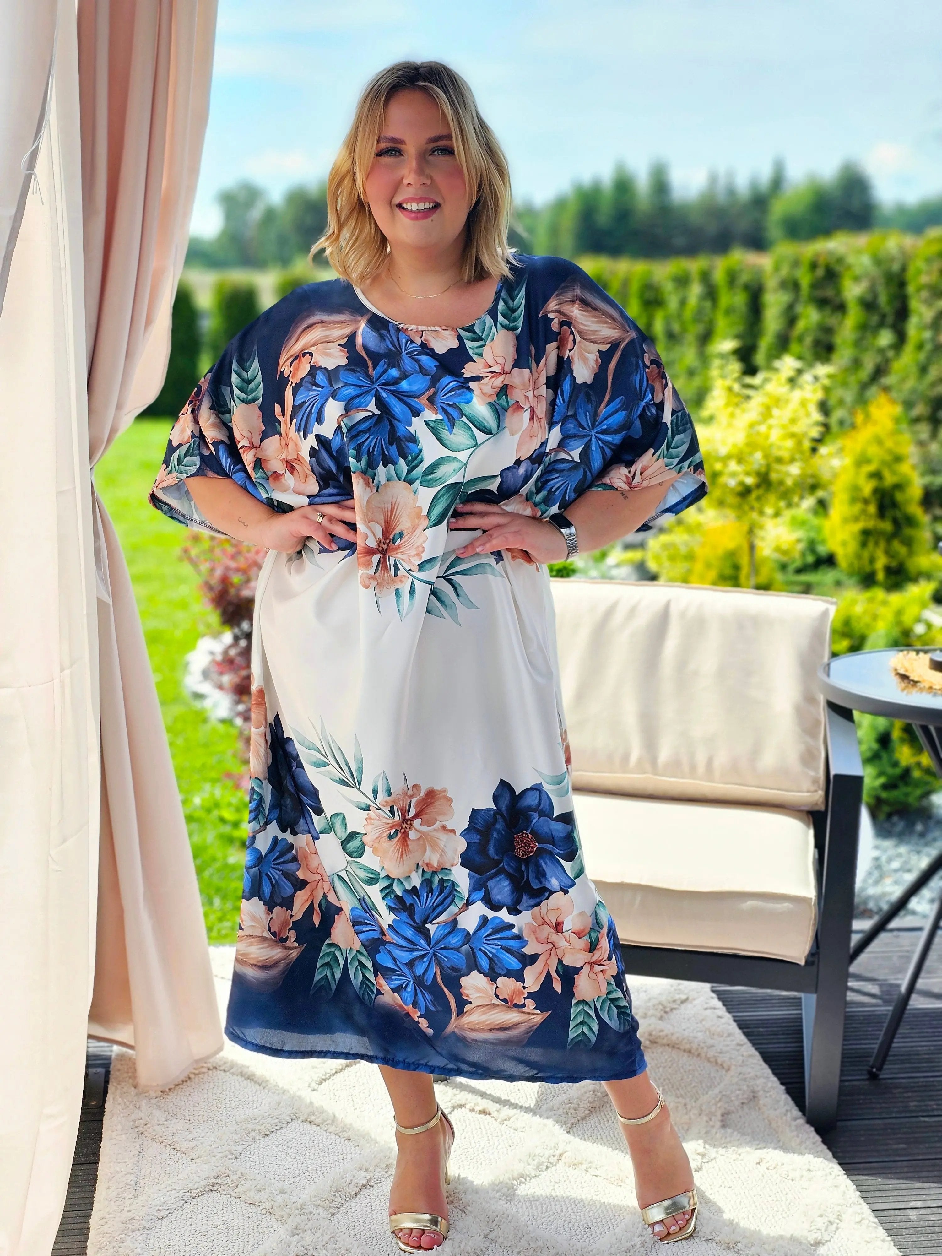 Sukienka, która łączy swobodny krój z efektownym wyglądem. Miękka, lejąca tkanina pięknie układa się na sylwetce, a szeroki fason z delikatnie opuszczonym rękawem tworzy modną, ale wygodną całość. Bogaty kwiatowy print dodaje stylizacji charakteru – bez względu na okazję 🌺✨