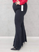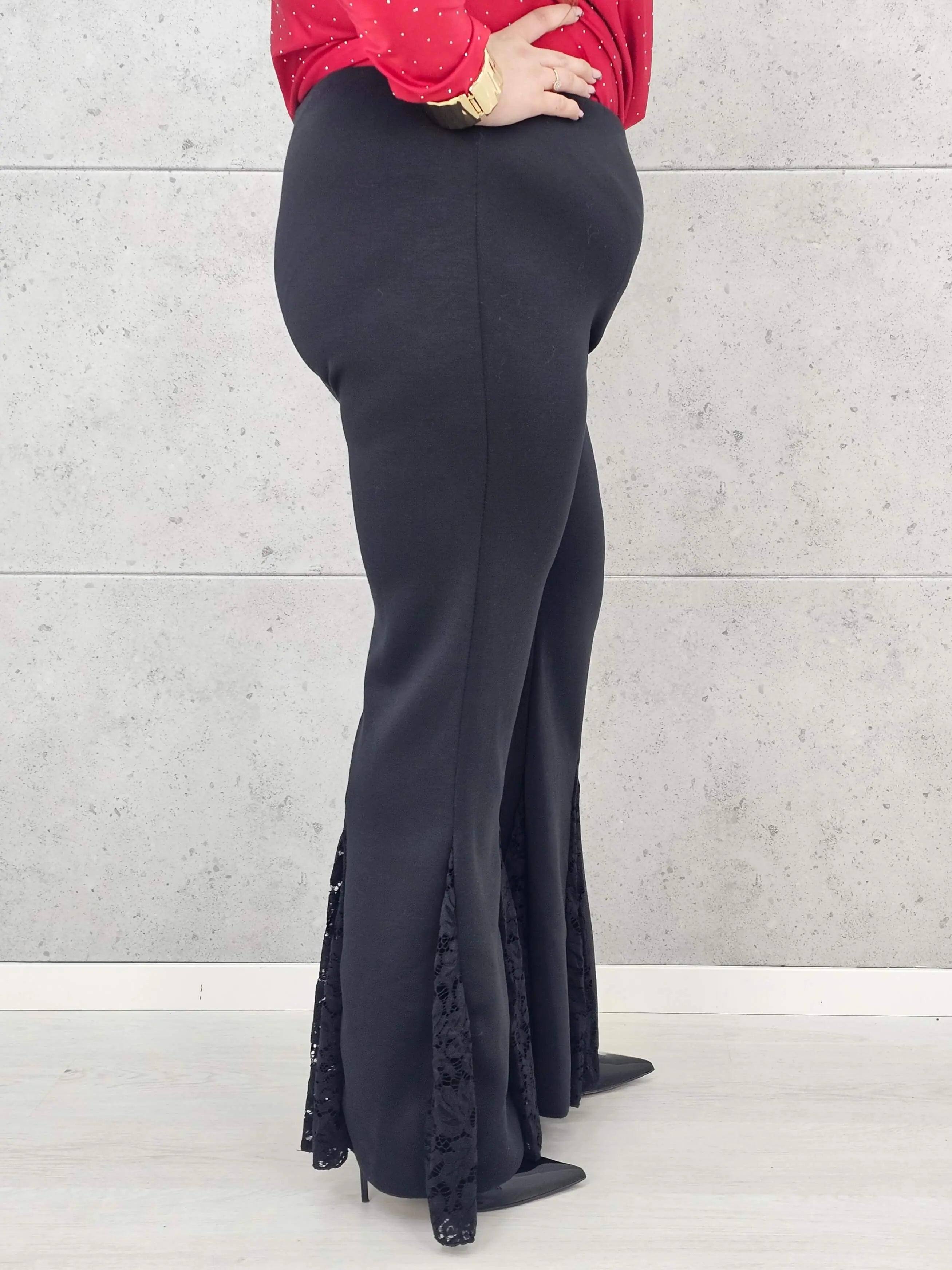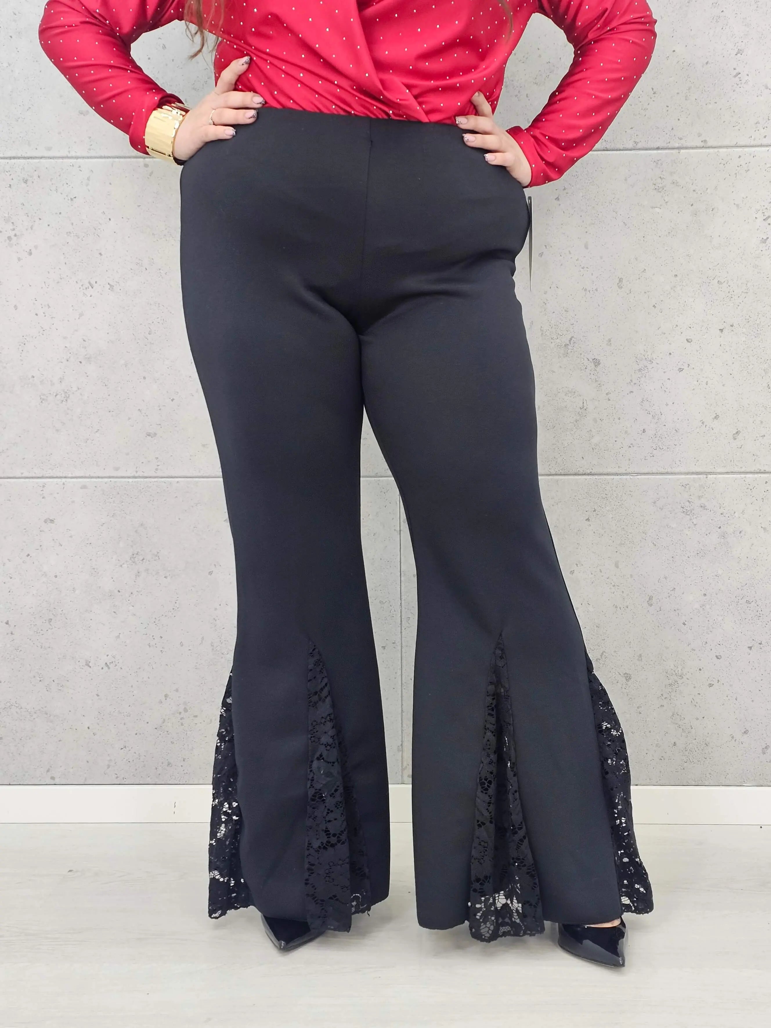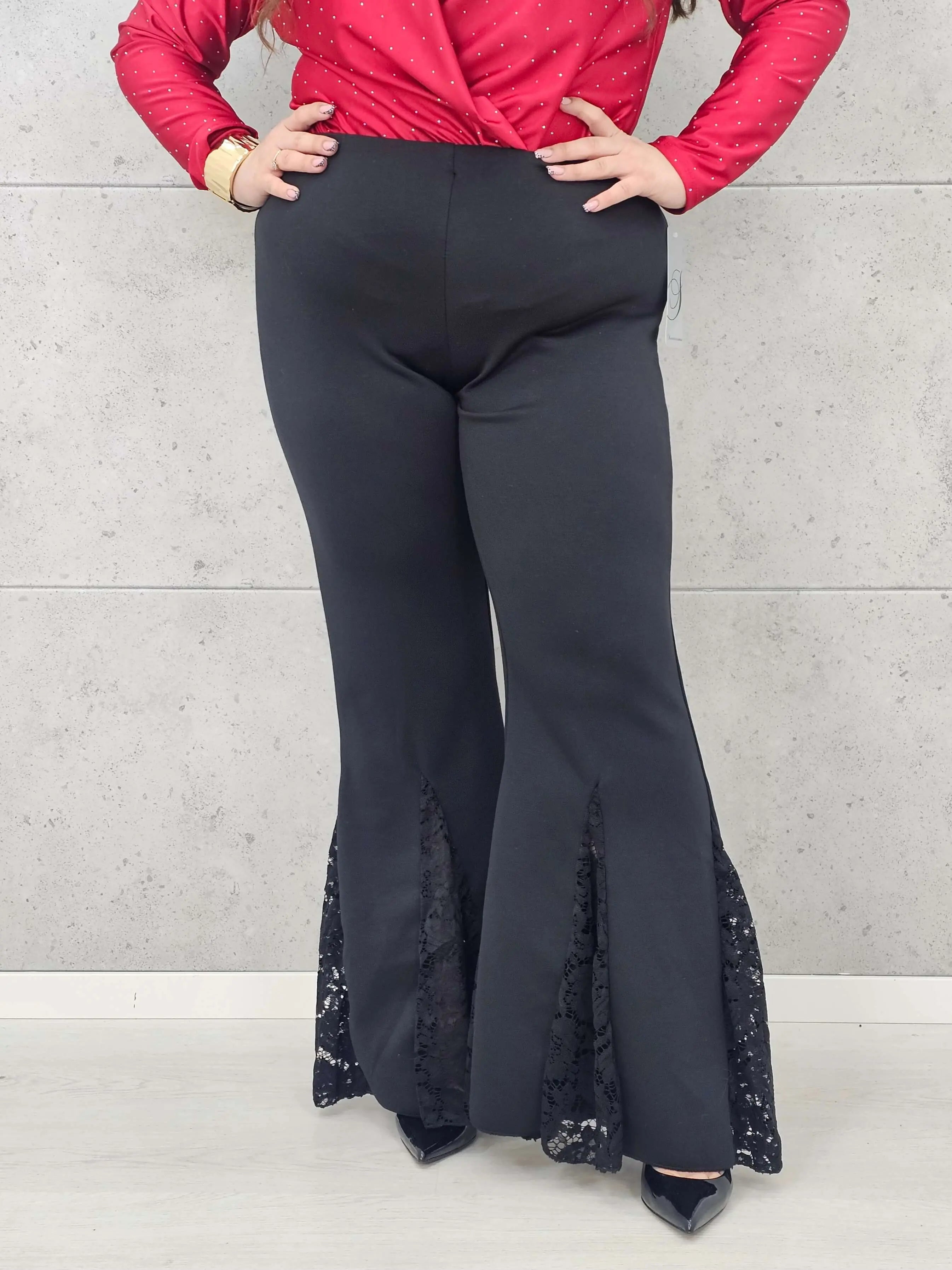 Spodnie plus size z rozkloszowaną nogawką i koronką – idealne na wyjątkowe okazje