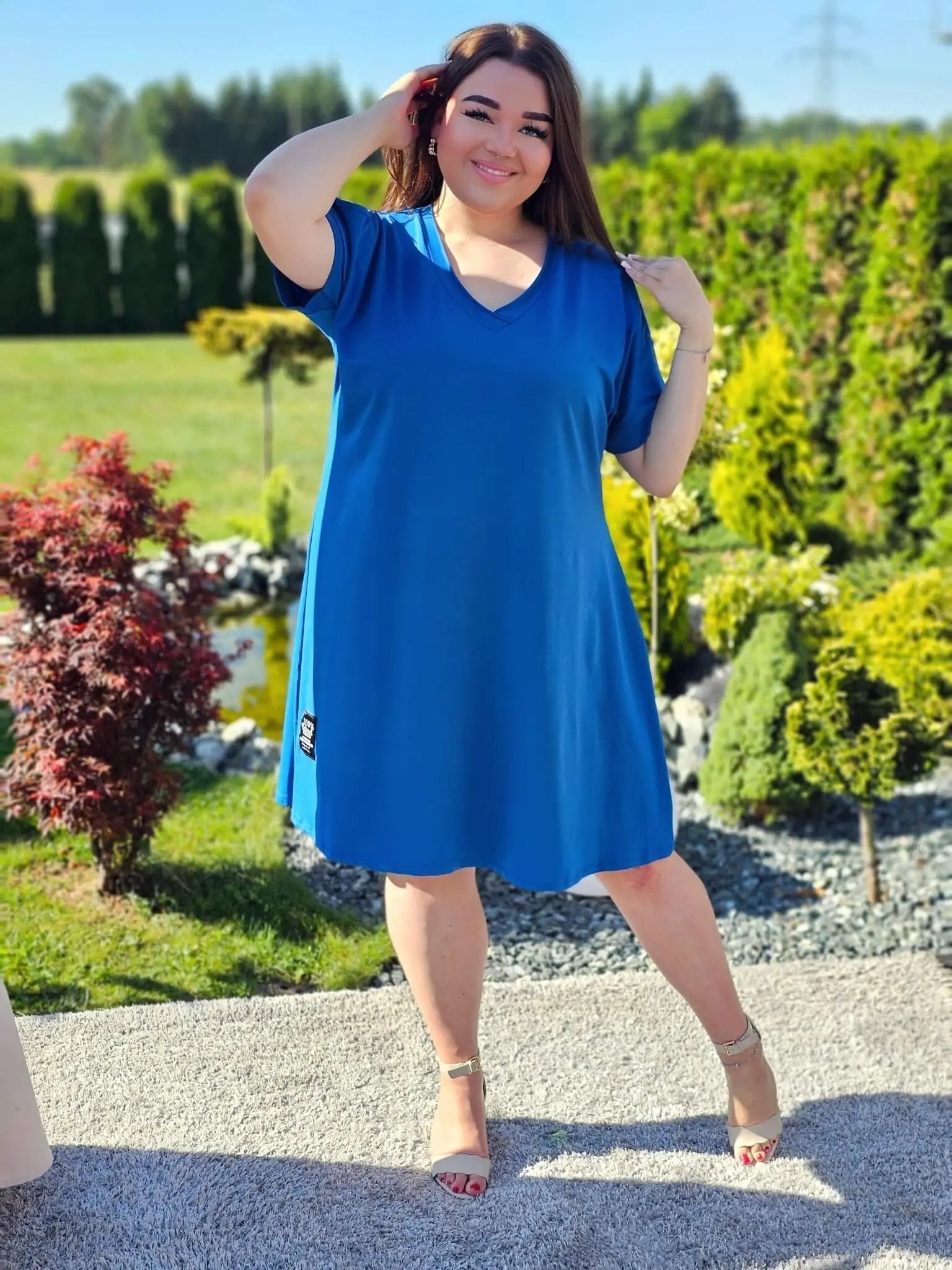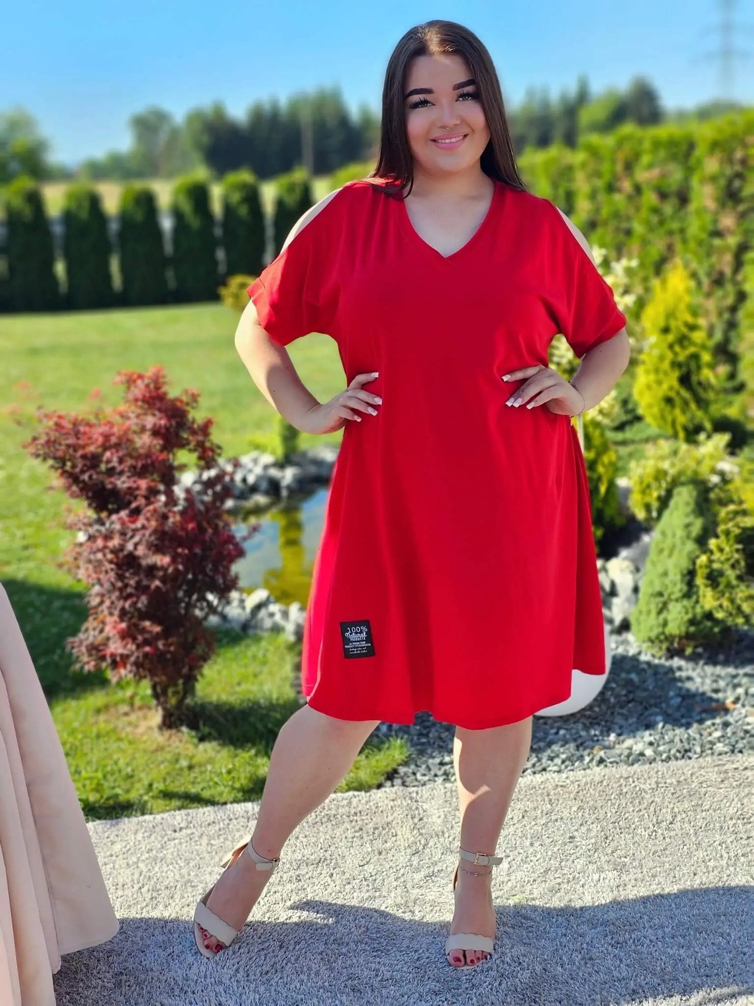 Sukienka A740 to idealna propozycja na letnie dni – klasyczny krój oversize z efektownym wycięciem na ramionach dodaje charakteru i kobiecego wdzięku. Wygodna, lekka, bawełniana – dostępna aż w pięciu soczystych kolorach: czerwonym, beżowym, czarnym, chabrowym i neonowym limonkowym