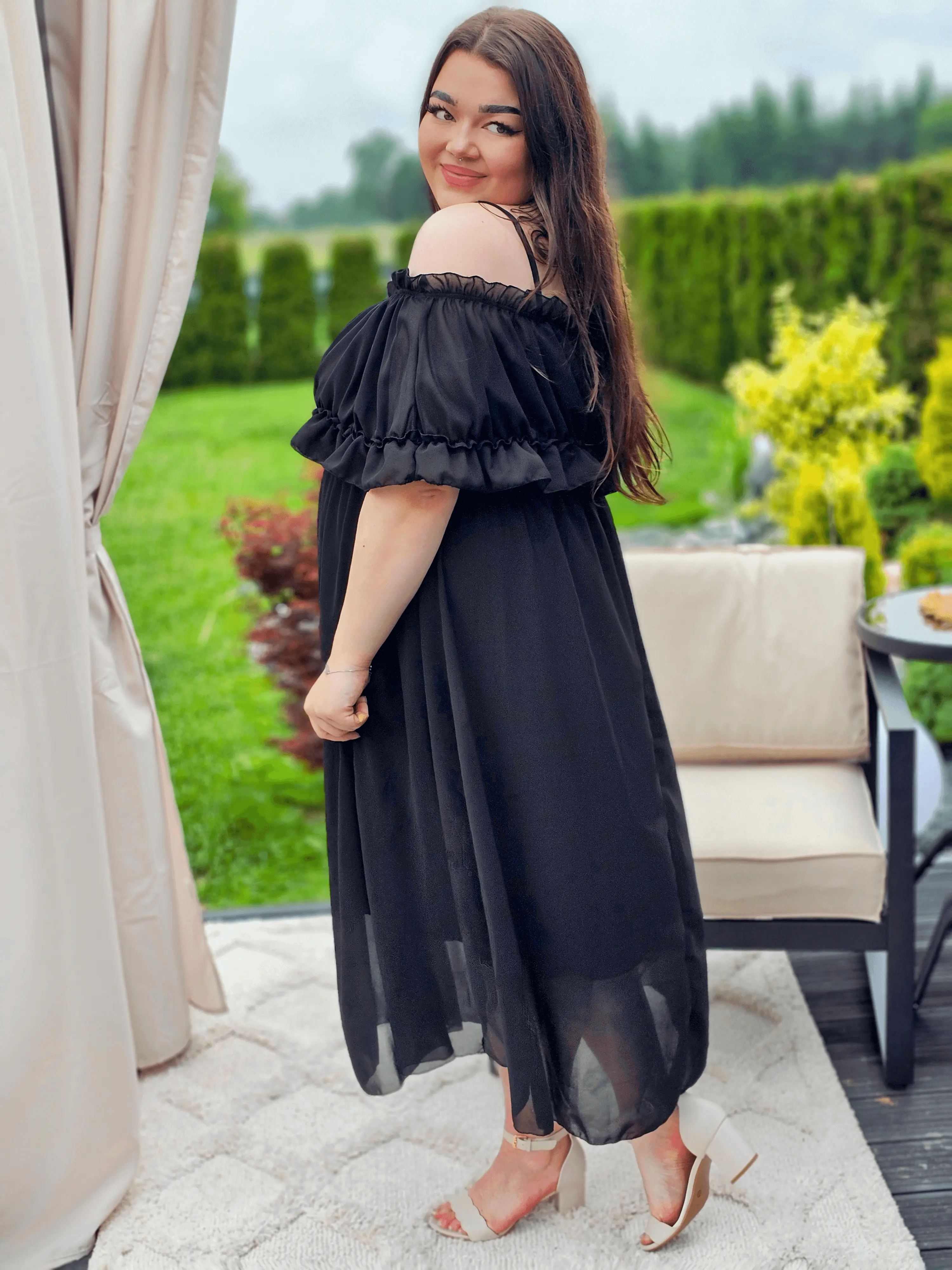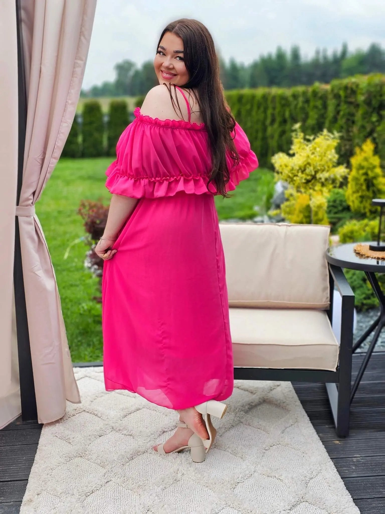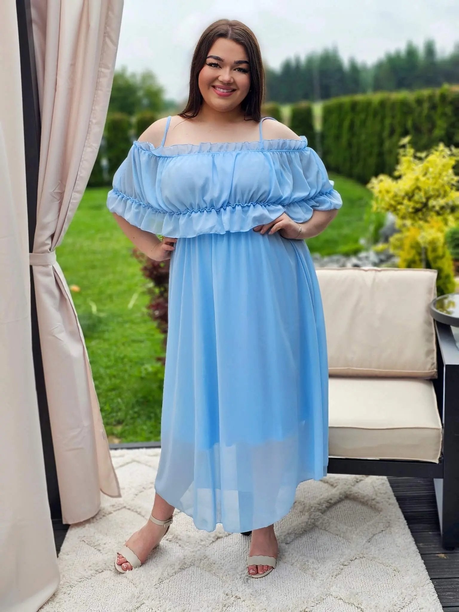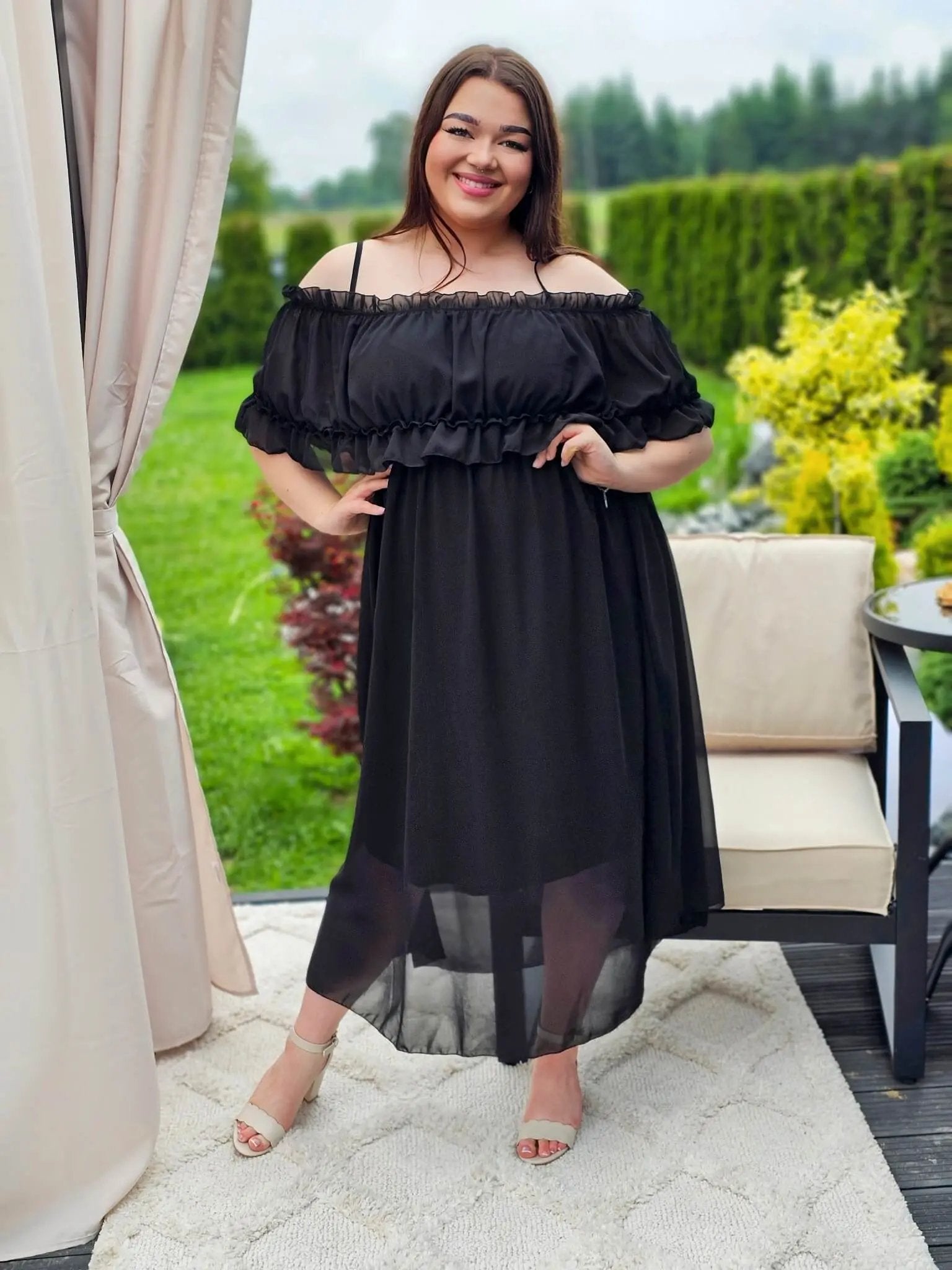 Zjawiskowa sukienka hiszpanka o wyjątkowo kobiecym kroju, który podkreśla sylwetkę i dodaje lekkości każdemu ruchowi. Model z cienkimi ramiączkami oraz efektownym, odsłoniętym dekoltem w stylu carmen – idealnym do podkreślenia ramion i szyi.