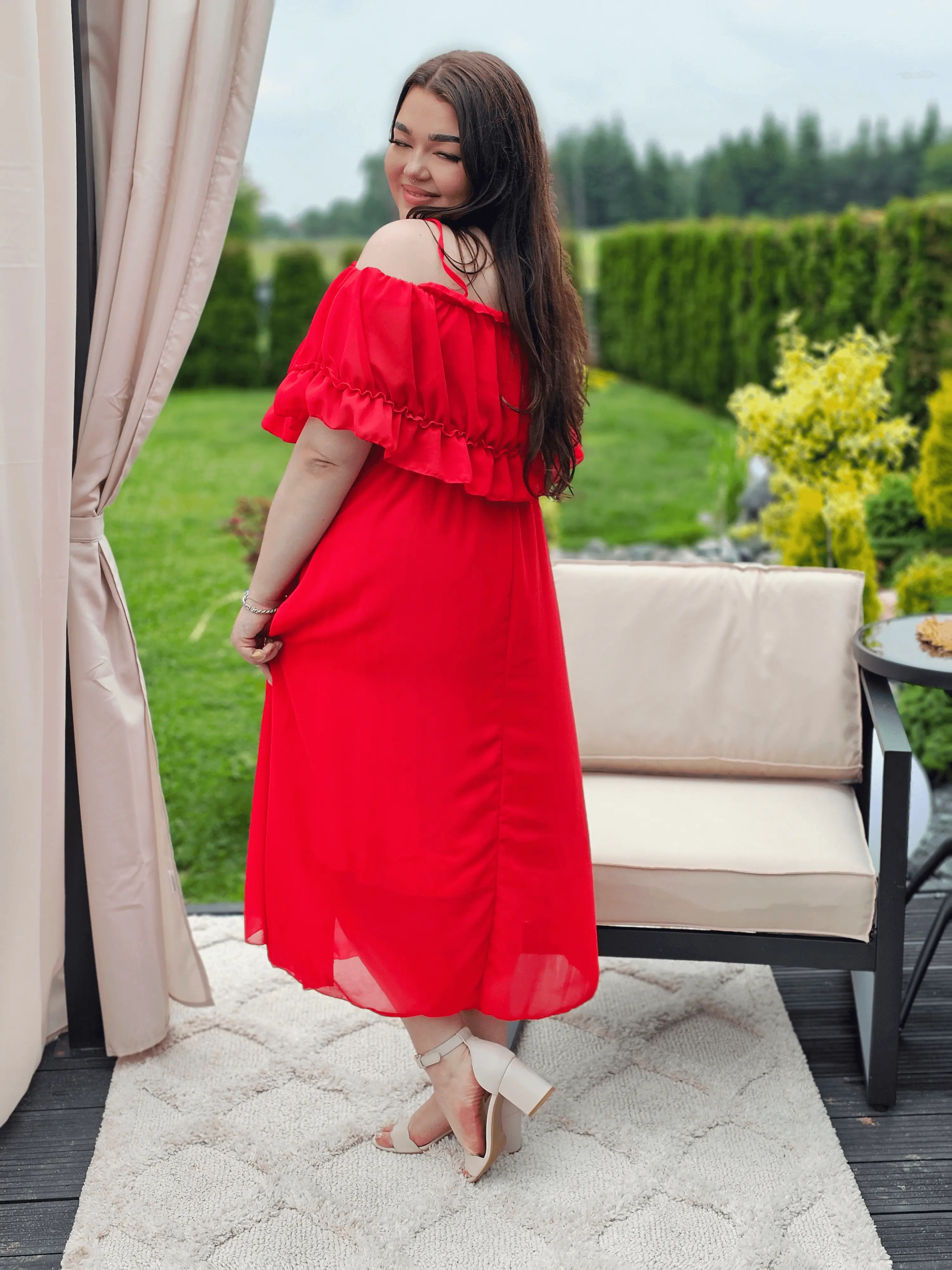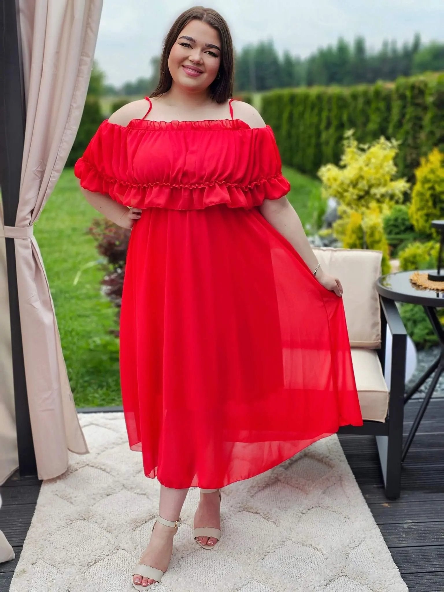 Sukienka hiszpanka midi z falbanami - kilka kolorów