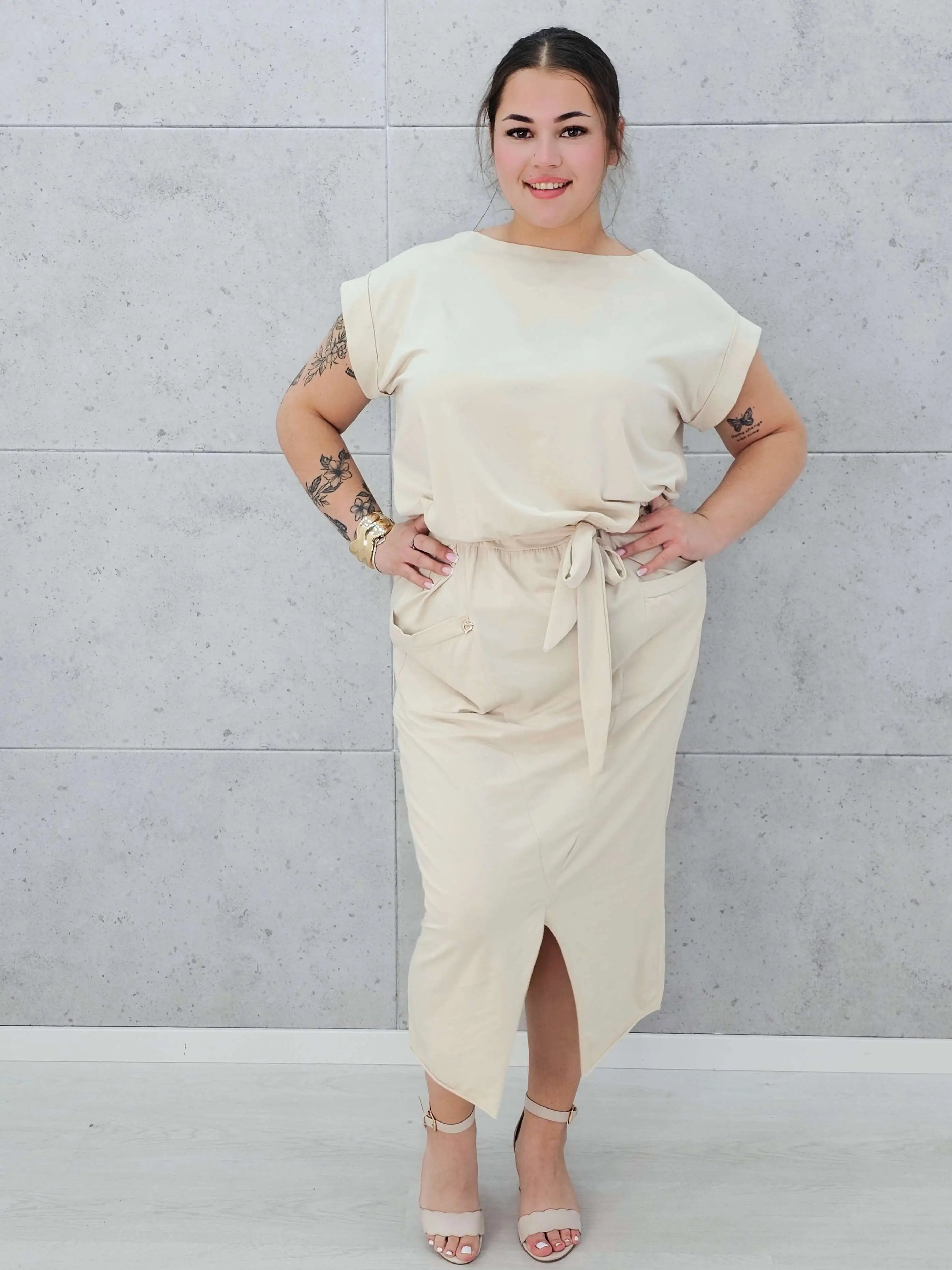 Ta sukienka plus size to doskonały wybór dla kobiet, które lubią stylizacje z nutą miejskiego luzu i ponadczasowej prostoty. Świetnie prezentuje się z trampkami, sandałami lub espadrylami – wystarczy dodać ulubione dodatki, by stworzyć look na każdą okazję
