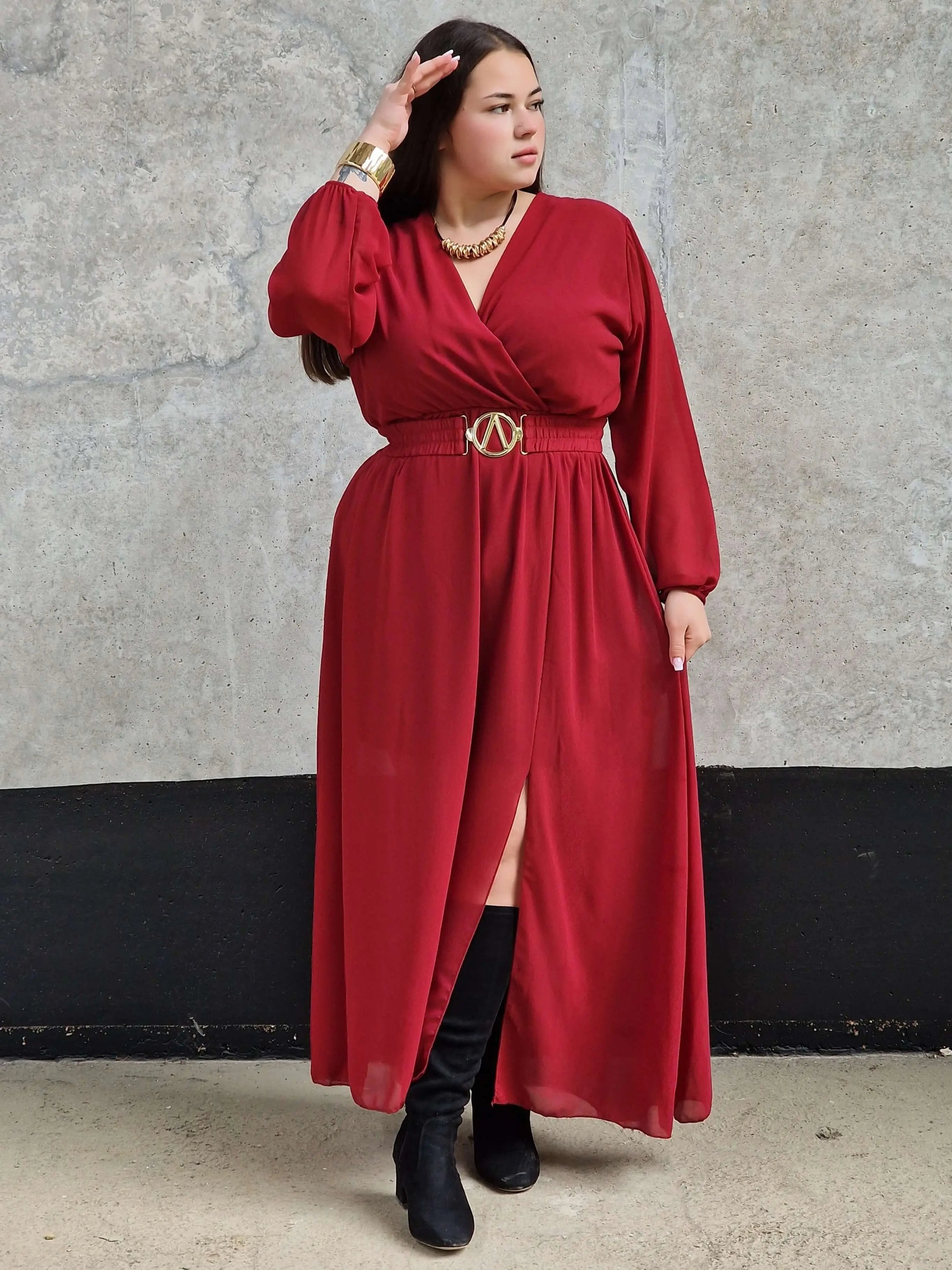 Sukienka to kwintesencja elegancji, idealna na specjalne okazje, które wymagają wyjątkowej oprawy. Jej zwiewny, delikatny materiał doskonale układa się na sylwetce, dodając jej lekkości i subtelności. Kopertowy dekolt podkreśla kobiece kształty, a stylowy pasek w talii zapewnia doskonałe proporcje, modelując figurę.