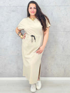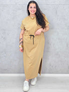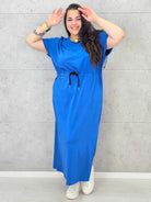Sukienka plus size w fasonie maxi to idealny wybór dla kobiet, które cenią wygodę, lekkość i naturalnie podkreśloną sylwetkę. Model posiada nowoczesny, prosty krój wzbogacony o troczek w pasie, który pozwala dowolnie regulować wcięcie – od luźnego oversize po delikatnie zaznaczoną talię. Dzięki temu sukienka świetnie prezentuje się na każdej sylwetce XXL i sprawdza się zarówno na co dzień, jak i w bardziej casualowych stylizacjach.