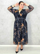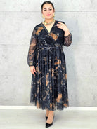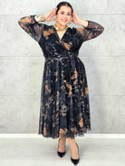 Sukienka plus size szyfonowa midi z kopertowym dekoltem – Stylowa XL