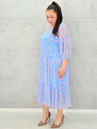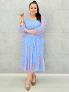 Sukienka plus size została zaprojektowana z myślą o komforcie i lekkości. Pastelowy niebiesko-różowy print w groszki oraz luźny, falujący fason pięknie podkreślają sylwetkę XXL, nie opinając jej i nadając całej stylizacji delikatnego, dziewczęcego charakteru. Dół z falbaną nadaje kreacji lekkości i swobody, idealnej na co dzień, na wyjścia oraz wiosenno-letnie okazje.