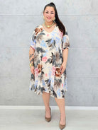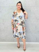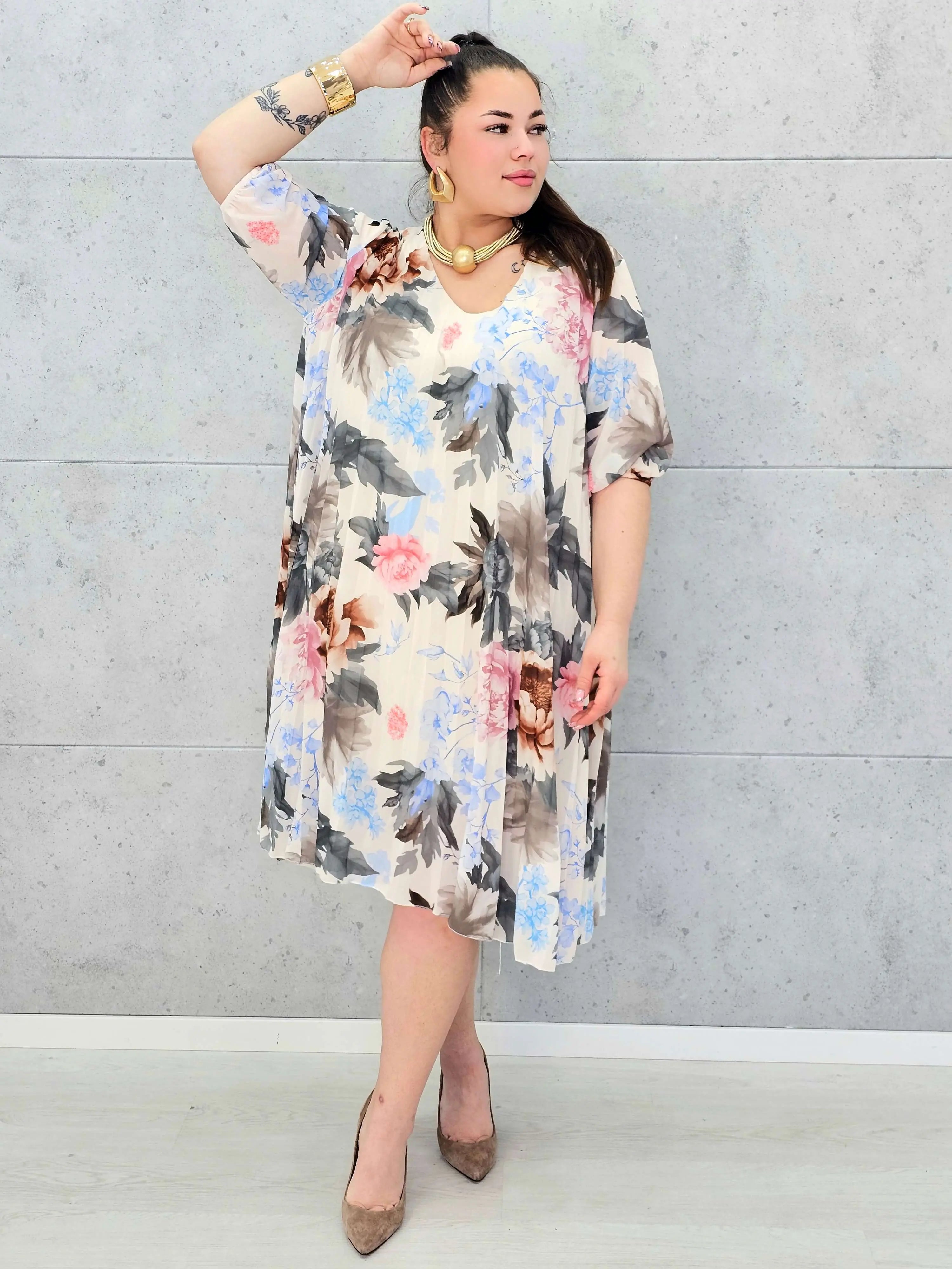 Sukienka plus size w kwiaty z lekkiej tkaniny – elegancka i zwiewna XXL
